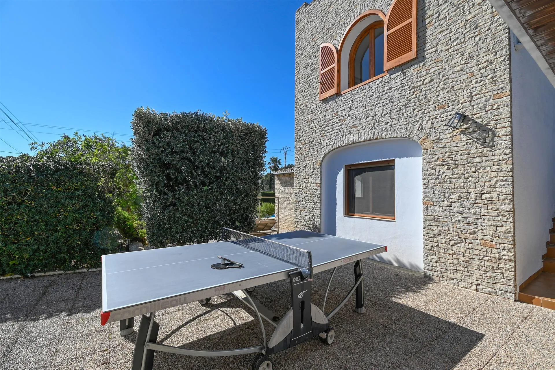Територія вілли оточена огородженою ділянкою з доглянутим садом, газоном і деревами. Тут розташований великий приватний басейн, тераси для відпочинку, зона барбекю та обідня зона на відкритому повітрі. Окремою родзинкою є тераса на даху, з якої можна насолоджуватися теплими вечорами та краєвидами узбережжя.