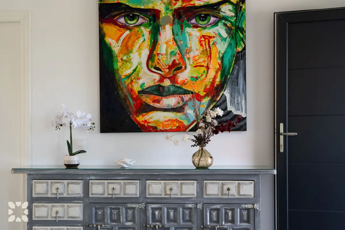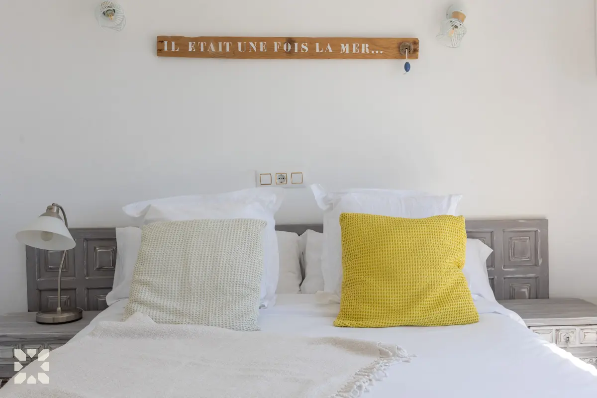 Вілла розташована на приватній ділянці площею 817 м² і має 174 м² житлового простору, розташованого на одному рівні. Інтер’єр був оновлений, зберігаючи характерний середземноморський стиль із сучасними деталями та світлими просторами. Великі вікна наповнюють вітальню природним світлом і відкривають красиві краєвиди на море.