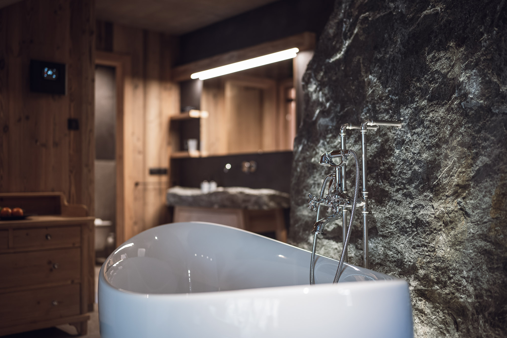 • Оздоровча зона: фінська сауна з ароматної швейцарської сосни, окремостояча ванна, кам’яний душ, тераса з джерельною водою.