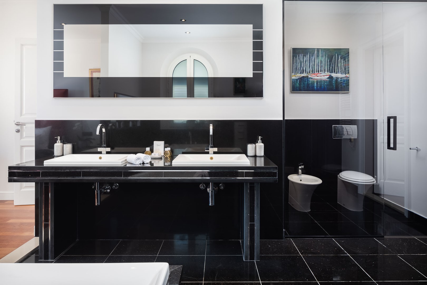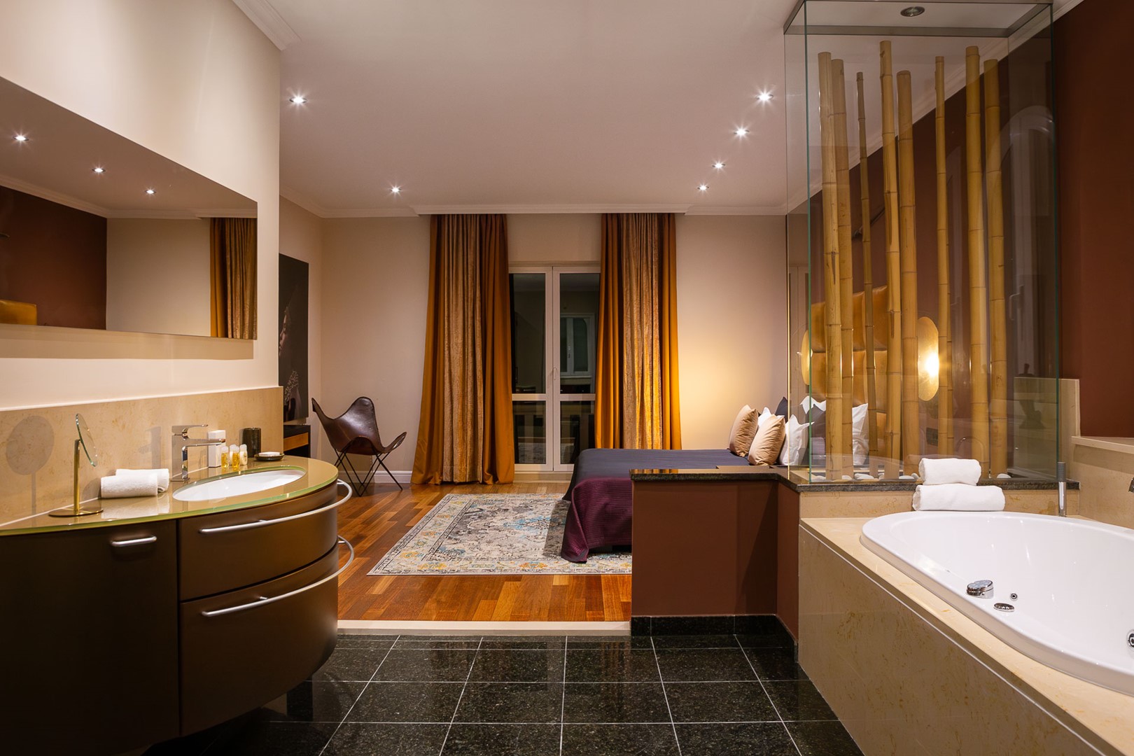 Окремий апартамент площею 40 м² містить спальню з двома ліжками, ванну кімнату та гардеробну, що забезпечує максимальну автономність.