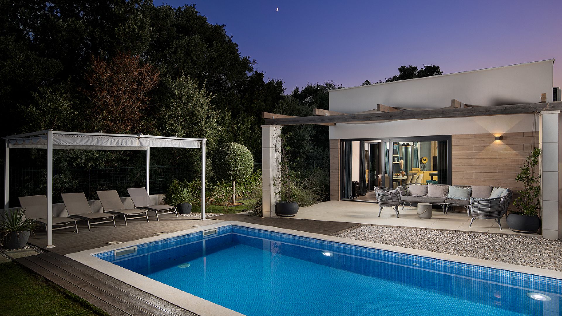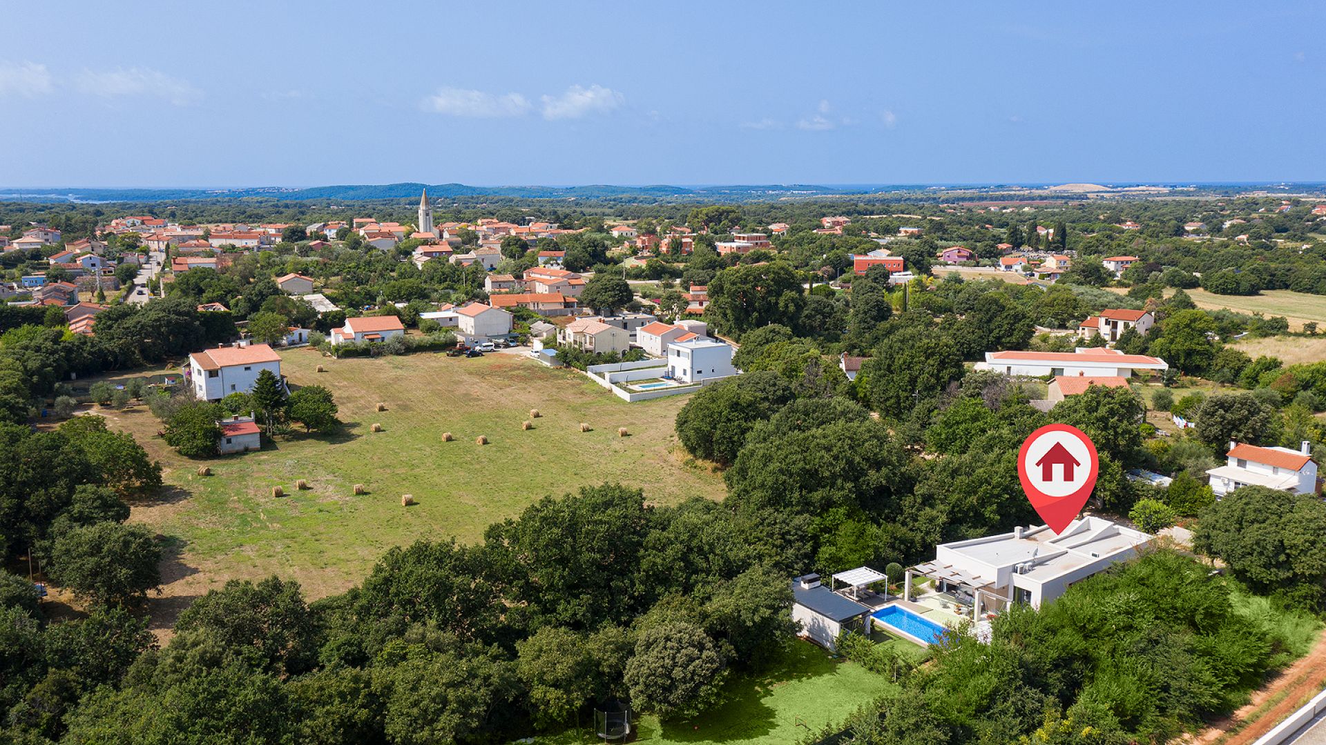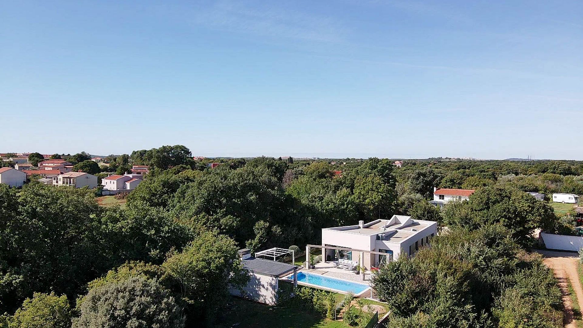 Вілла розташована в затишному селищі Šišan, всього за кілька хвилин їзди від курортного Medulin та недалеко від Pula. Локація поєднує спокій приватного середовища з легким доступом до інфраструктури та узбережжя.