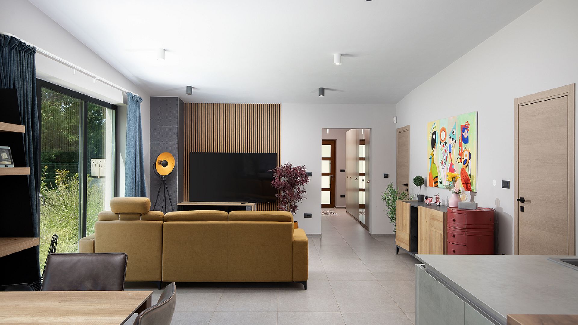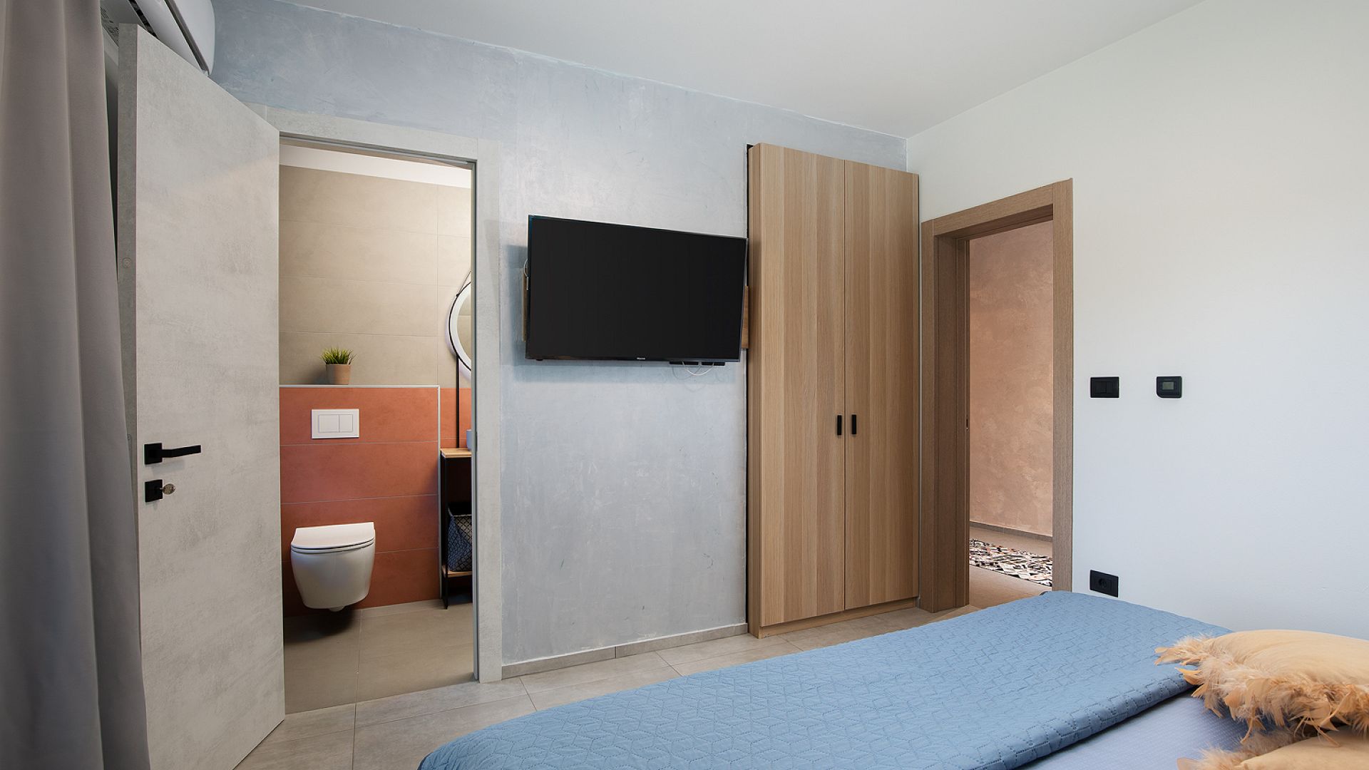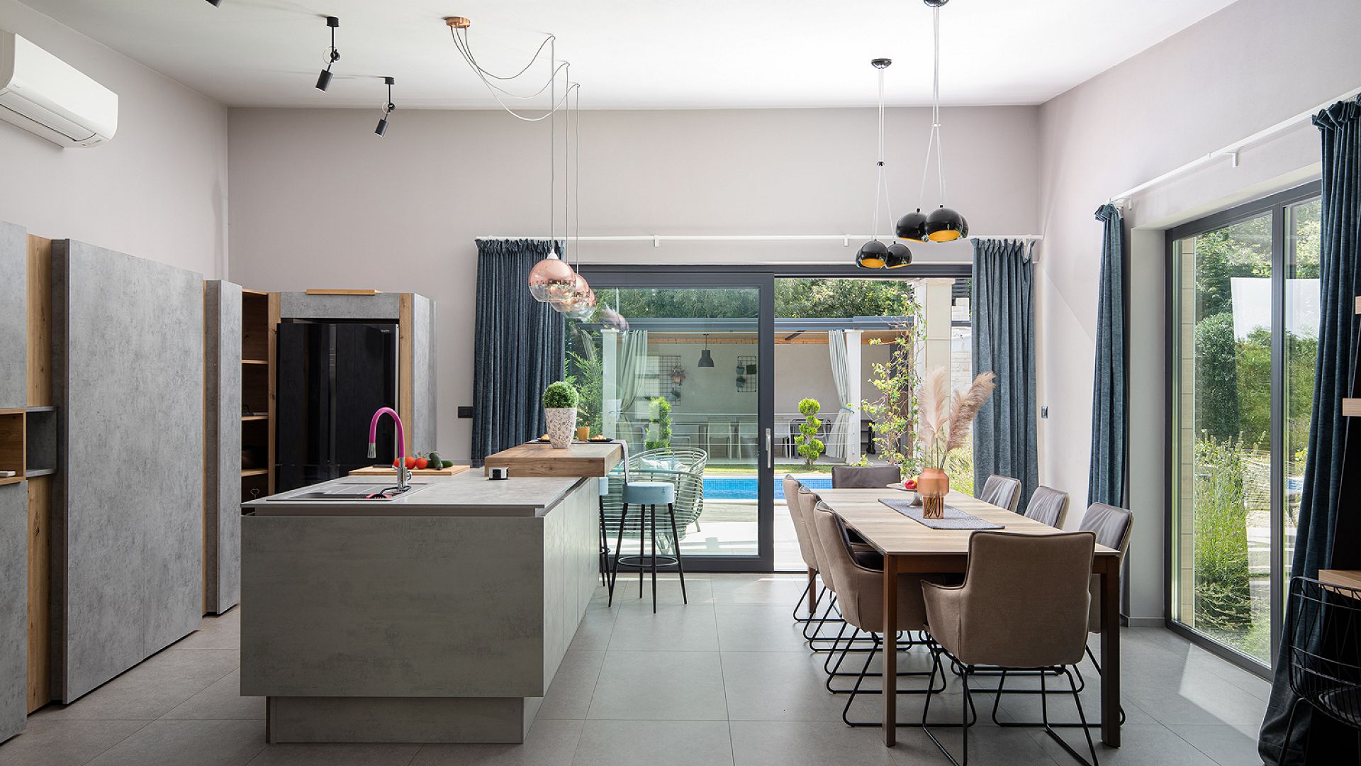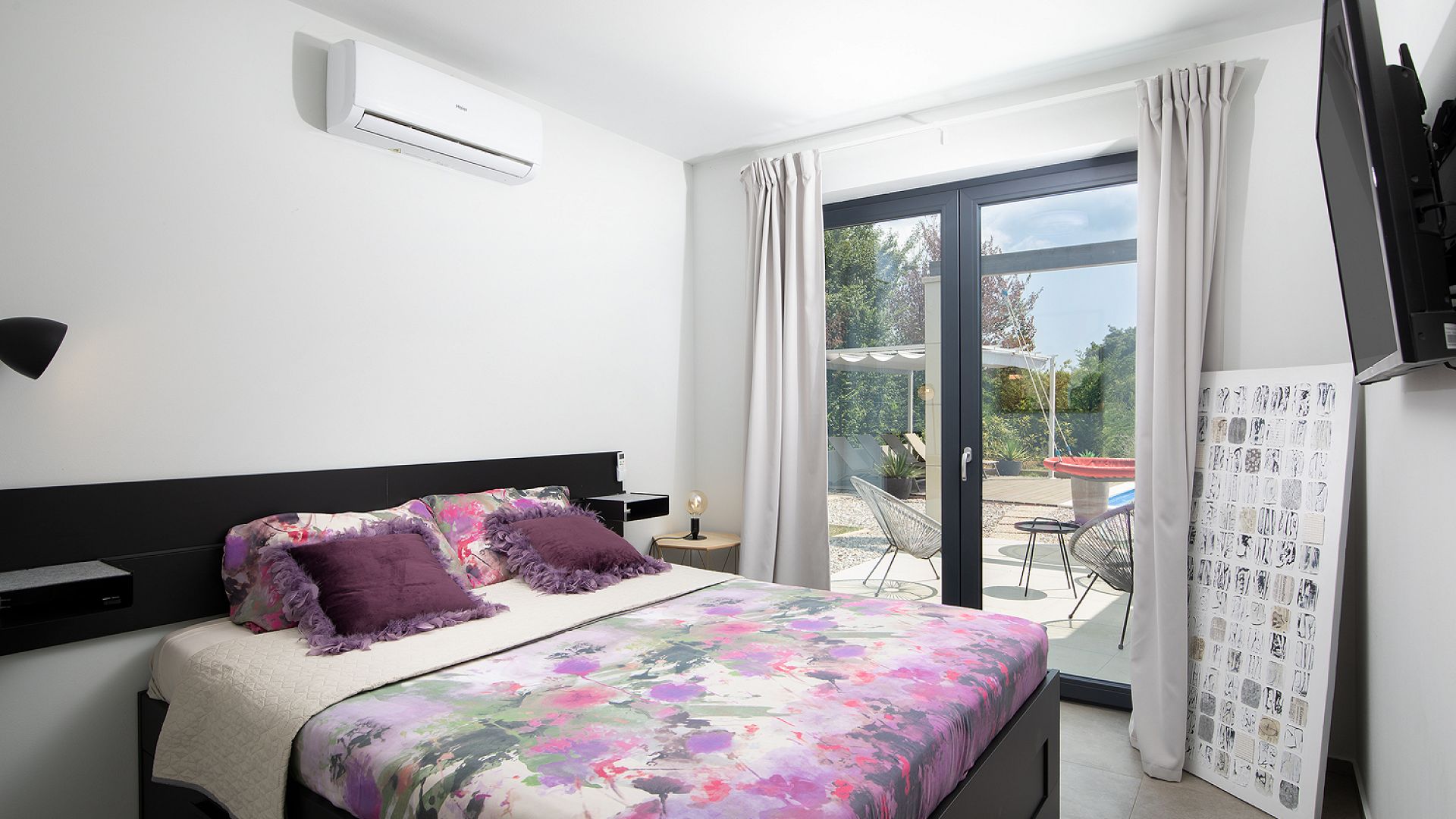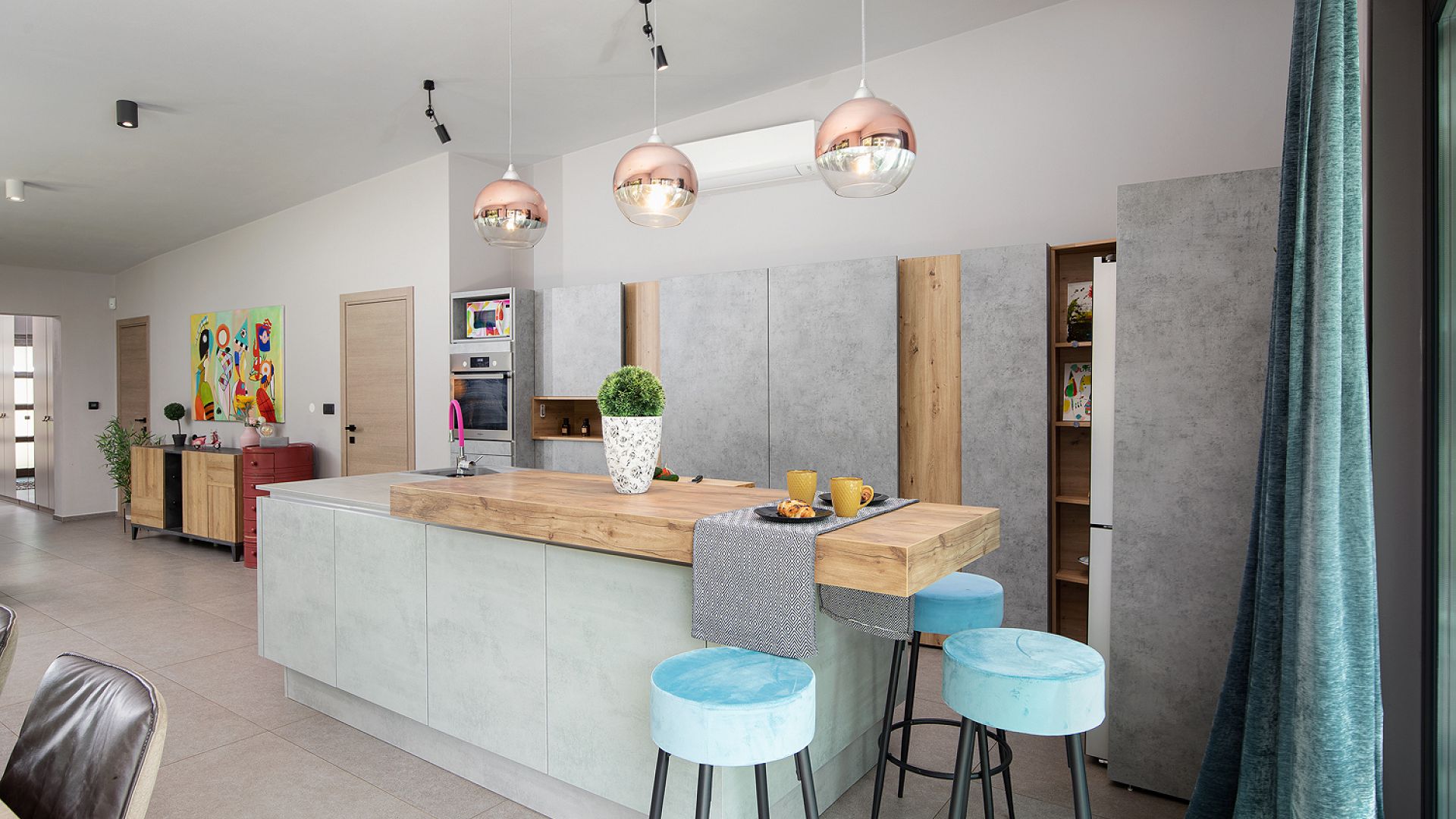 Інтер’єр витриманий у стриманому сучасному стилі — без перевантаження деталями, з фокусом на комфорт і функціональність. Вілла оснащена кондиціонуванням, Wi-Fi, системою підігріву підлоги, а також усім необхідним для тривалого перебування.