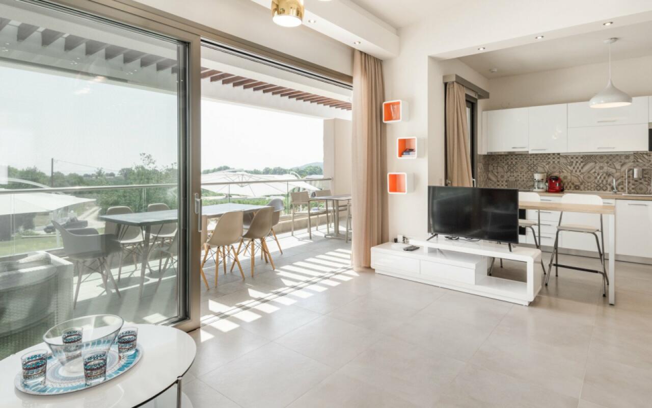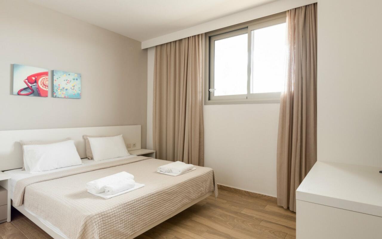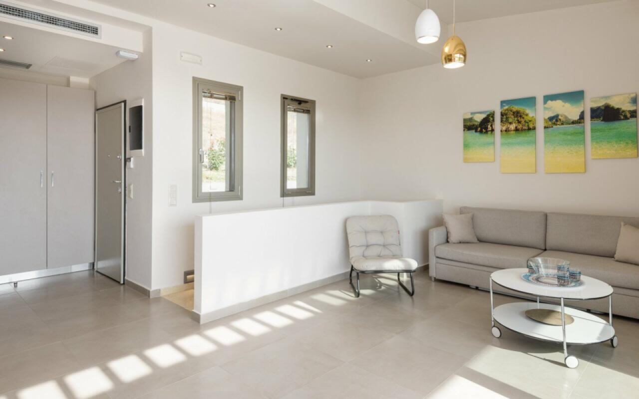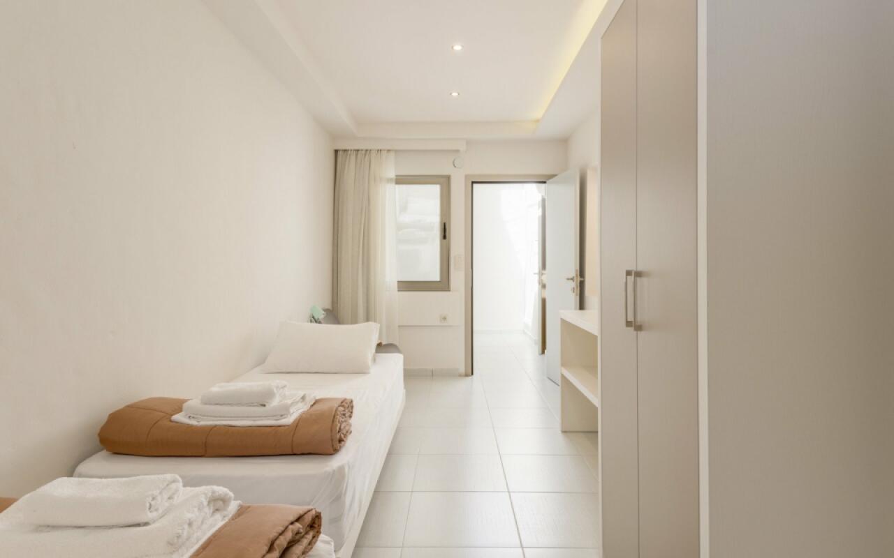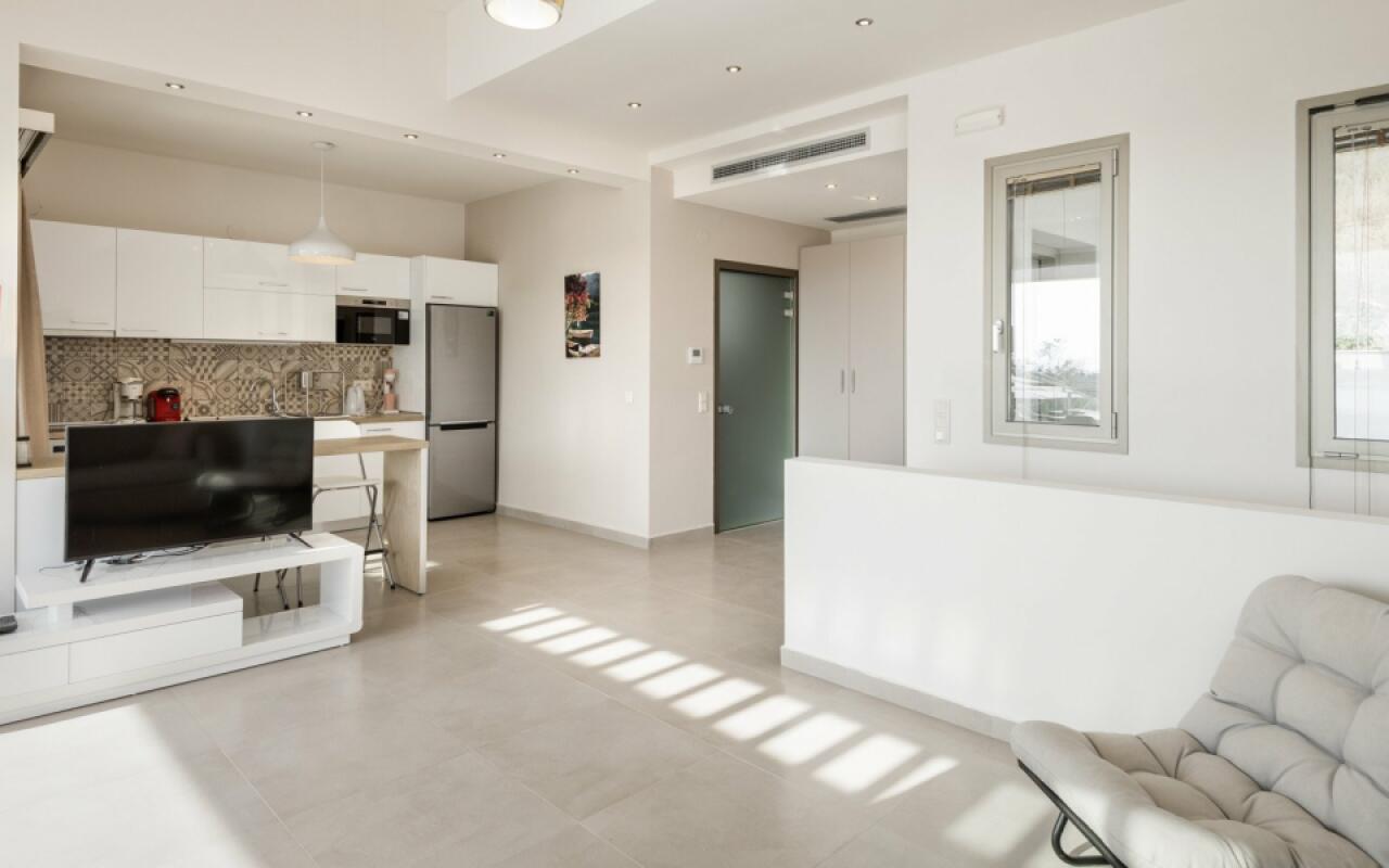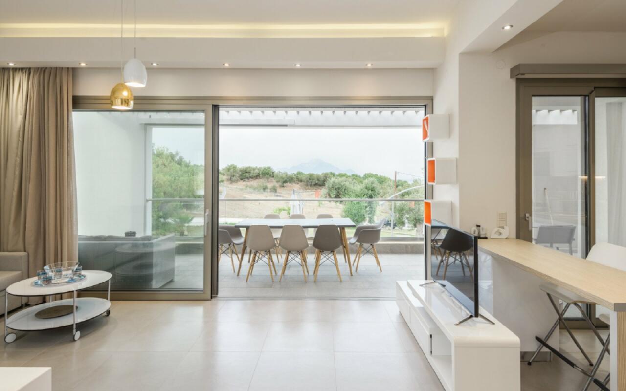 Три спальні забезпечують зручне розміщення: дві з двоспальними ліжками та одна з трьома односпальними — ідеально для сімей або компаній друзів. Великі вікна наповнюють простір природним світлом, а продумане планування створює відчуття легкості та простору.