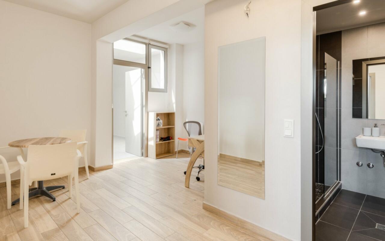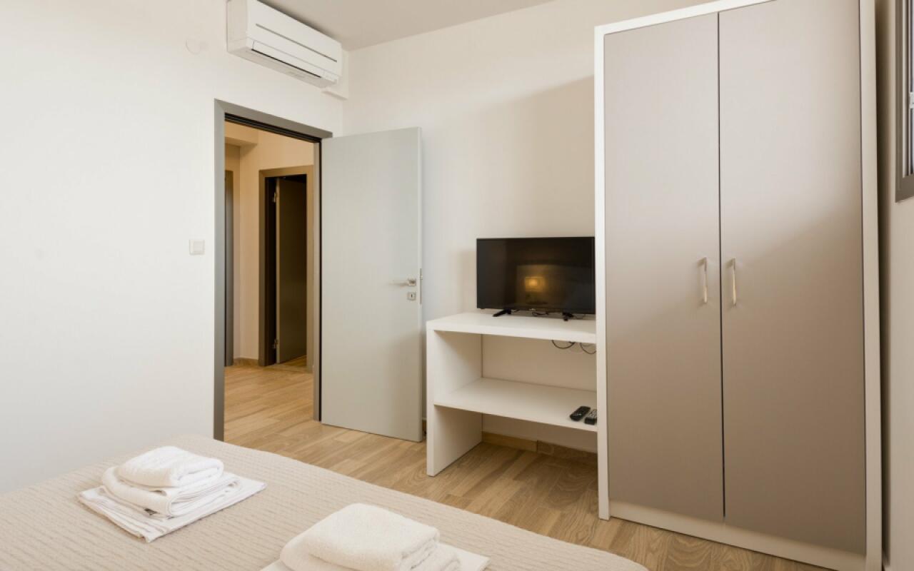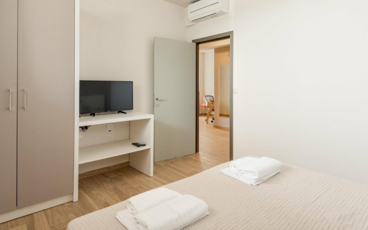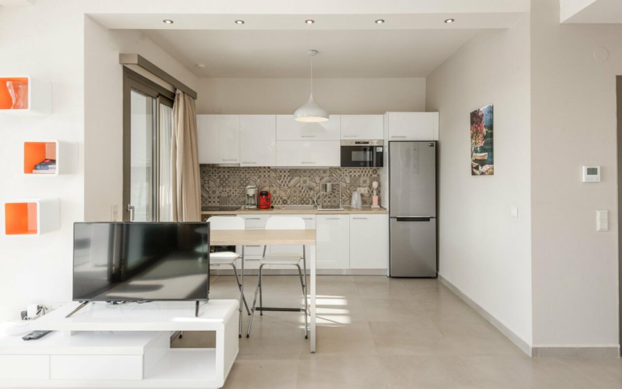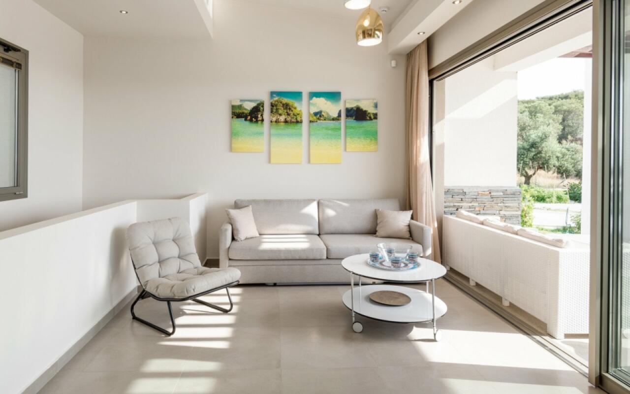 Три спальні забезпечують зручне розміщення: дві з двоспальними ліжками та одна з трьома односпальними — ідеально для сімей або компаній друзів. Великі вікна наповнюють простір природним світлом, а продумане планування створює відчуття легкості та простору.