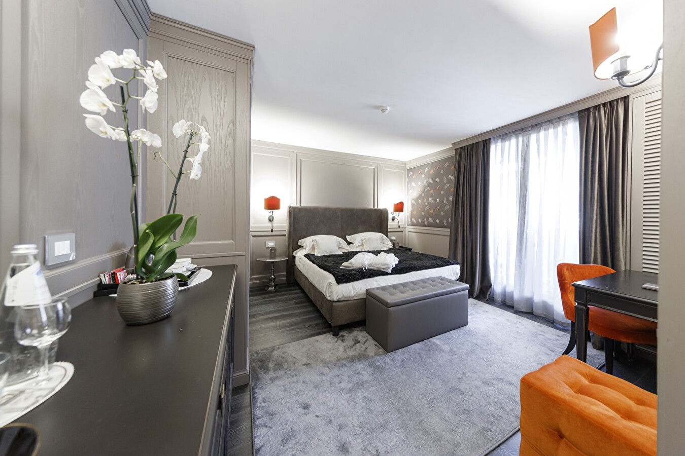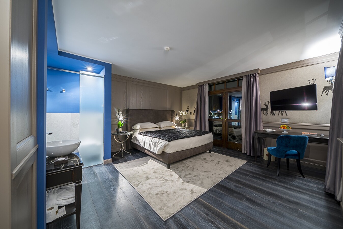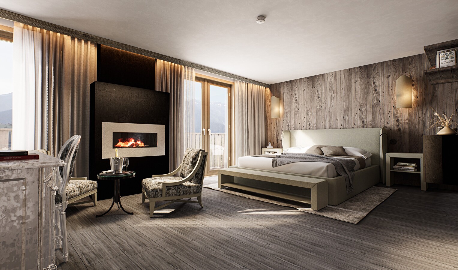 Номери оформлені у класичному альпійському стилі: тепле дерево, м’яке світло та панорамні краєвиди створюють атмосферу спокою. До ваших послуг — LCD-телевізор із супутниковими каналами, мінібар і безкоштовний Wi-Fi.
