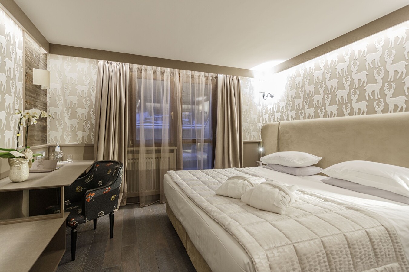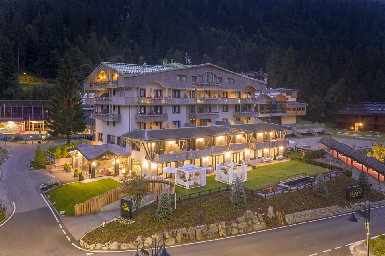 На самому початку підйомника Monte Spinale та біля схилу Schumacher розташований розкішний готель із неймовірним виглядом на Доломіти Брента. Тут на вас чекає витончена атмосфера, уважний сервіс і сучасна wellness-зона з сауною, турецькою лазнею та басейном із гідромасажем.