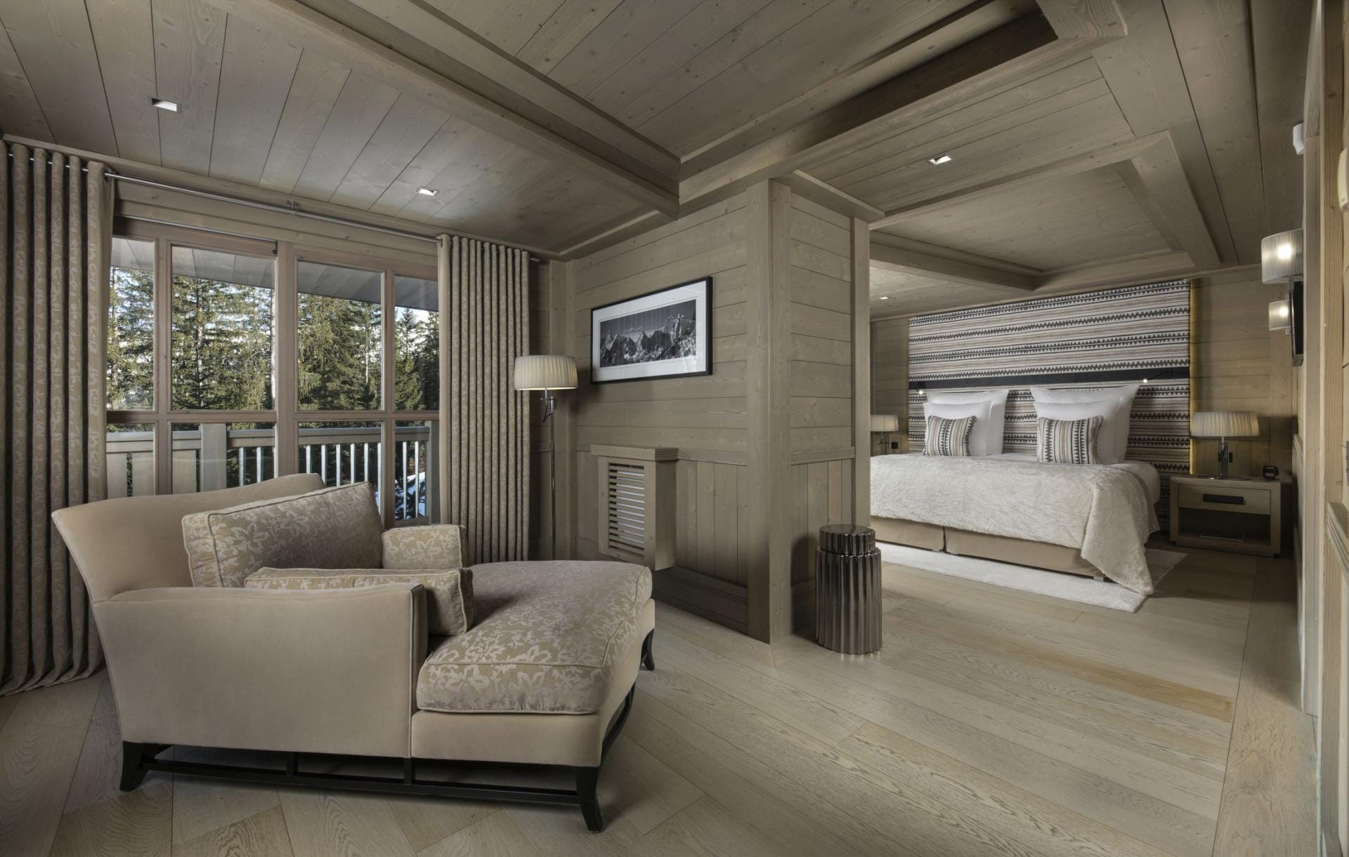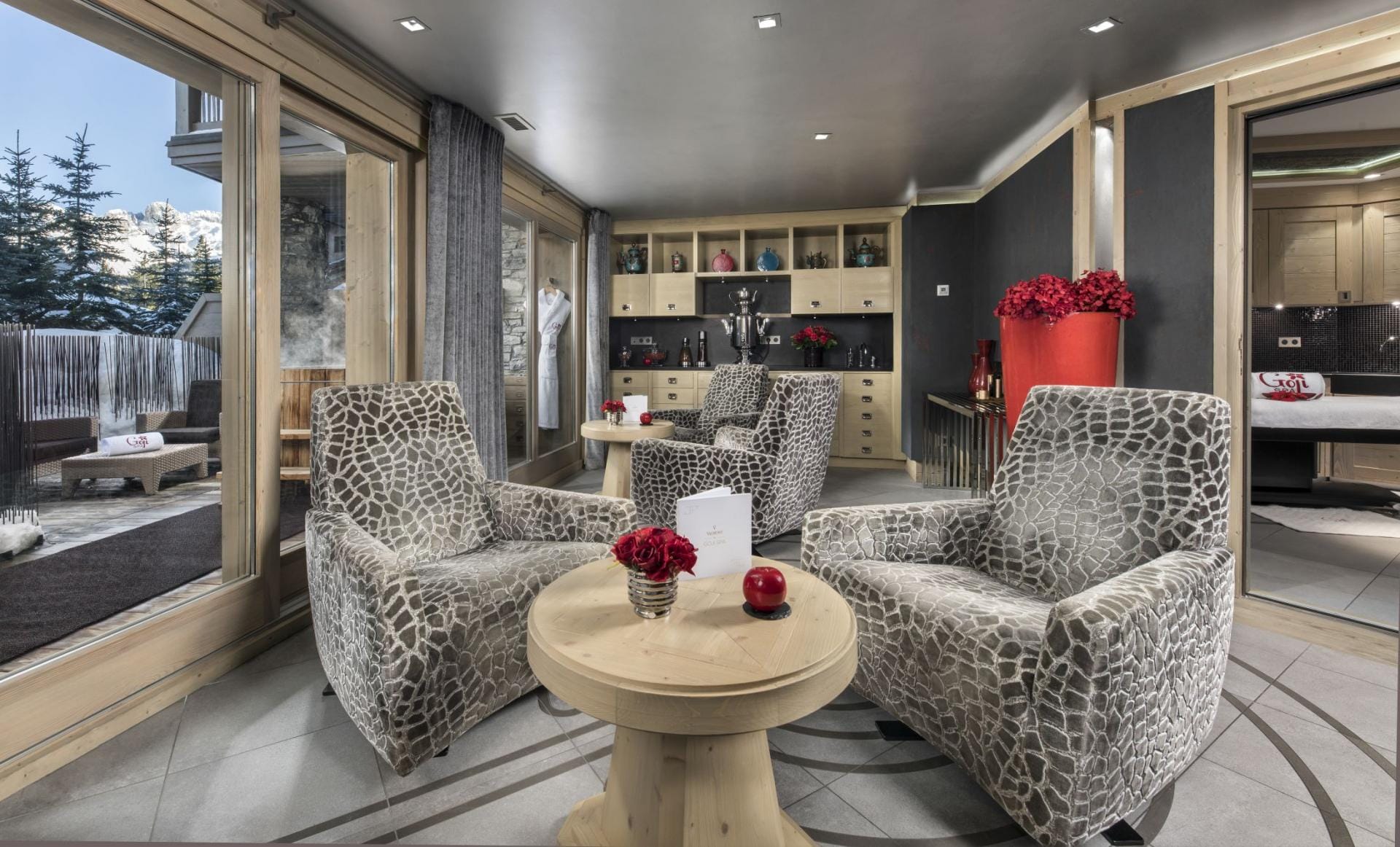 Дві окремі лаунж-зони дозволяють як проводити час разом, так і знаходити приватність. Обідня зона з панорамними вікнами відкриває захопливі краєвиди на гірські схили, а балкон дозволяє буквально спостерігати за лижниками на трасі.