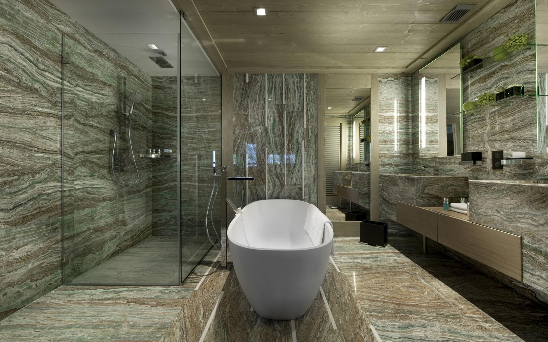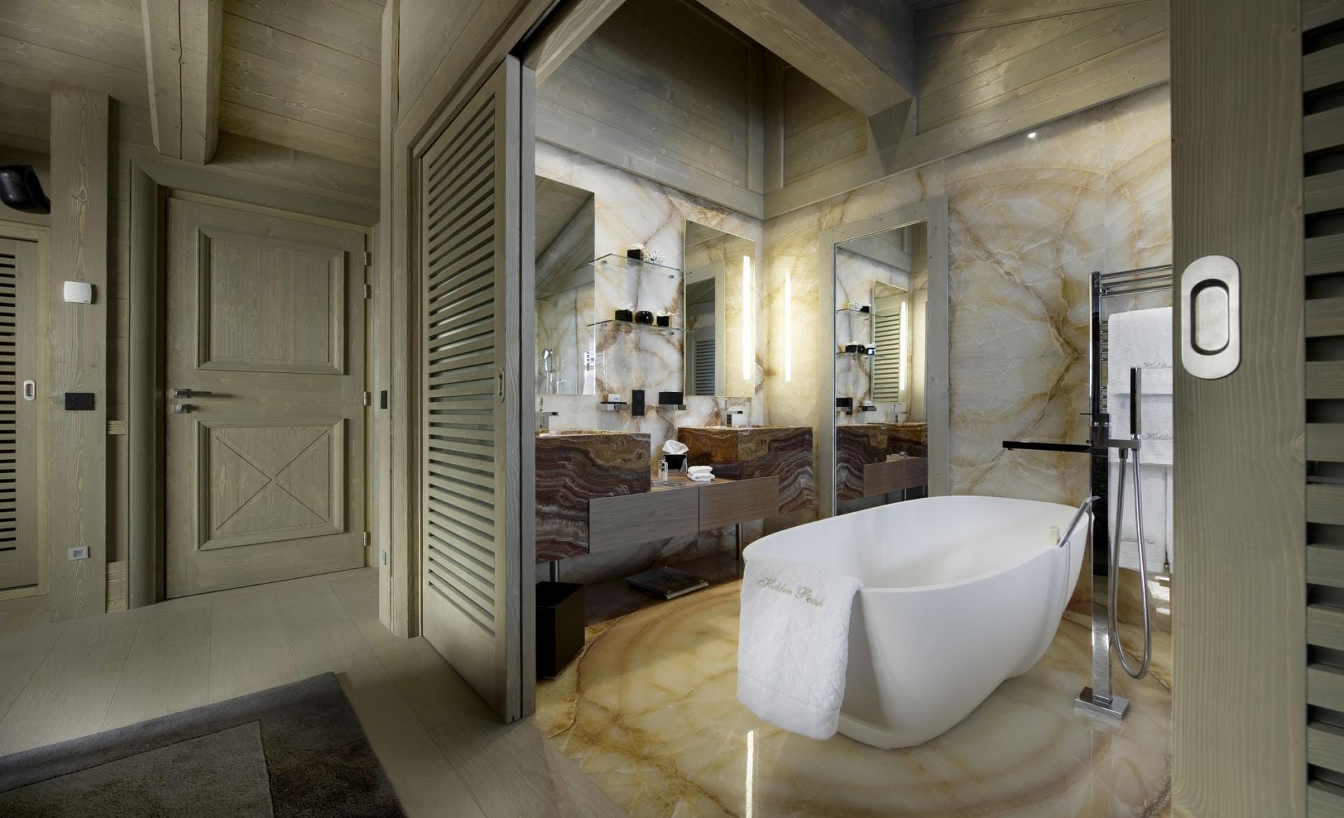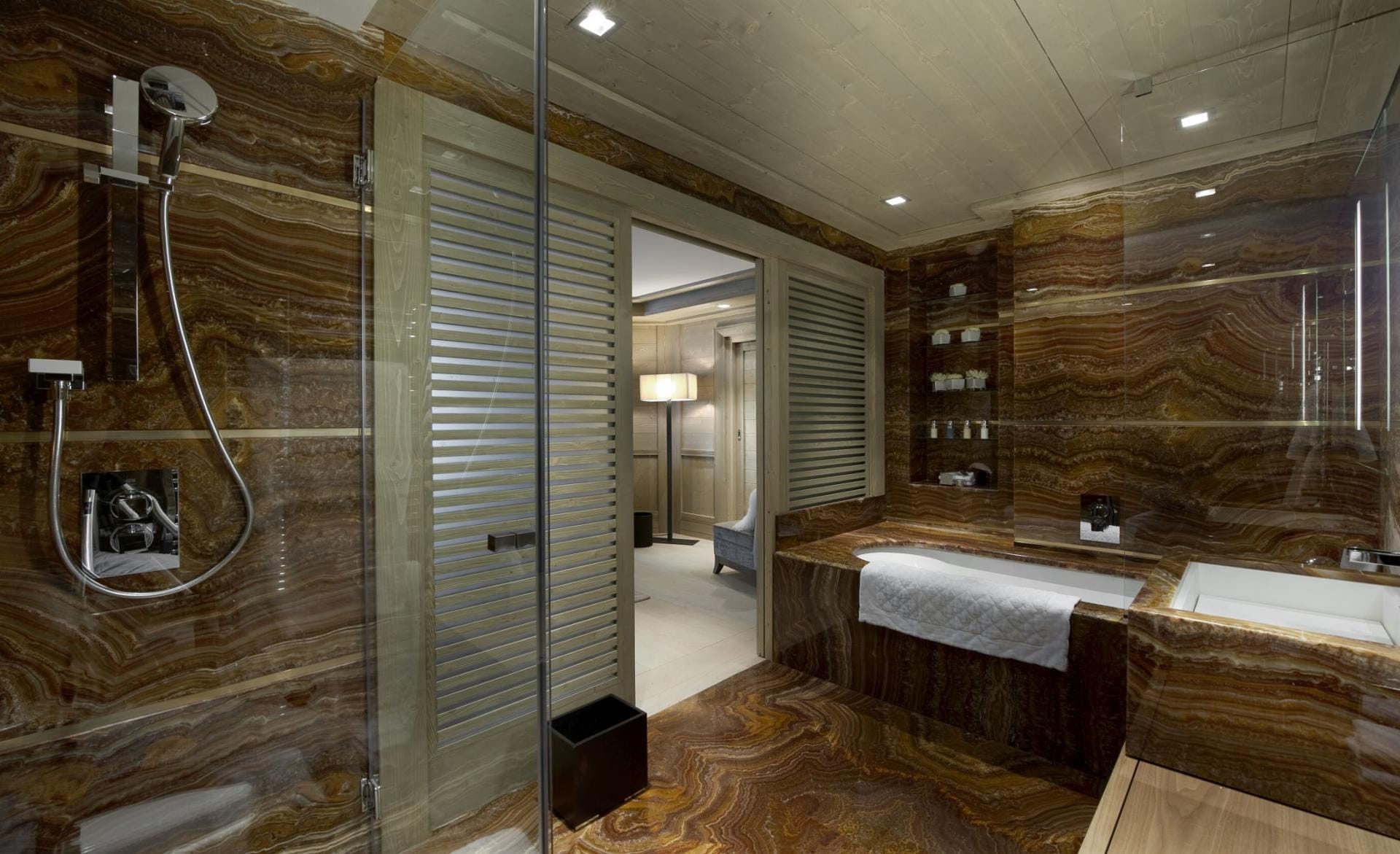 Спальні оформлені в спокійних природних відтінках із використанням якісних матеріалів і текстилю. Деякі кімнати мають власні балкони або додаткові зони відпочинку. Майстер-сьюїт розташований на окремому мезоніні, забезпечуючи максимальну приватність.