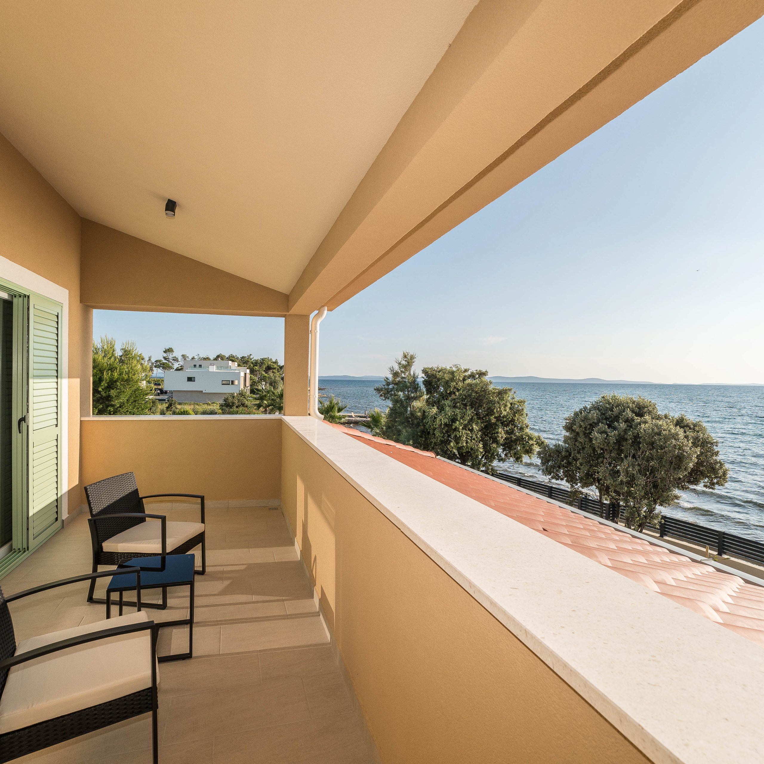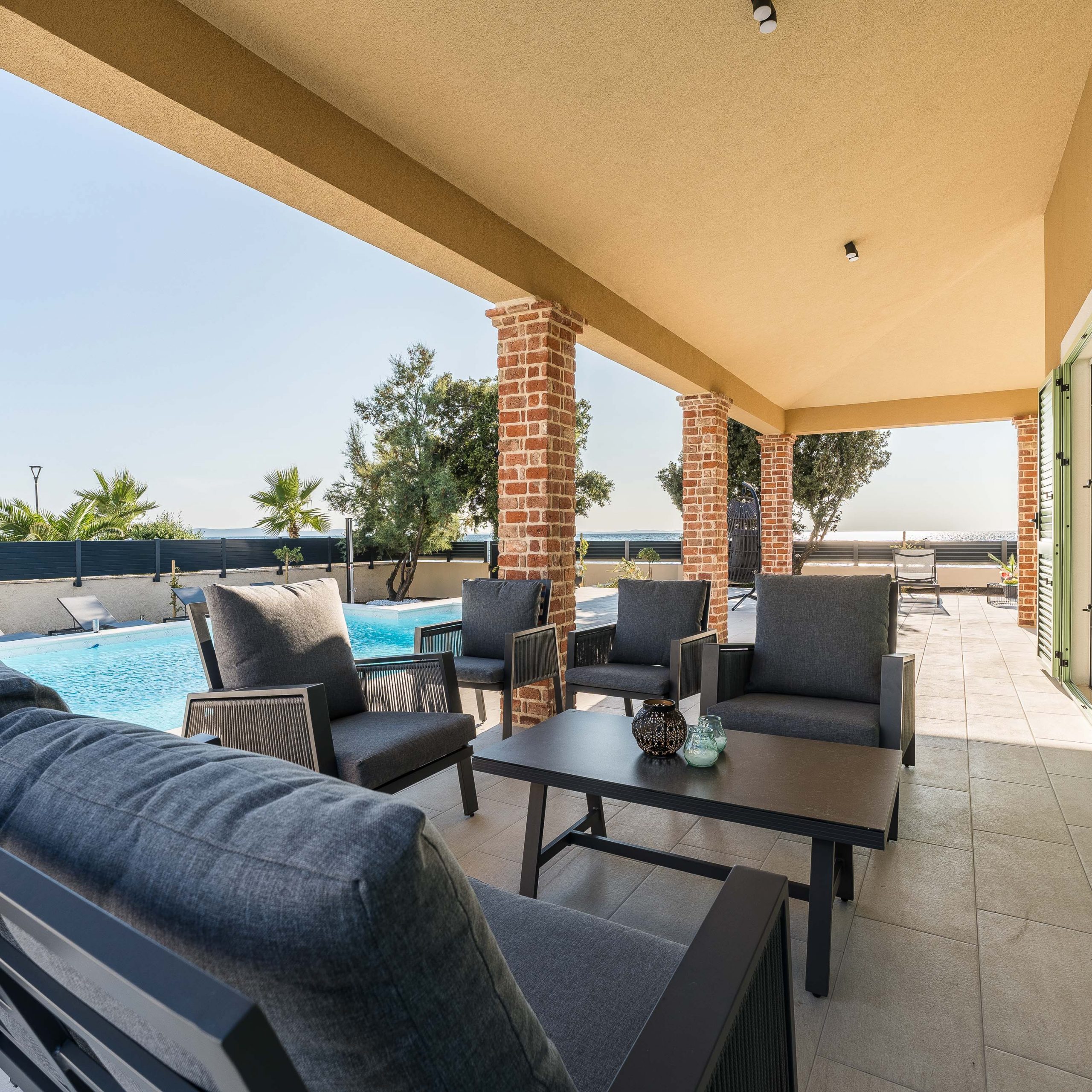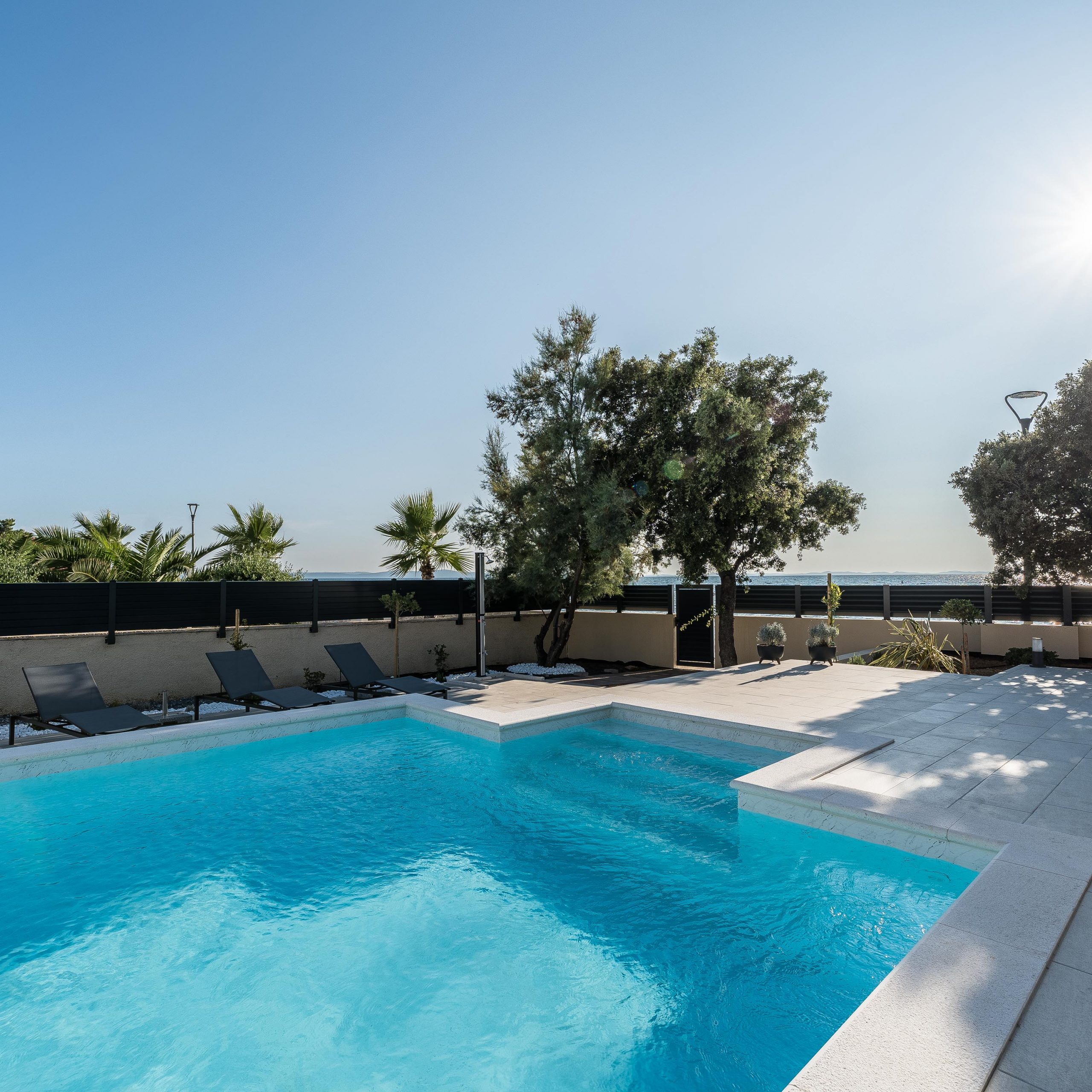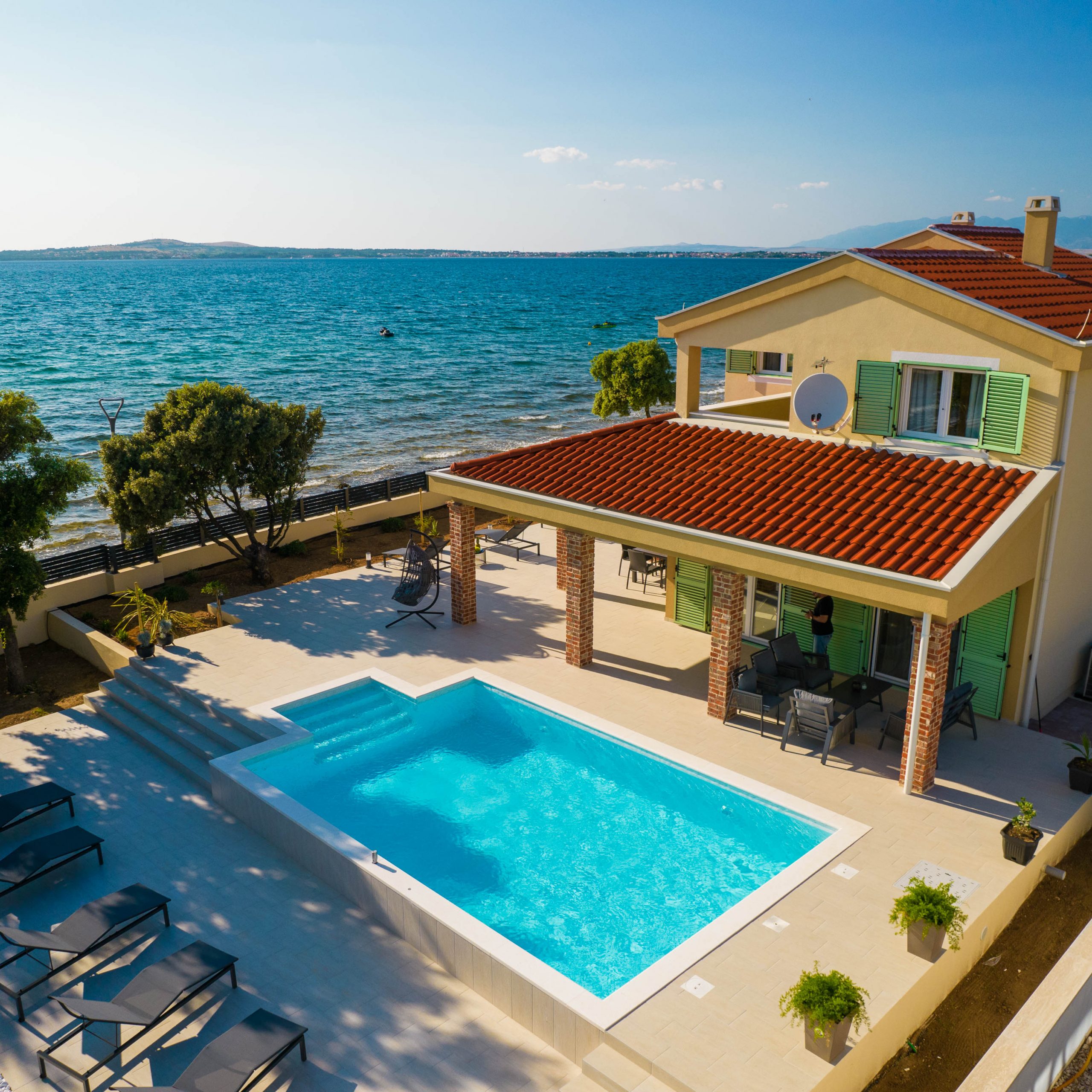 Розташована просто на березі Адріатики, ця романтична вілла з підігріваним басейном — справжнє місце спокою та гармонії для 6 гостей. З її просторої тераси можна чути шум хвиль і вдихати морське повітря, адже до пляжу — лише 5 метрів.