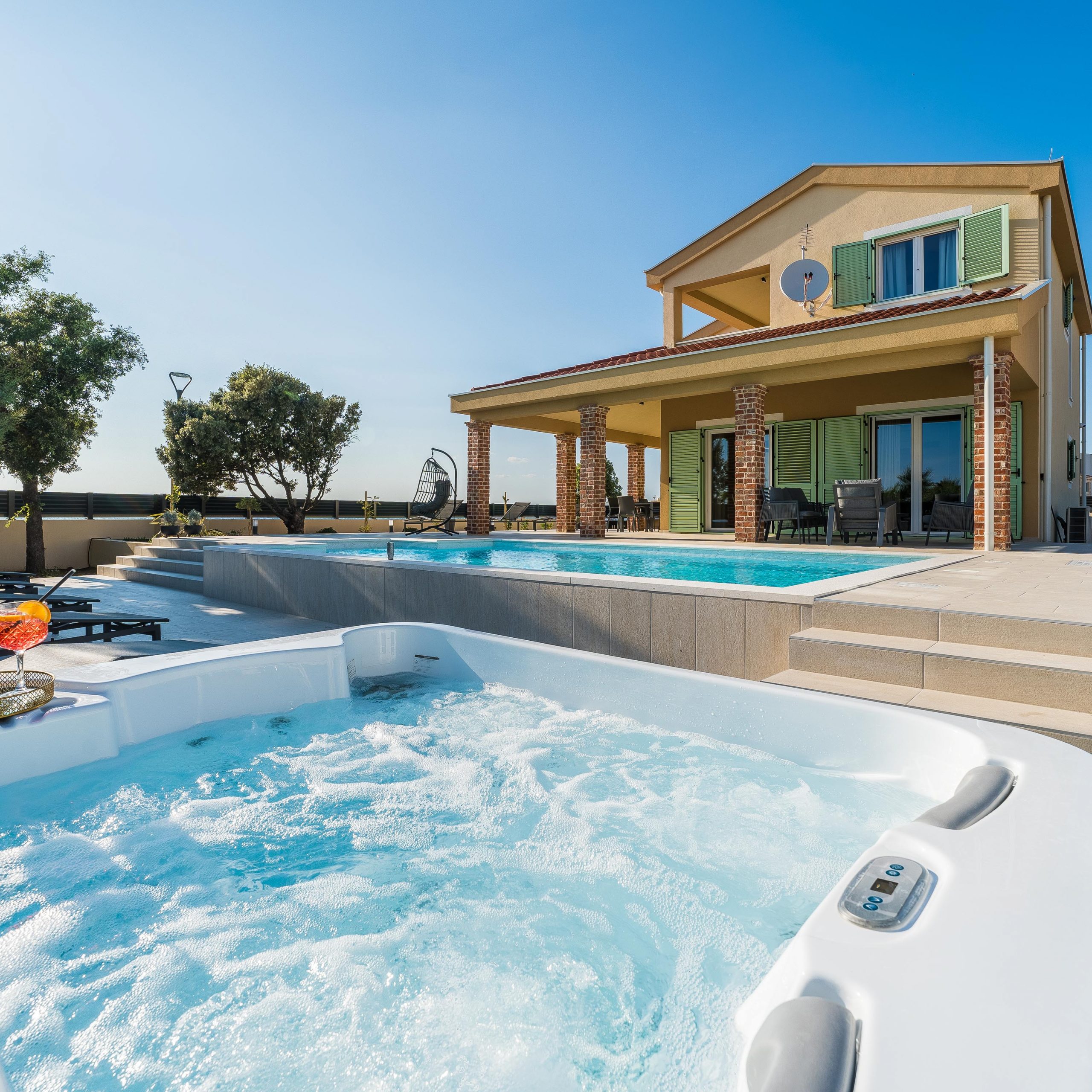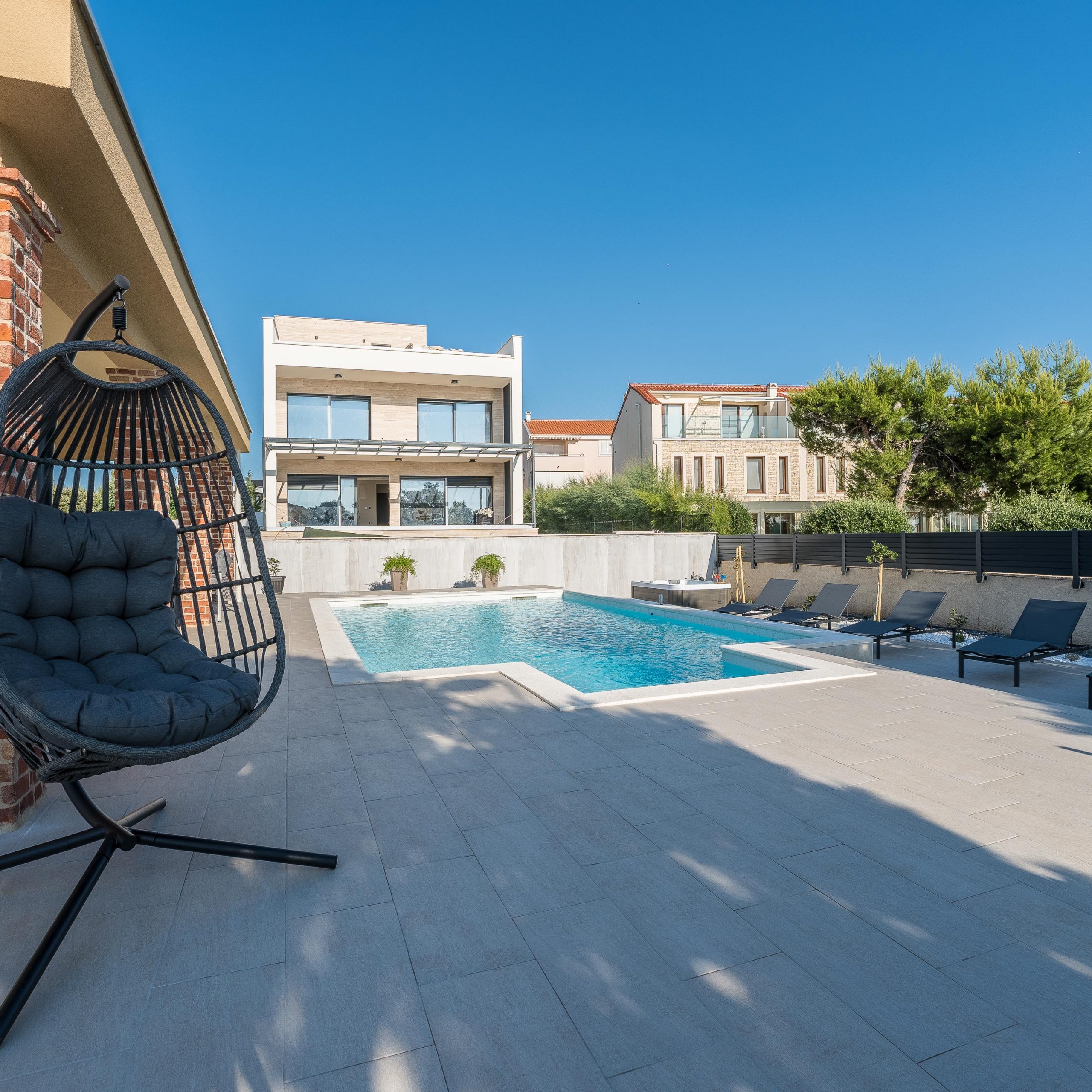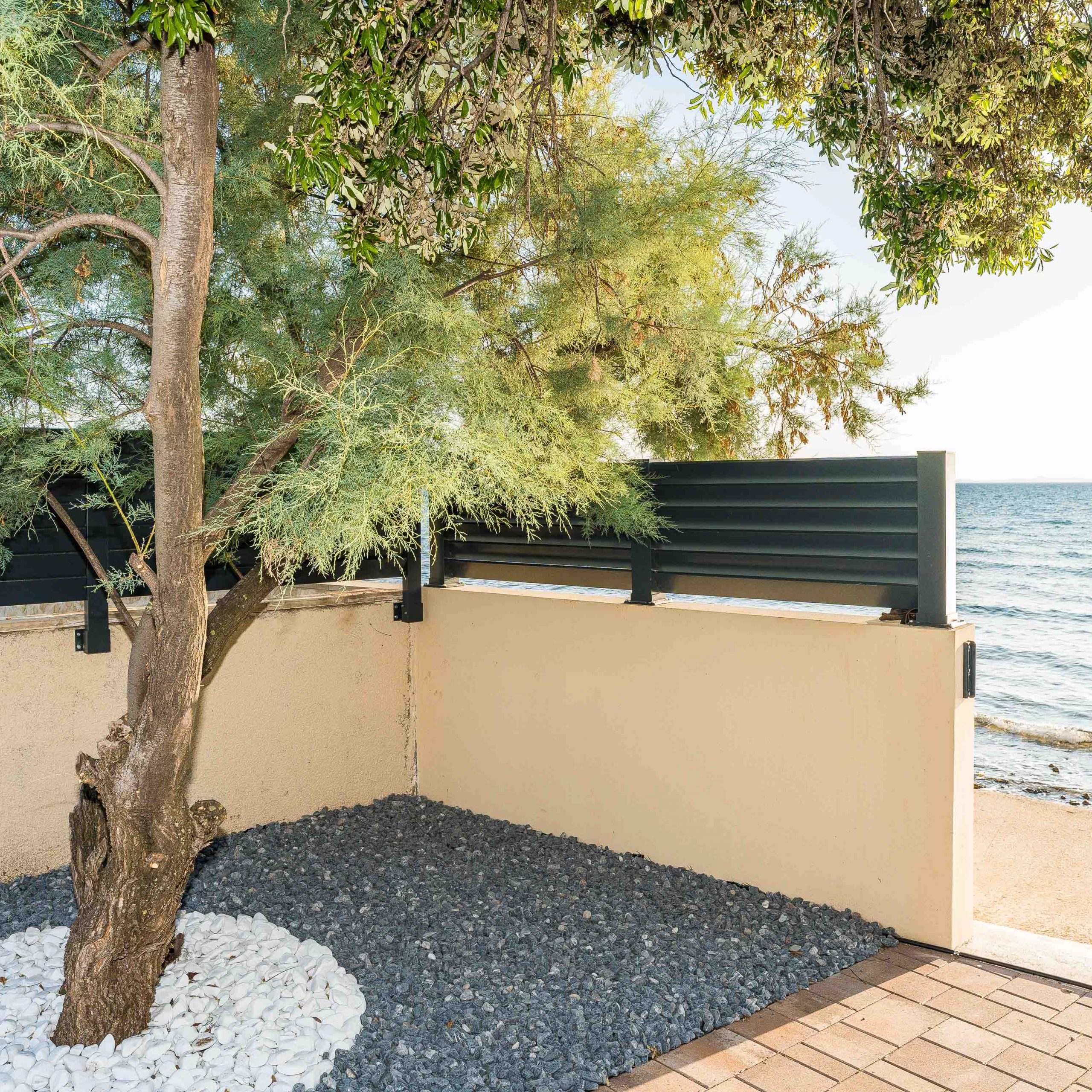 На подвір’ї — басейн із морською водою, джакузі, шезлонги та тераса з місцем для обідів на свіжому повітрі. Прямий вихід до моря дозволяє буквально з тераси зробити кілька кроків і зануритися у хвилі. Для гостей передбачено приватну автостоянку на 4 машини, гриль і садові меблі для вечірнього відпочинку.