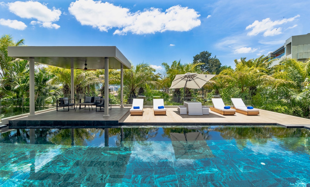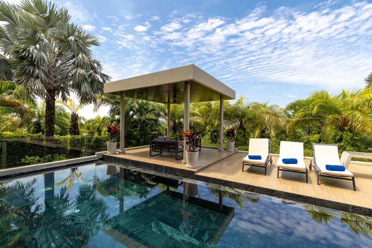 Ця розкішна резиденція — це ідеальне поєднання сучасної архітектури, природної гармонії та тропічної елегантності. Розташована серед зелених пагорбів поблизу пляжу Лаян, вона пропонує простір, приватність і сервіс на рівні п’ятизіркового готелю.