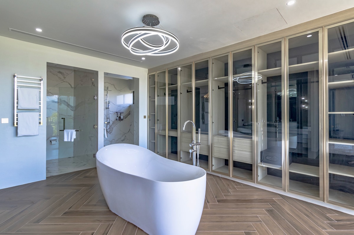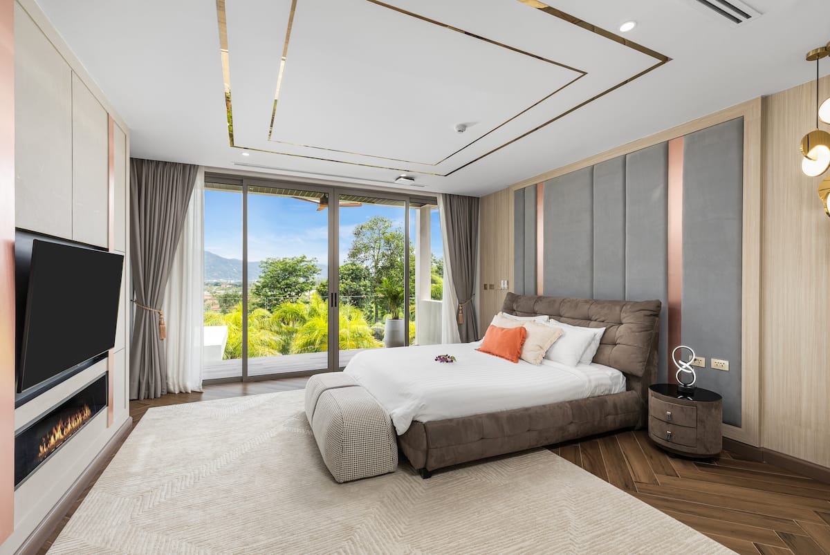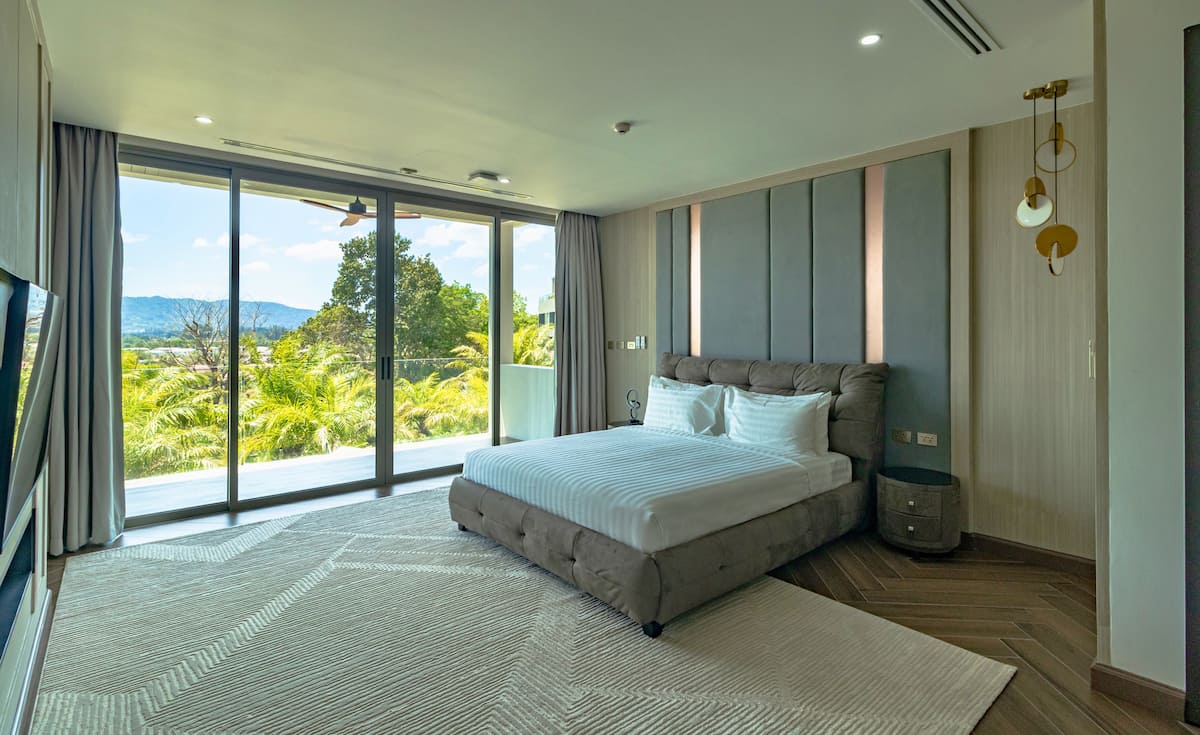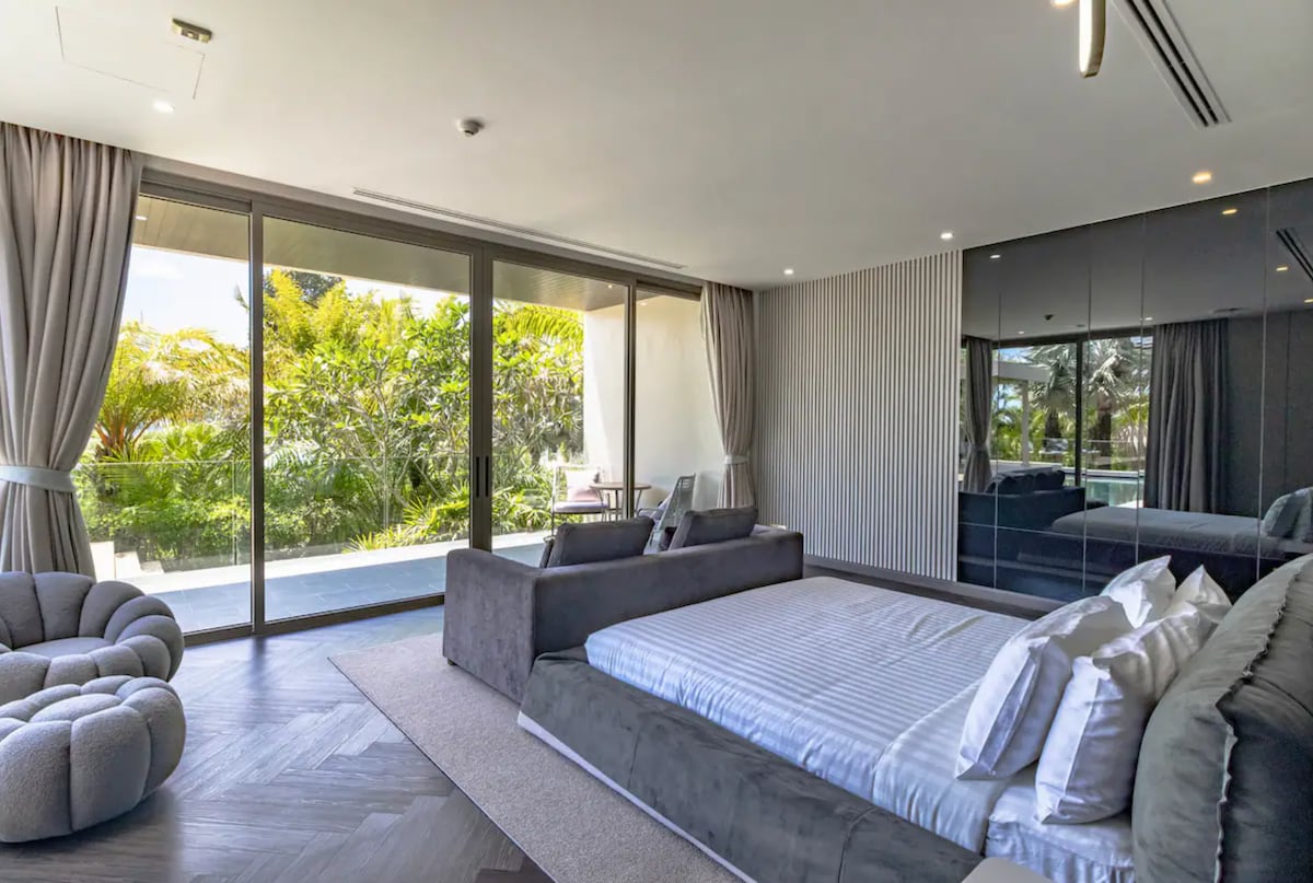 Вілла розрахована на 10 гостей і має 5 спалень та 4 ванні кімнати. Кожна спальня оформлена в сучасному стилі, оснащена кондиціонером і телевізором, а з великих панорамних вікон відкривається вид на джунглі чи море. Майстер-спальня має власну ванну кімнату та балкон — ідеальне місце для споглядання заходів сонця.