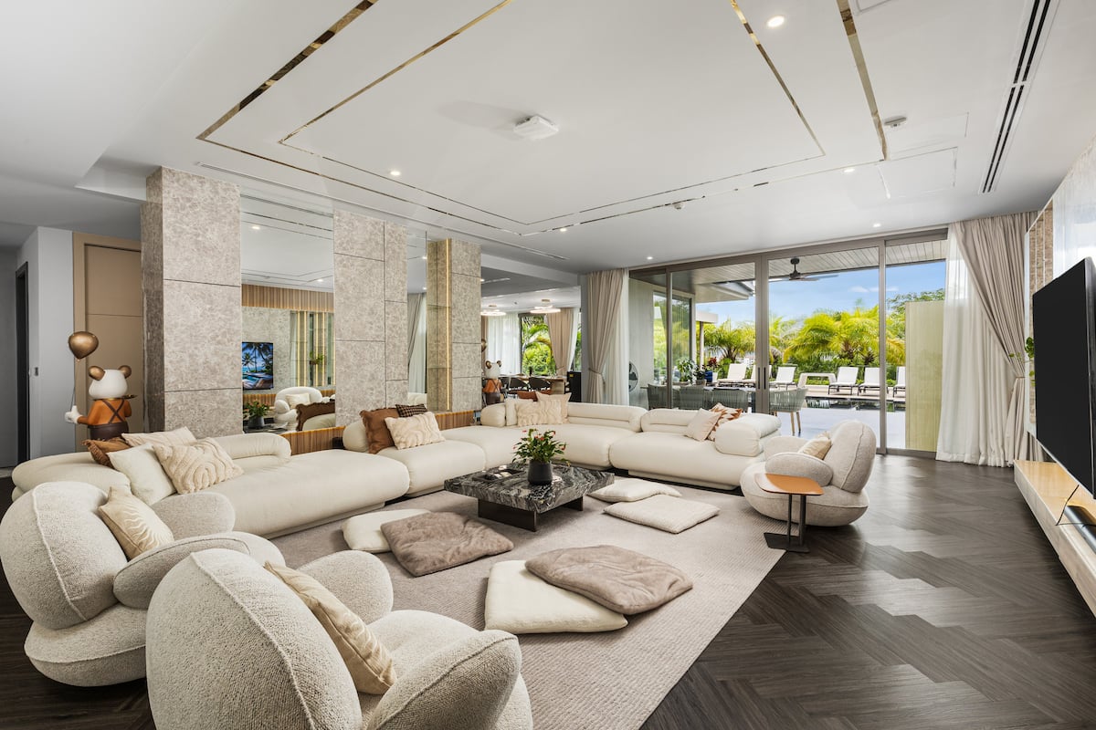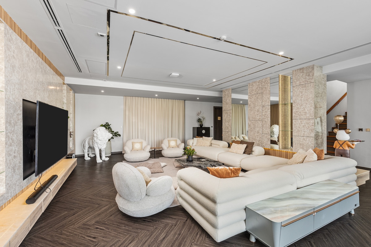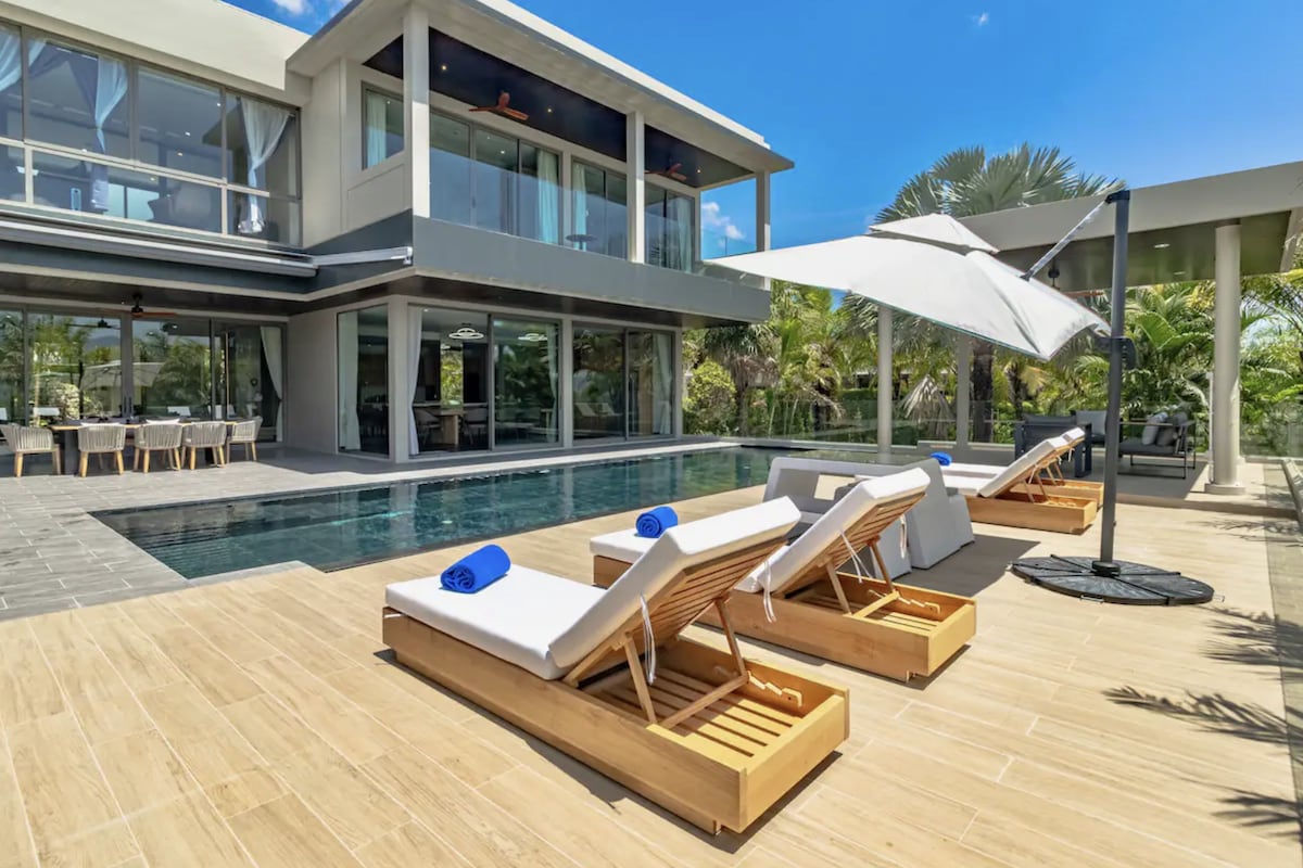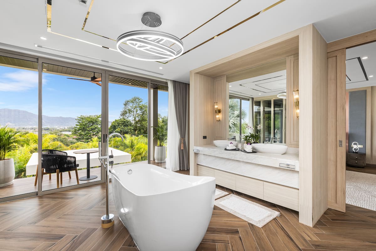 Вілла розрахована на 10 гостей і має 5 спалень та 4 ванні кімнати. Кожна спальня оформлена в сучасному стилі, оснащена кондиціонером і телевізором, а з великих панорамних вікон відкривається вид на джунглі чи море. Майстер-спальня має власну ванну кімнату та балкон — ідеальне місце для споглядання заходів сонця.
