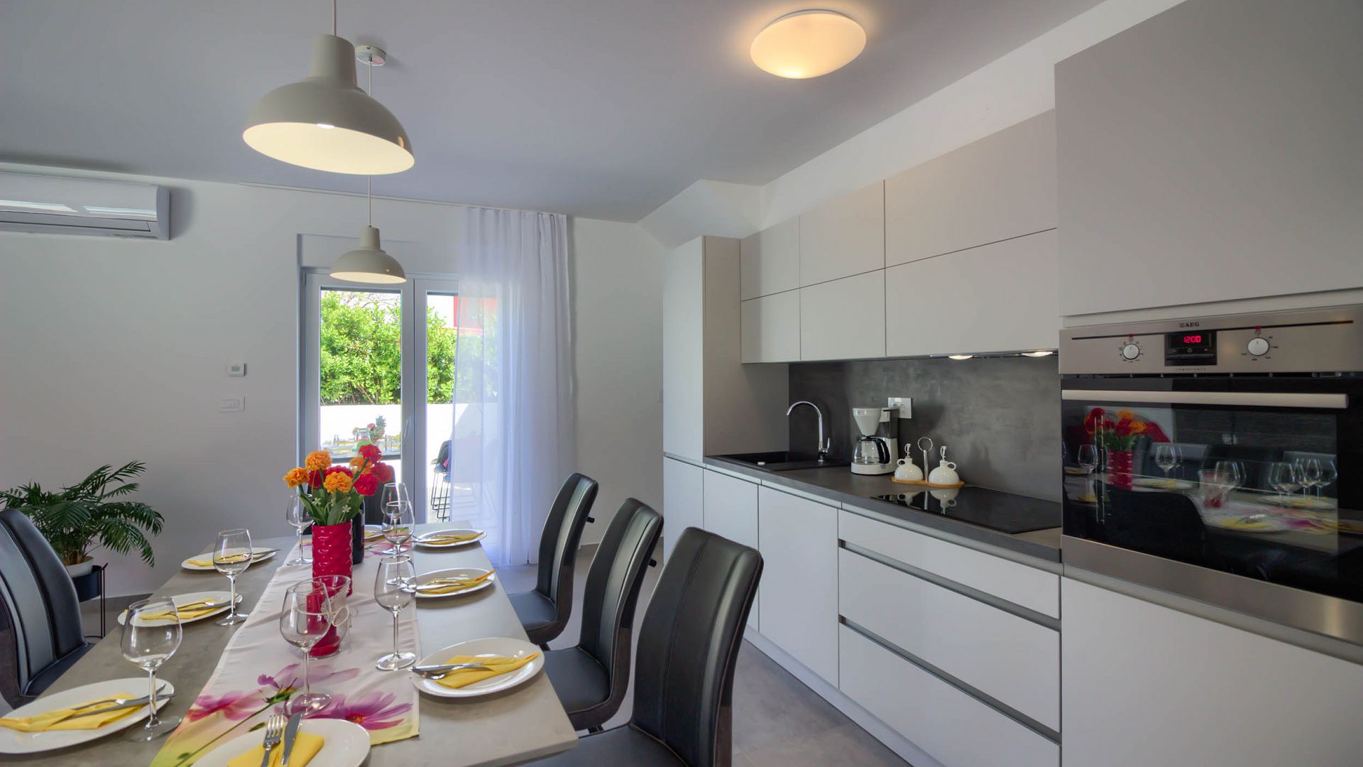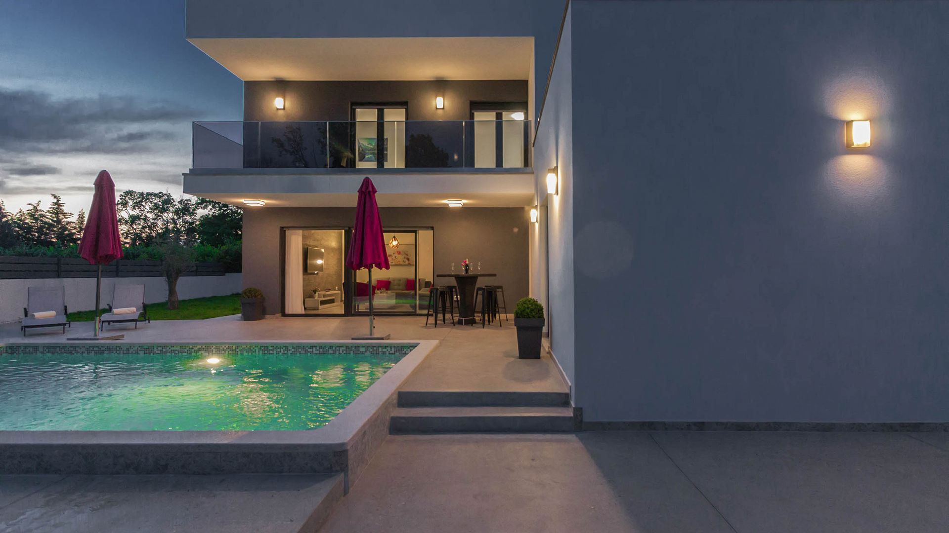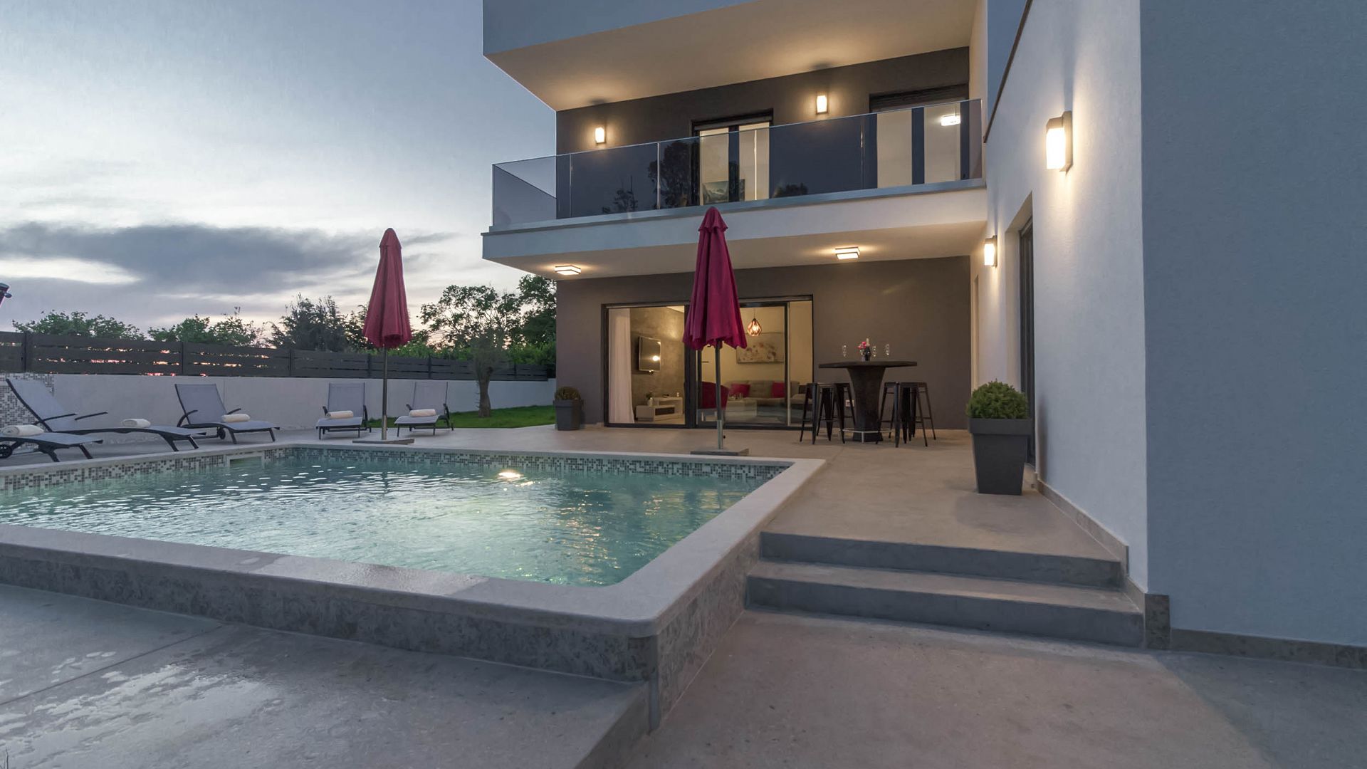 Ця сучасна вілла розташована так, щоб поєднати тишу приватного простору з близькістю всієї необхідної інфраструктури. Вона підходить для розміщення до восьми гостей і стане зручним варіантом для великої родини або компанії, яка цінує комфорт і продумане планування.