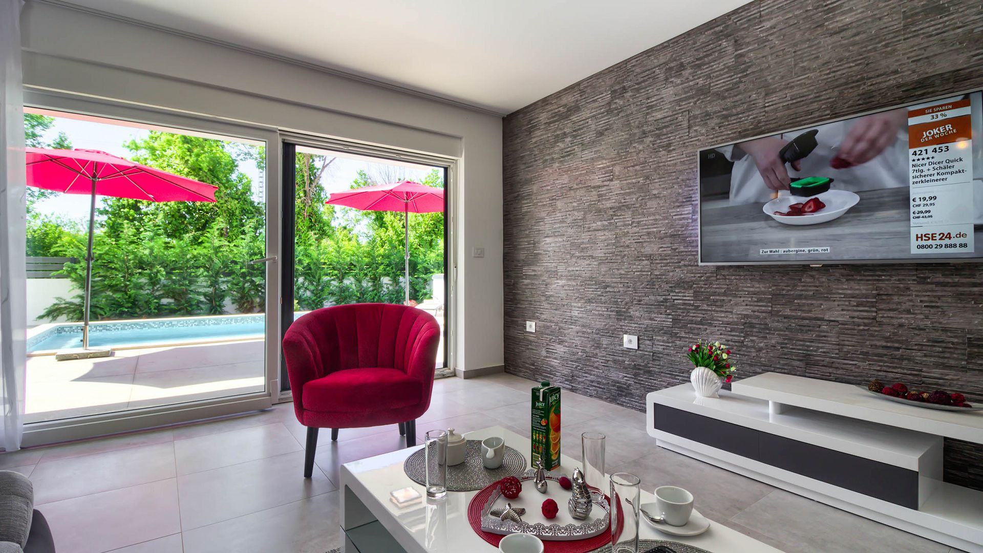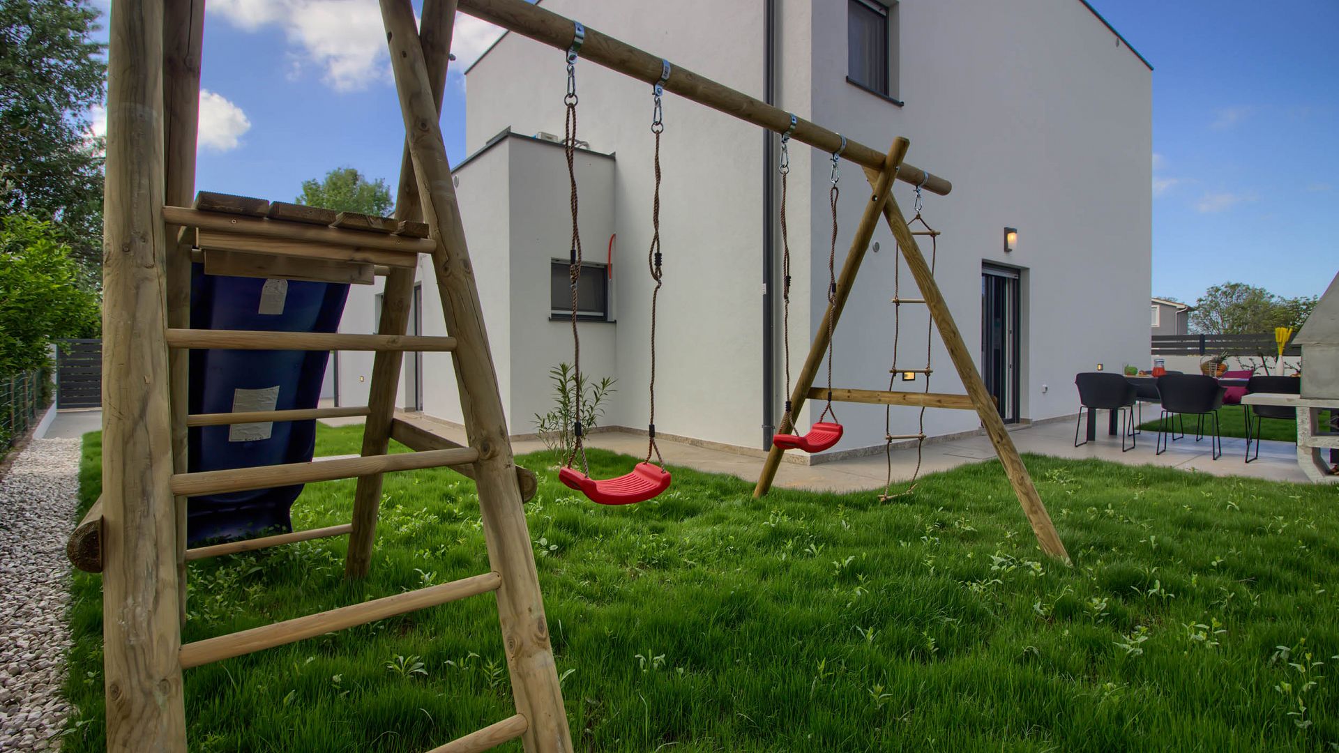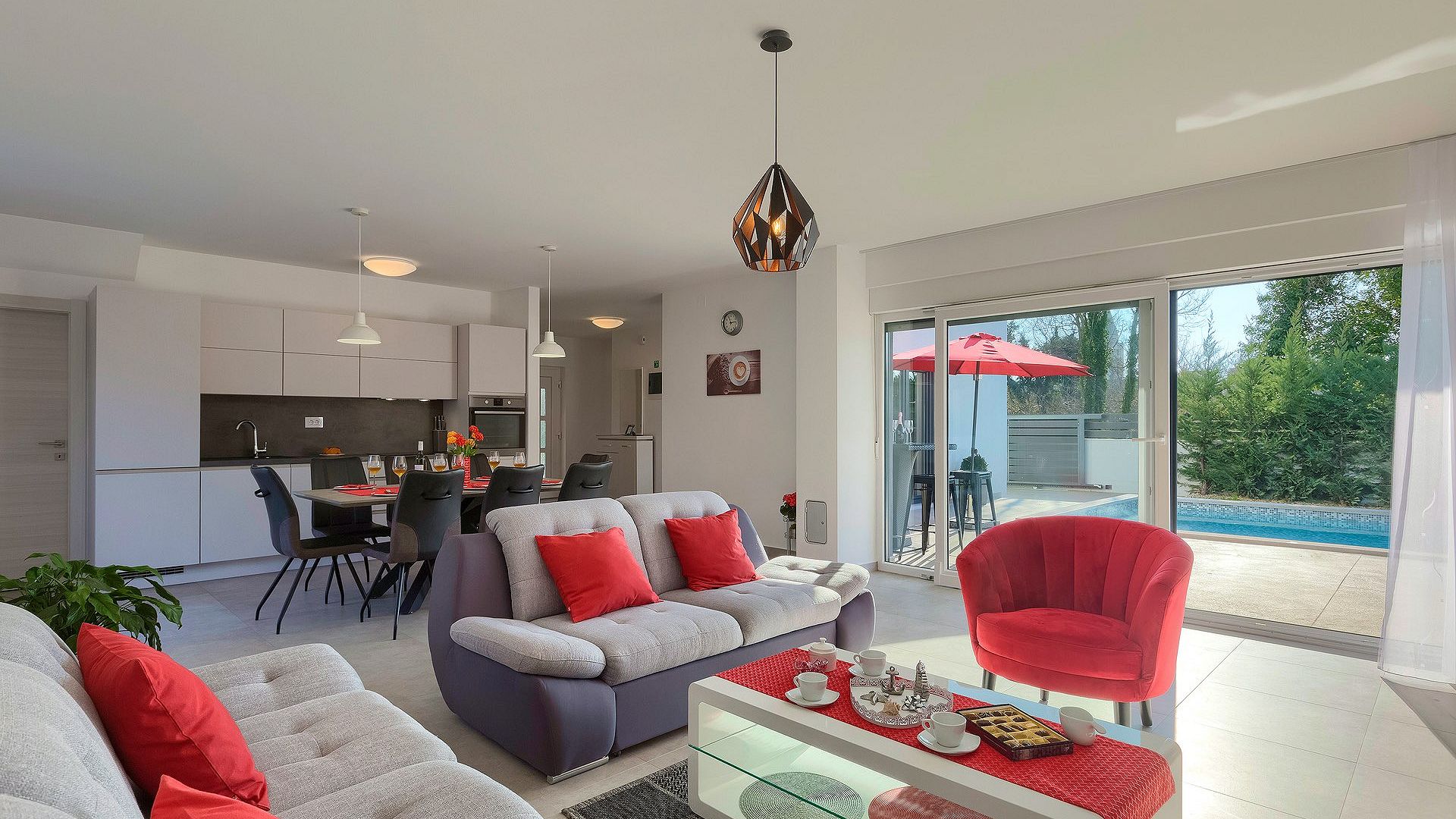 Ця сучасна вілла розташована так, щоб поєднати тишу приватного простору з близькістю всієї необхідної інфраструктури. Вона підходить для розміщення до восьми гостей і стане зручним варіантом для великої родини або компанії, яка цінує комфорт і продумане планування.