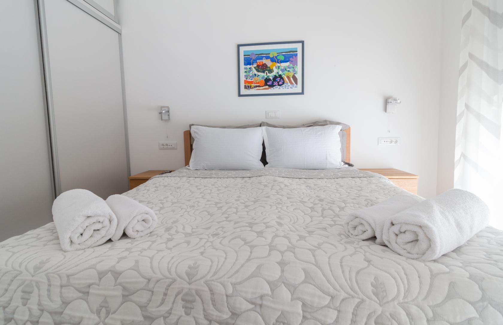 Три спальні з кондиціонуванням і телевізорами розраховані на розміщення до восьми гостей. Чотири ванні кімнати забезпечують зручність навіть для великих компаній. Планування продумане так, щоб кожен мав достатньо простору для відпочинку без компромісів.