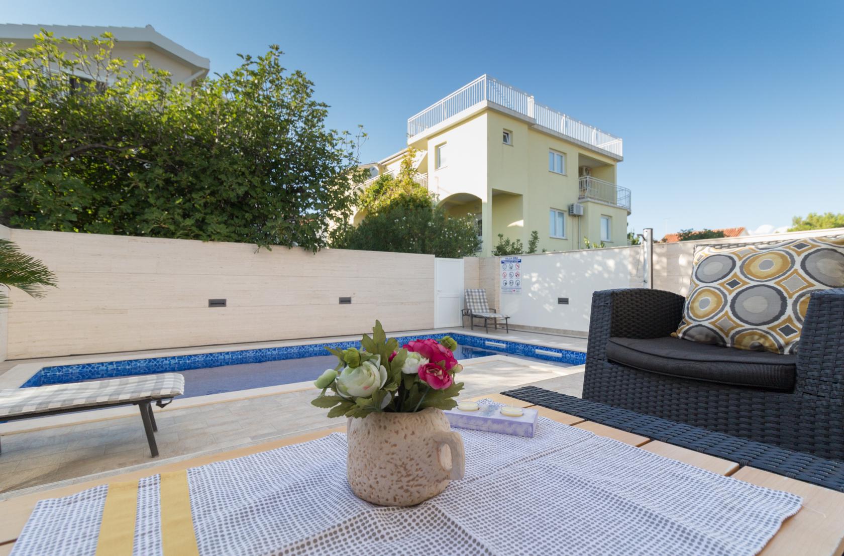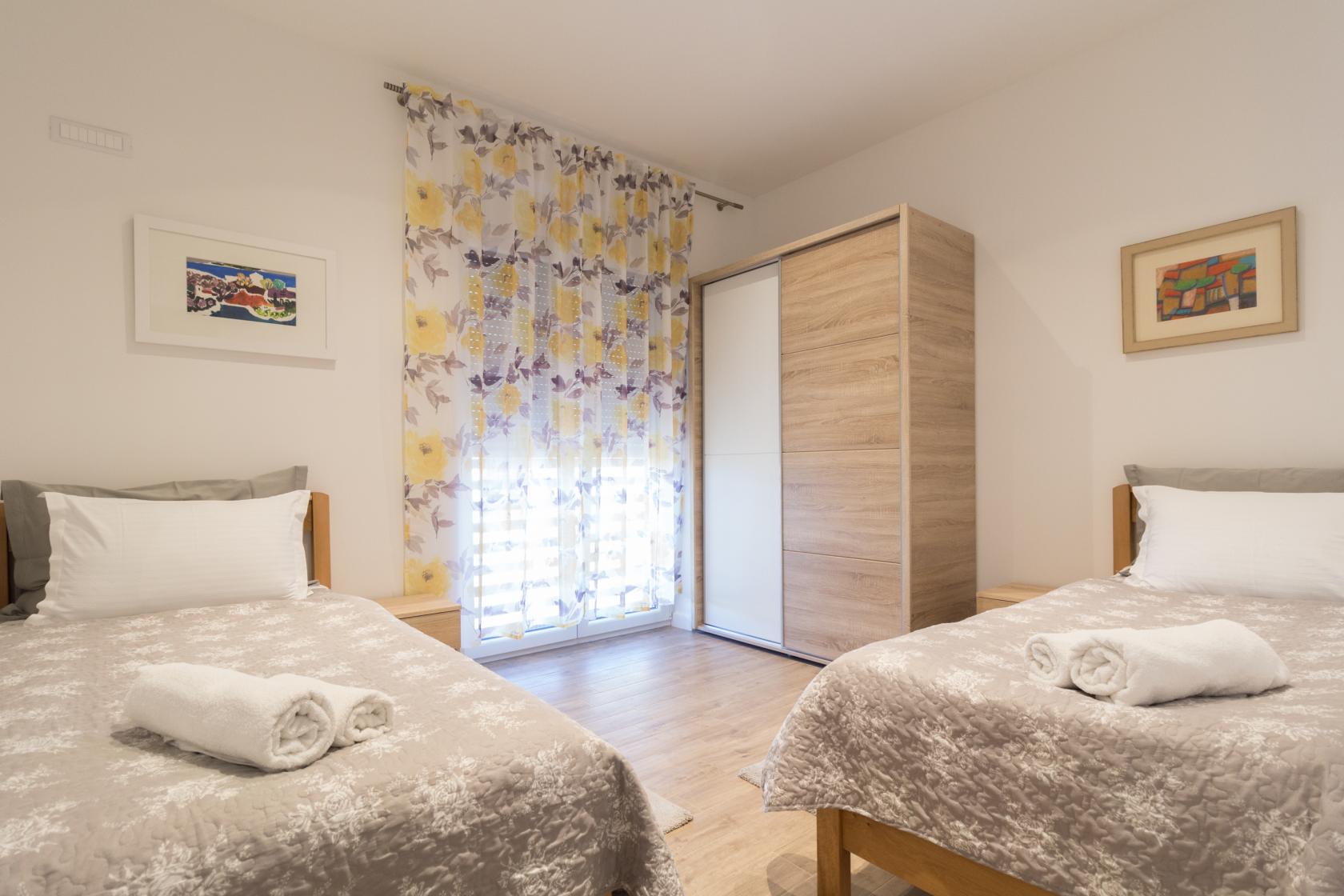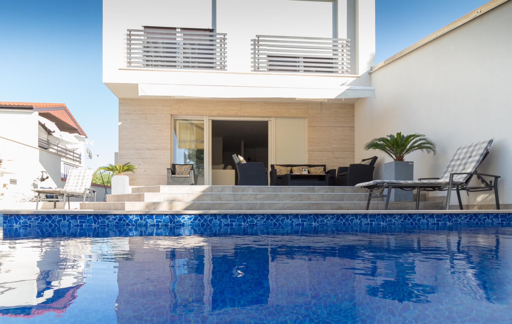 Піщаний пляж і кришталево чисте море розташовані лише за 300 метрів. У пішій доступності — ресторани, кафе та магазини. Любителі активного відпочинку оцінять близькість до школи віндсерфінгу в Ніні, а для екскурсій чудово підійдуть національні парки Крка, Плітвіцькі озера, Корнати та Пакленіца. Задар стане ідеальним варіантом для вечірніх прогулянок, вечері та культурних відкриттів.