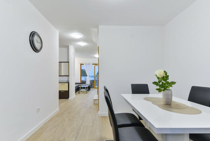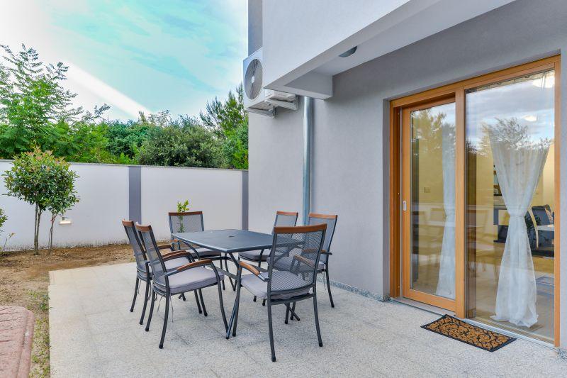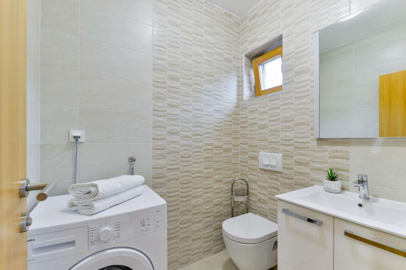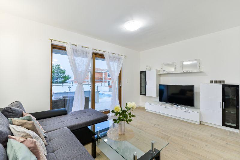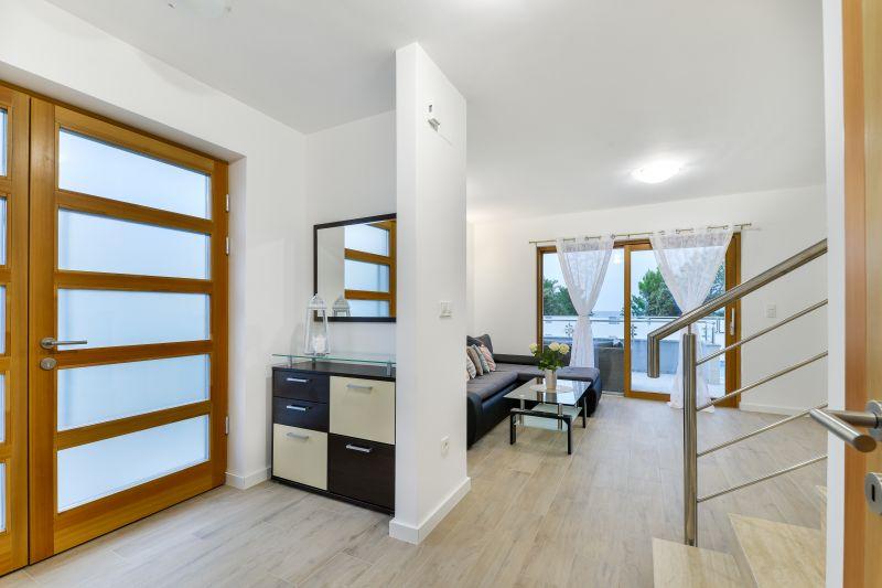 У дворі на гостей чекає приватний басейн, розташований у повністю огородженій зоні, що гарантує спокій, безпеку та відчуття курортної свободи. Особливою родзинкою є дахова тераса з панорамним видом на Адріатичне море — ідеальне місце для ранкової кави, заходів сонця та вечірніх розмов під зоряним небом.