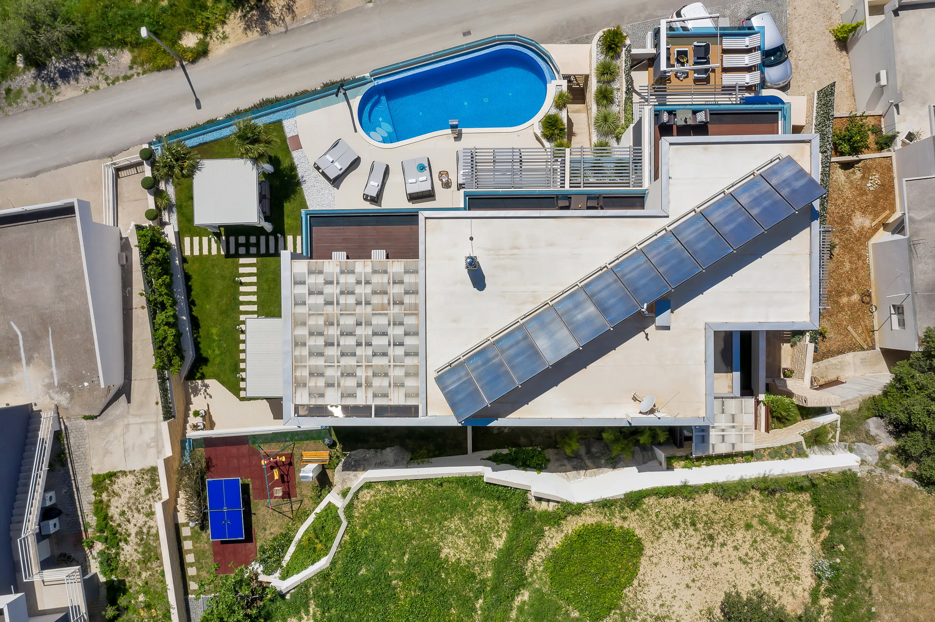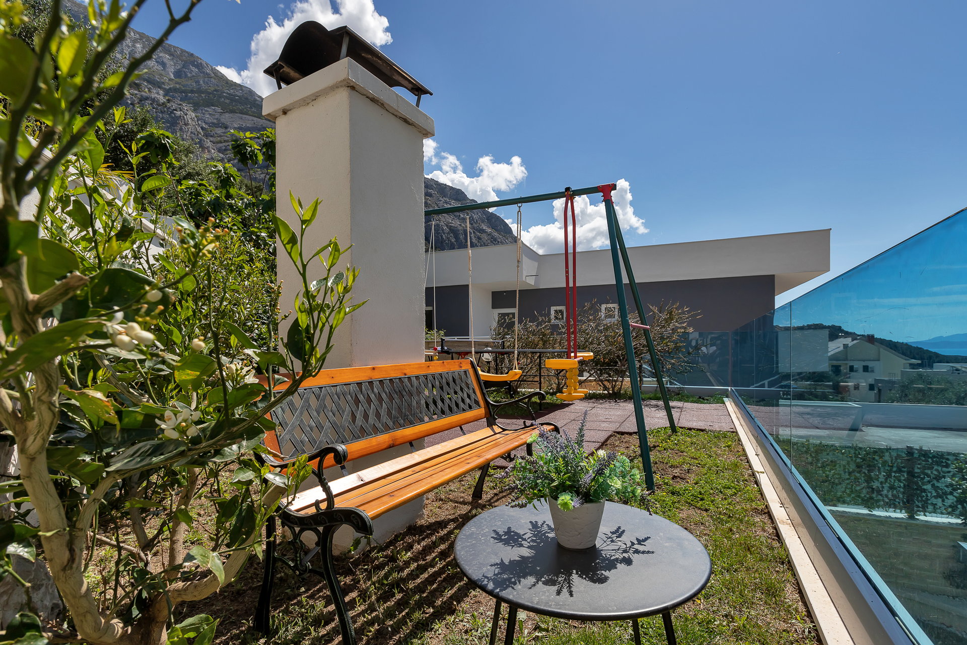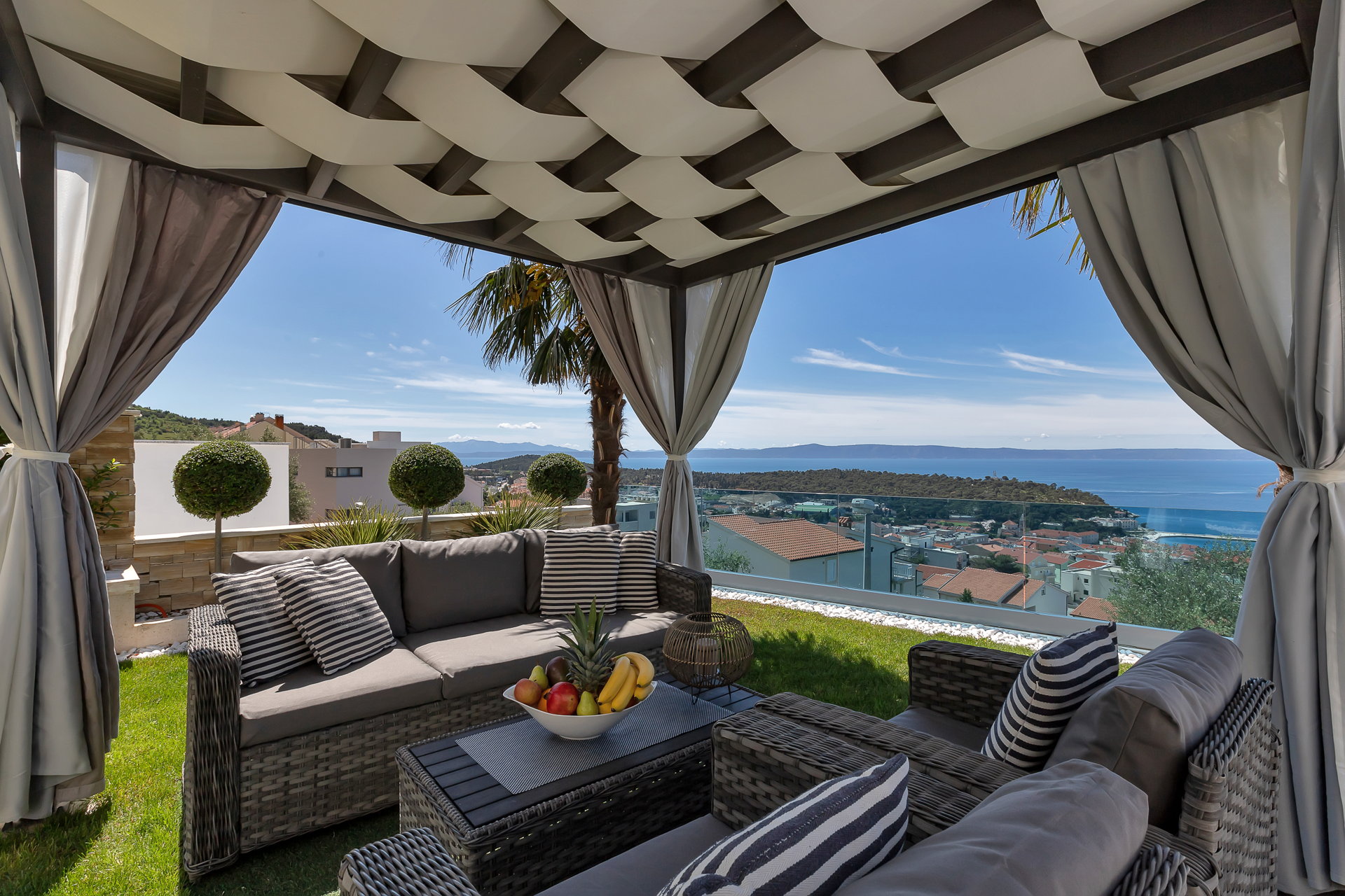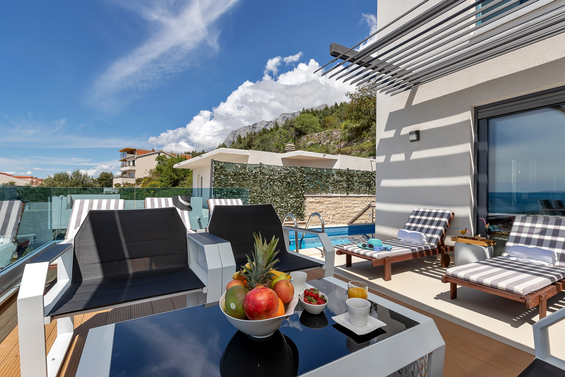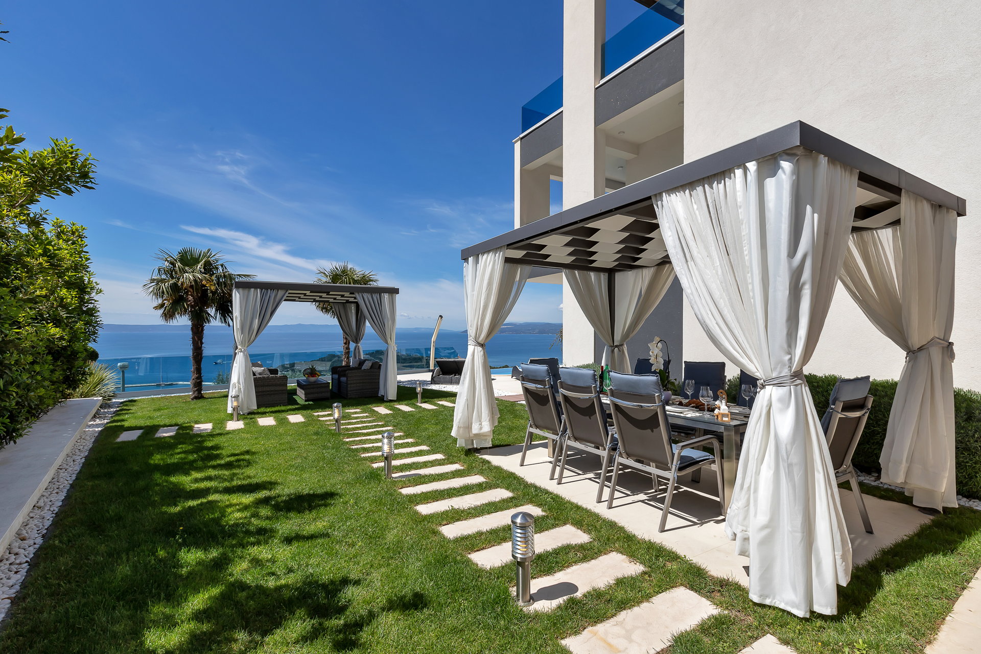 Вілла має кілька великих терас, які дозволяють поєднати приватність і спільний відпочинок.