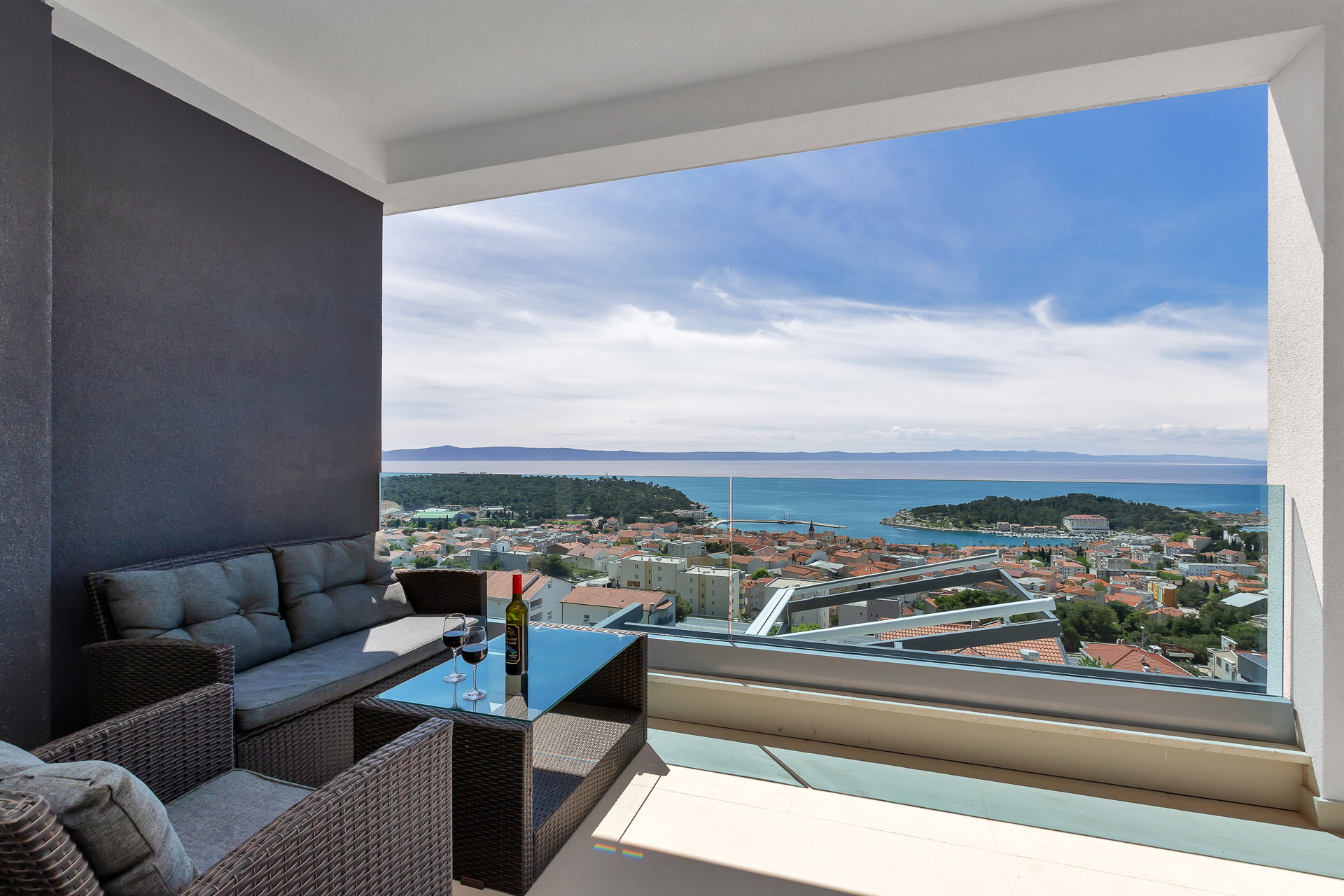 Ця сучасна п’ятизіркова вілла розташована на схилах гірського масиву Біоково над Макарською та пропонує панорамні краєвиди на Адріатичне море та острови Хвар і Брач. Поєднання висоти, простору й продуманої архітектури створює унікальне відчуття приватності, світла та свободи.