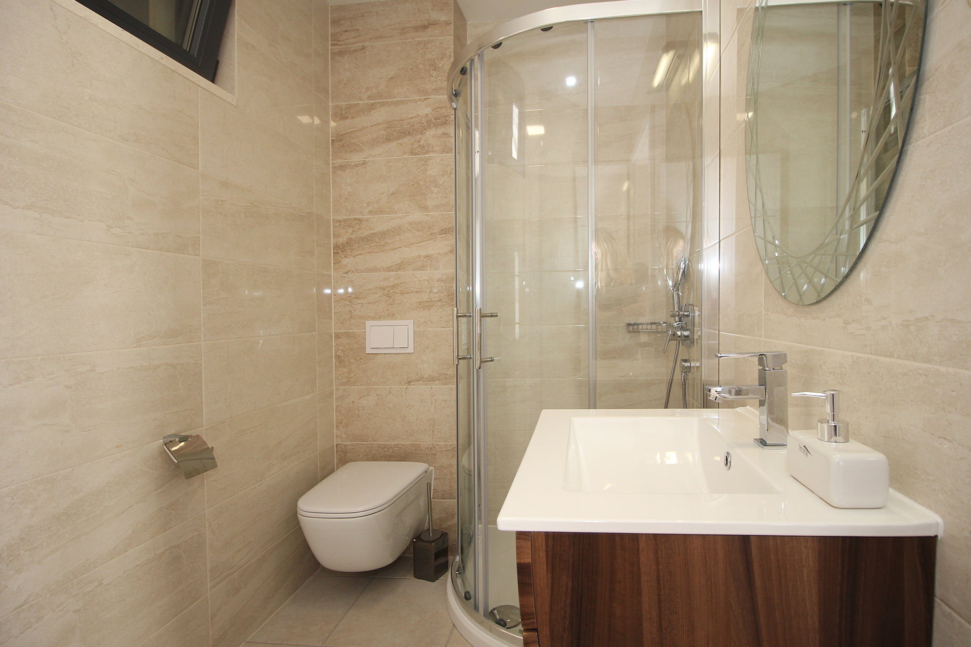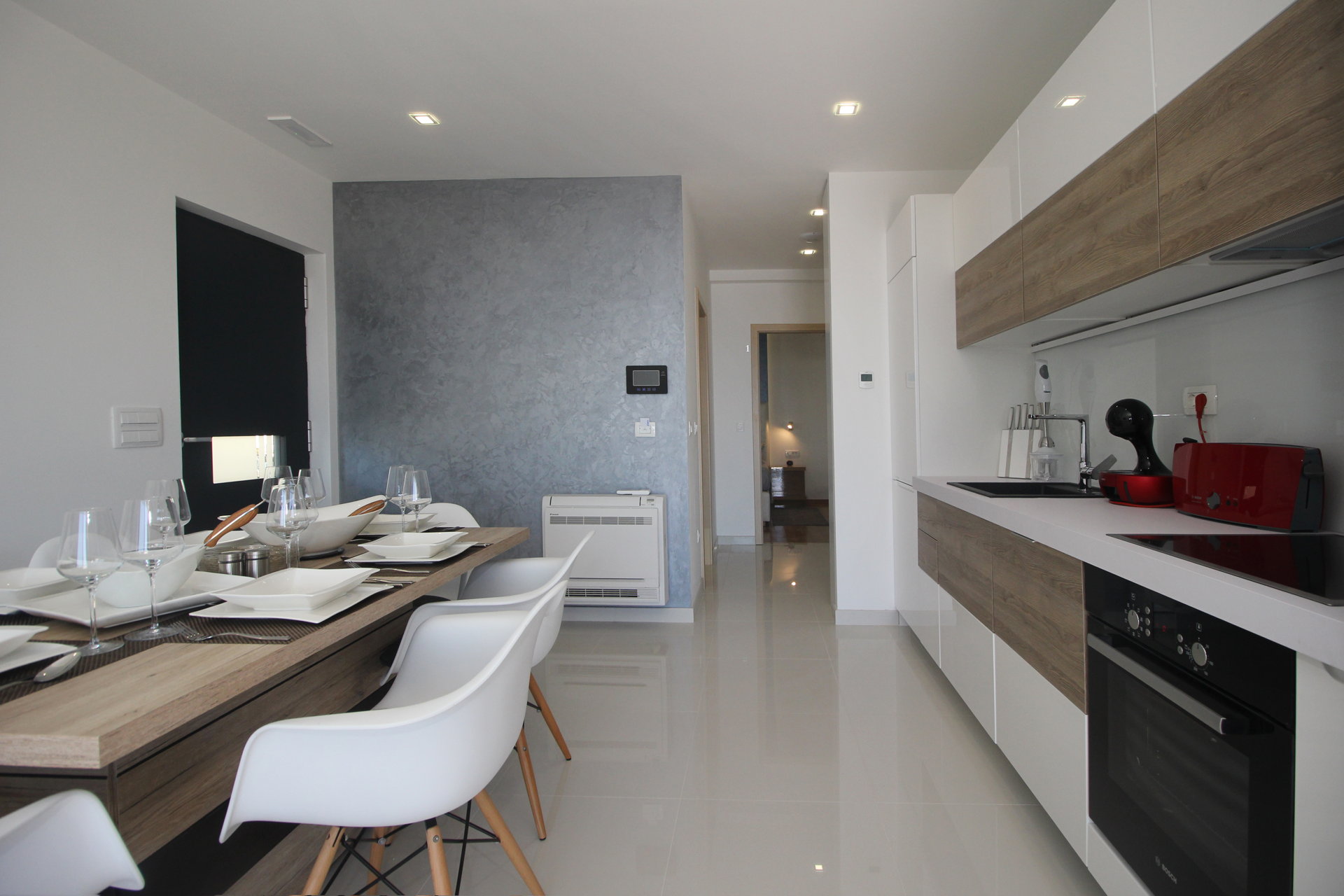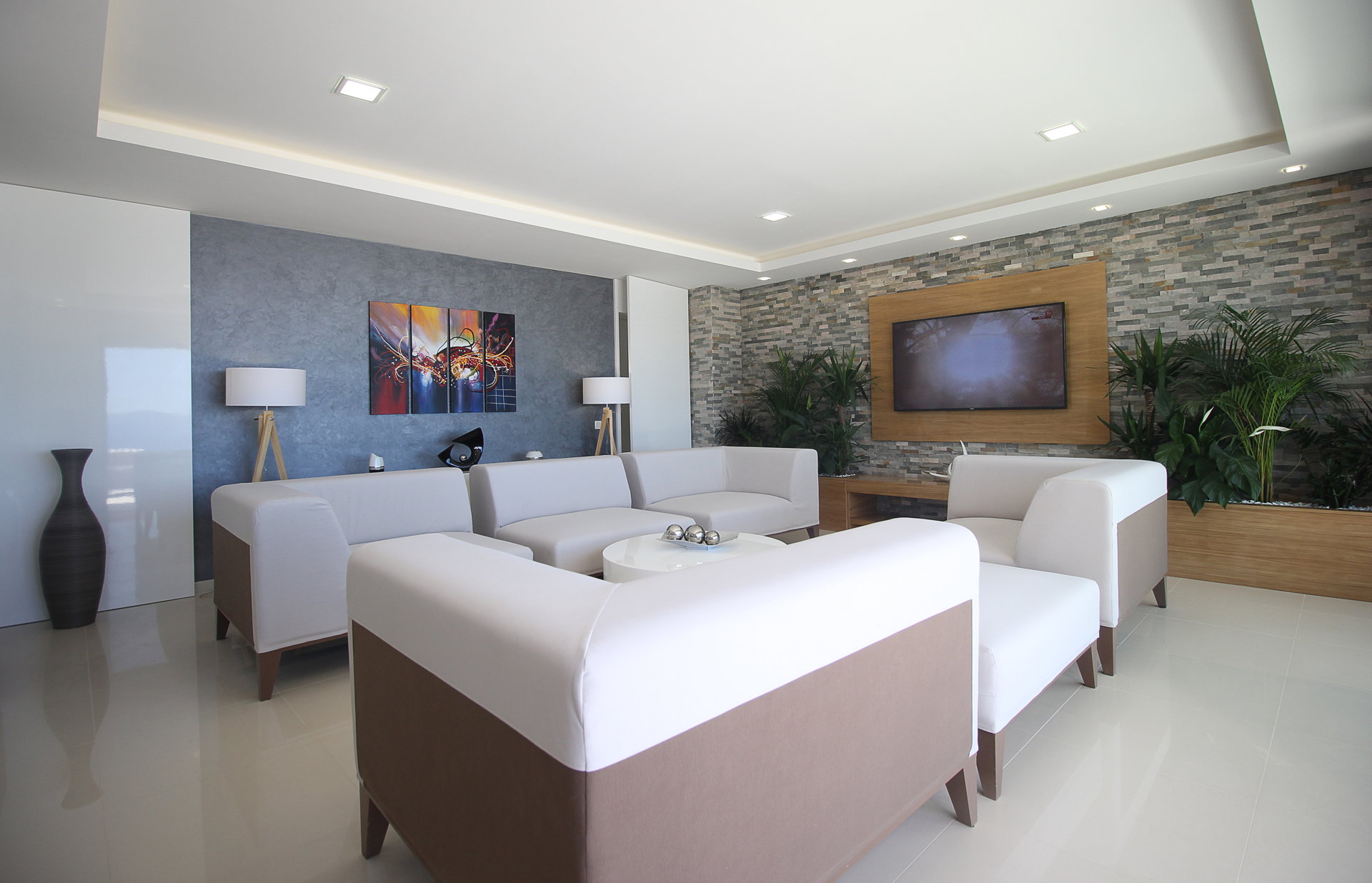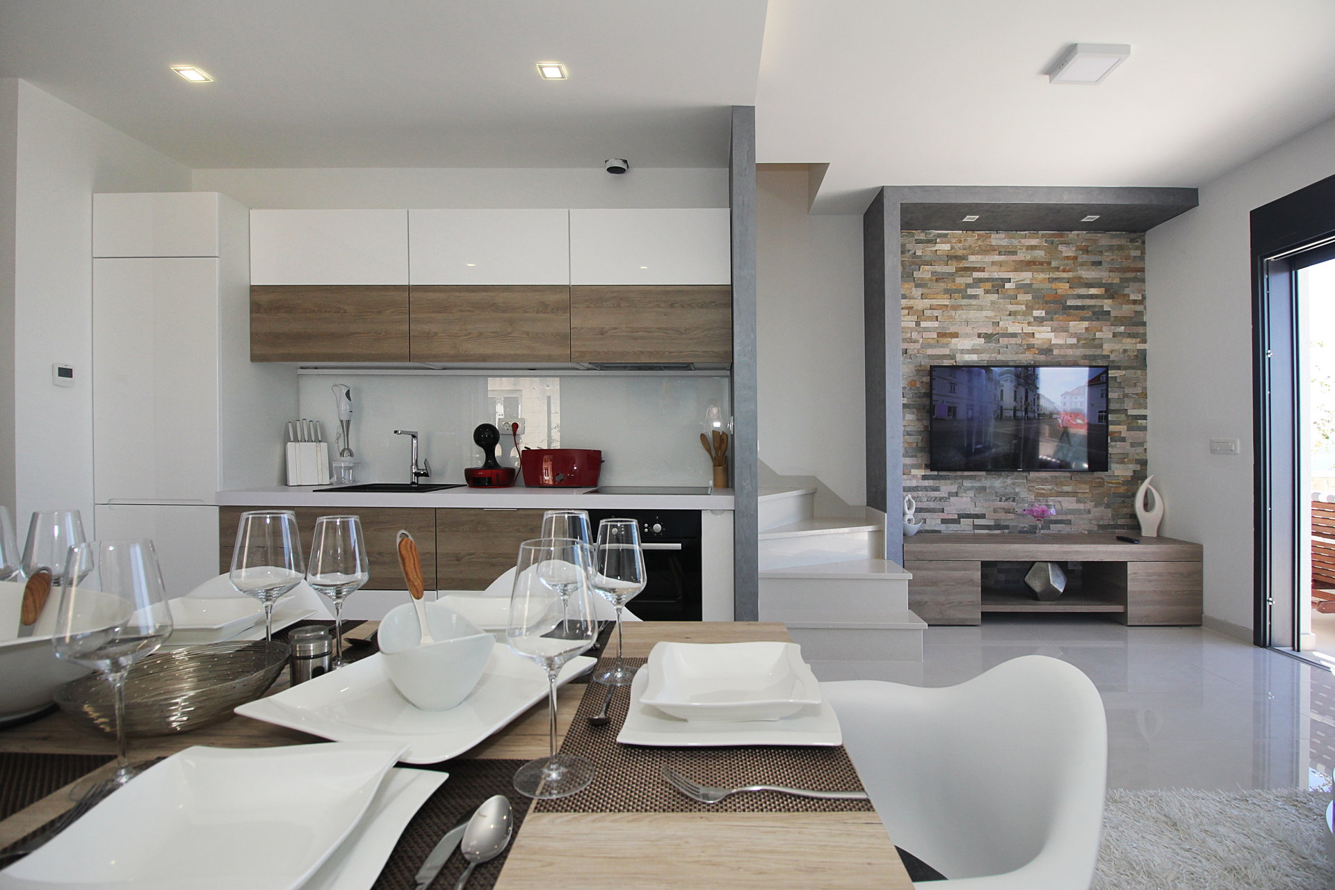 Простора вітальня, стильна кухня та їдальня формують відкриту житлову зону, в центрі якої розташований декоративний фонтан, що створює спокійну, релаксуючу атмосферу.