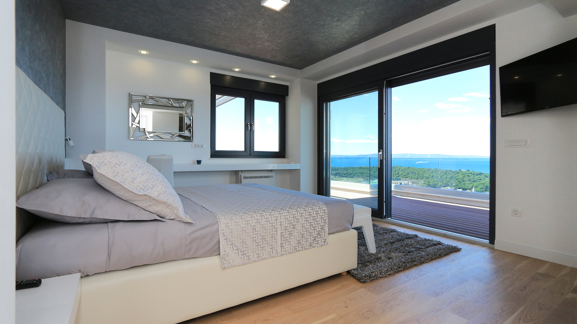 У віллі 7 просторих спалень та 8 ванних кімнат, що дозволяє кожному гостю мати власний простір. Великі панорамні вікна наповнюють інтер’єр світлом і відкривають краєвиди на море з більшості приміщень.