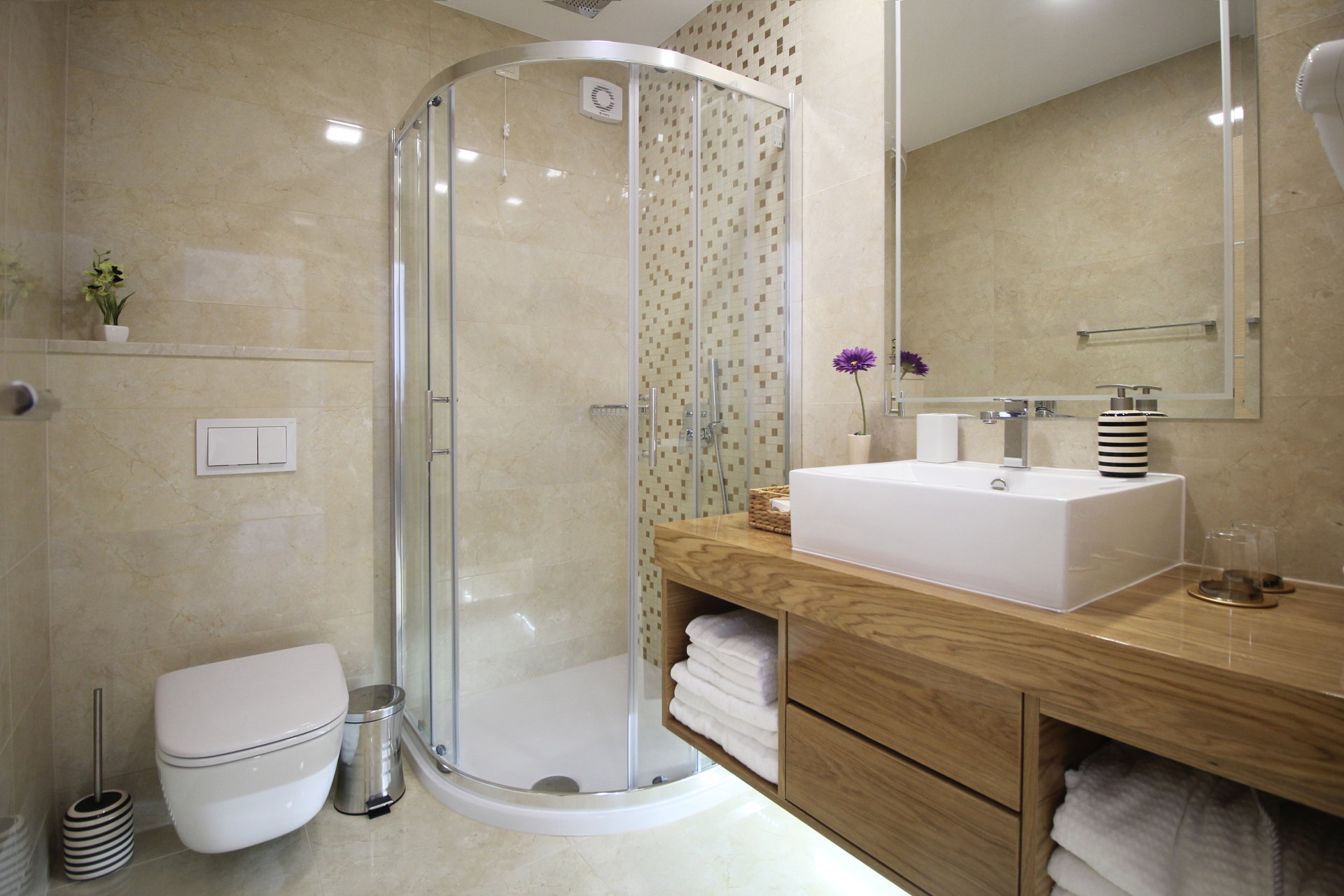 Вілла розташована у пішій доступності до центру Макарської, ресторанів, магазинів і пляжів. Водночас дорога назад іде вгору, тому для сімей з маленькими дітьми або гостей, які не люблять підйомів, доцільно користуватись таксі чи автомобілем.