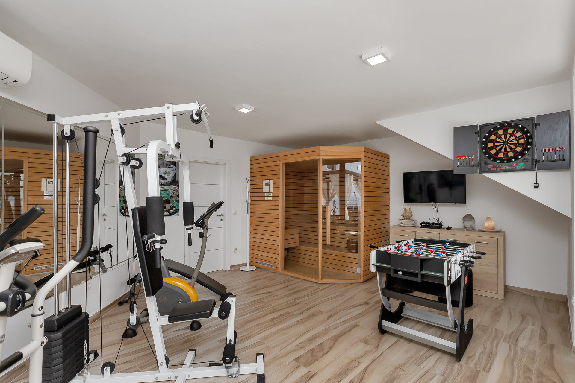 Триповерхова будівля площею 450 м² ідеально підходить для великих сімей, компаній друзів та груп до 14 гостей, забезпечуючи комфорт, тишу й водночас багато зон для спільного відпочинку.