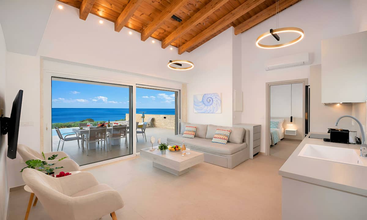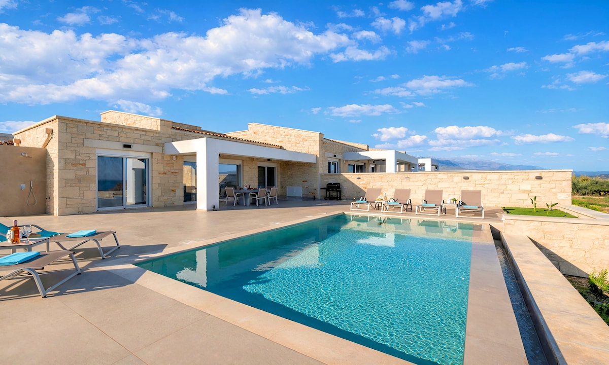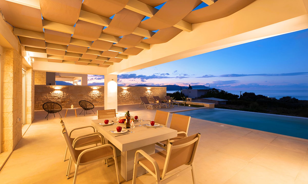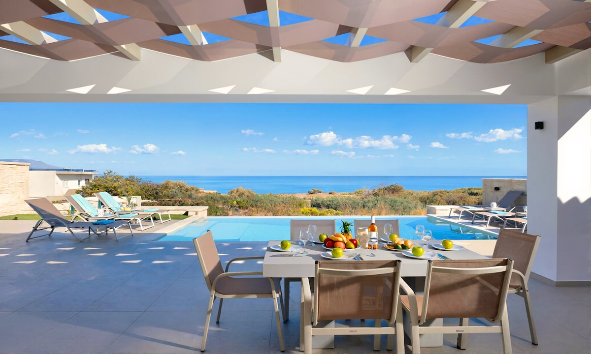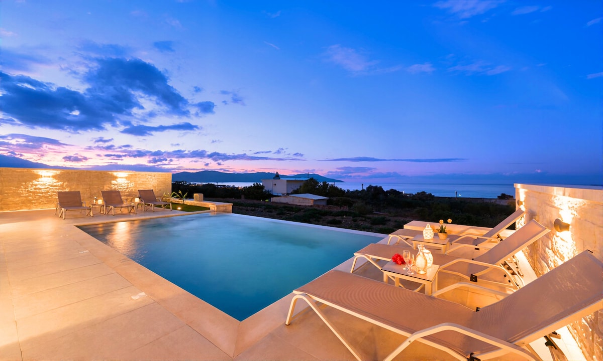 Ця сучасна вілла розташована над кришталево чистими водами Критського моря, серед недоторканої природи Криту. Локація створює відчуття абсолютної приватності, простору та спокою, де кожен день починається з панорамних морських краєвидів і завершується теплими заходами сонця над горизонтом.