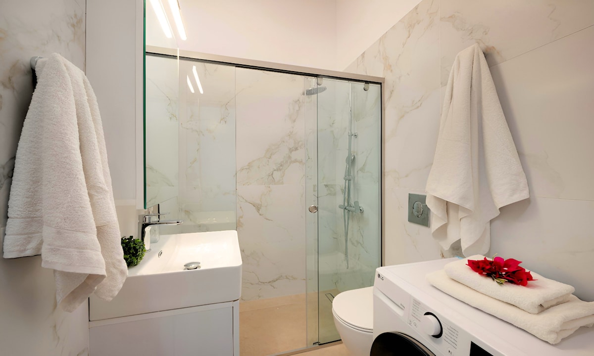 Вілла повністю кондиціонована, обладнана Wi-Fi, Smart TV, пральною та сушильною машинами, сейфом, дитячим ліжечком і стільчиком. Регулярне прибирання з заміною рушників і постільної білизни проводиться кожні 3–4 дні. Приватна парковка розташована безпосередньо на території.