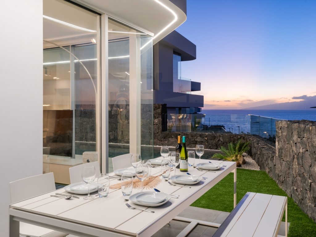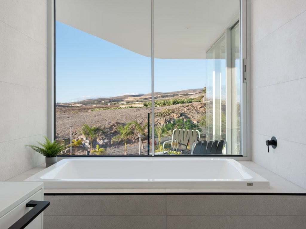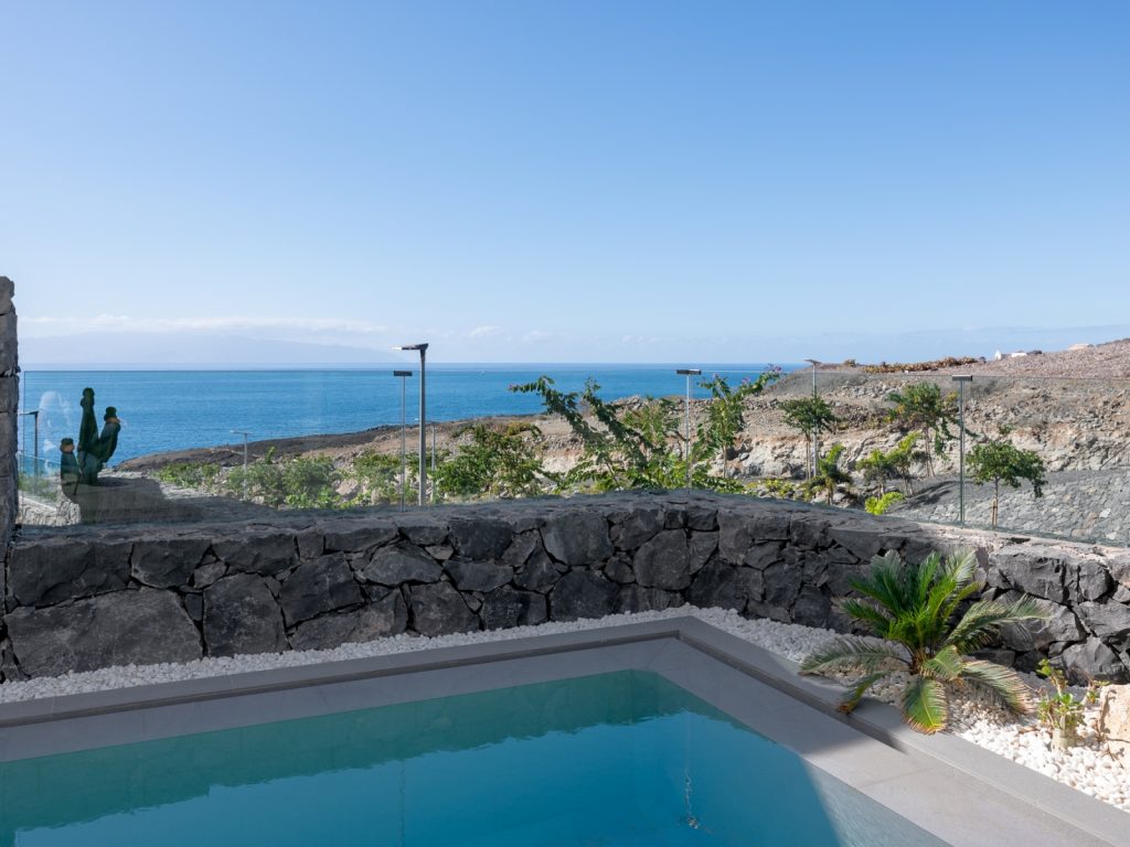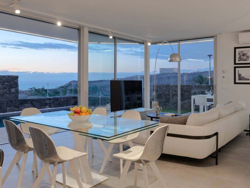Площа будинку становить близько 300 м². Вілла розрахована на розміщення до 8 гостей і має три основні спальні, а також окрему кімнату з двоспальним диваном-ліжком. Усього передбачено три ванні кімнати та додатковий гостьовий санвузол. Інтер’єр витриманий у стриманому сучасному стилі: простір наповнений світлом, а великі вікна відкривають види на океан і узбережжя Коста-Адехе.