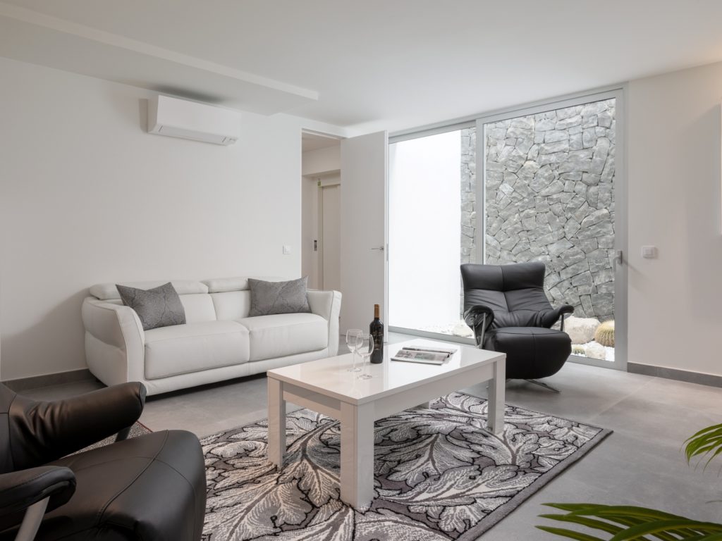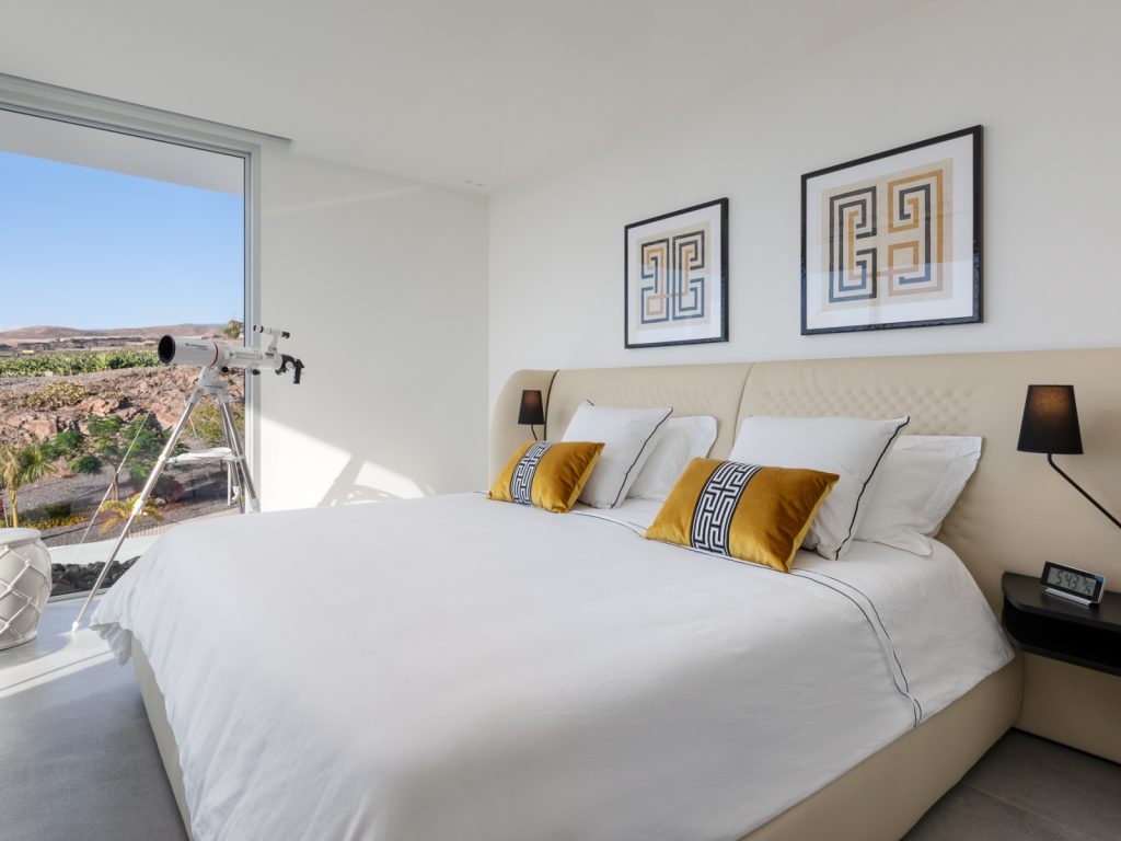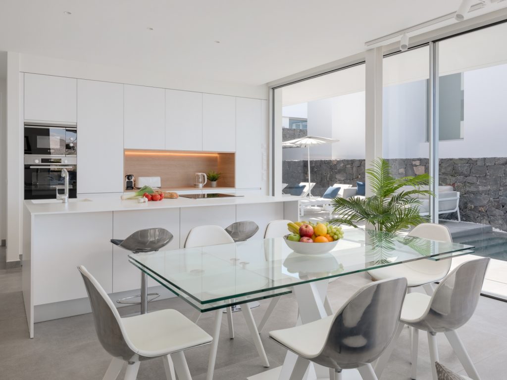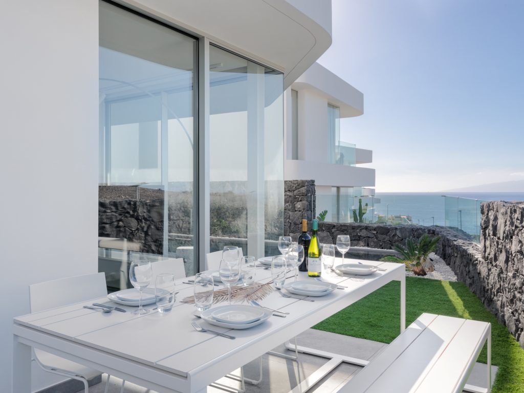 Площа будинку становить близько 300 м². Вілла розрахована на розміщення до 8 гостей і має три основні спальні, а також окрему кімнату з двоспальним диваном-ліжком. Усього передбачено три ванні кімнати та додатковий гостьовий санвузол. Інтер’єр витриманий у стриманому сучасному стилі: простір наповнений світлом, а великі вікна відкривають види на океан і узбережжя Коста-Адехе.