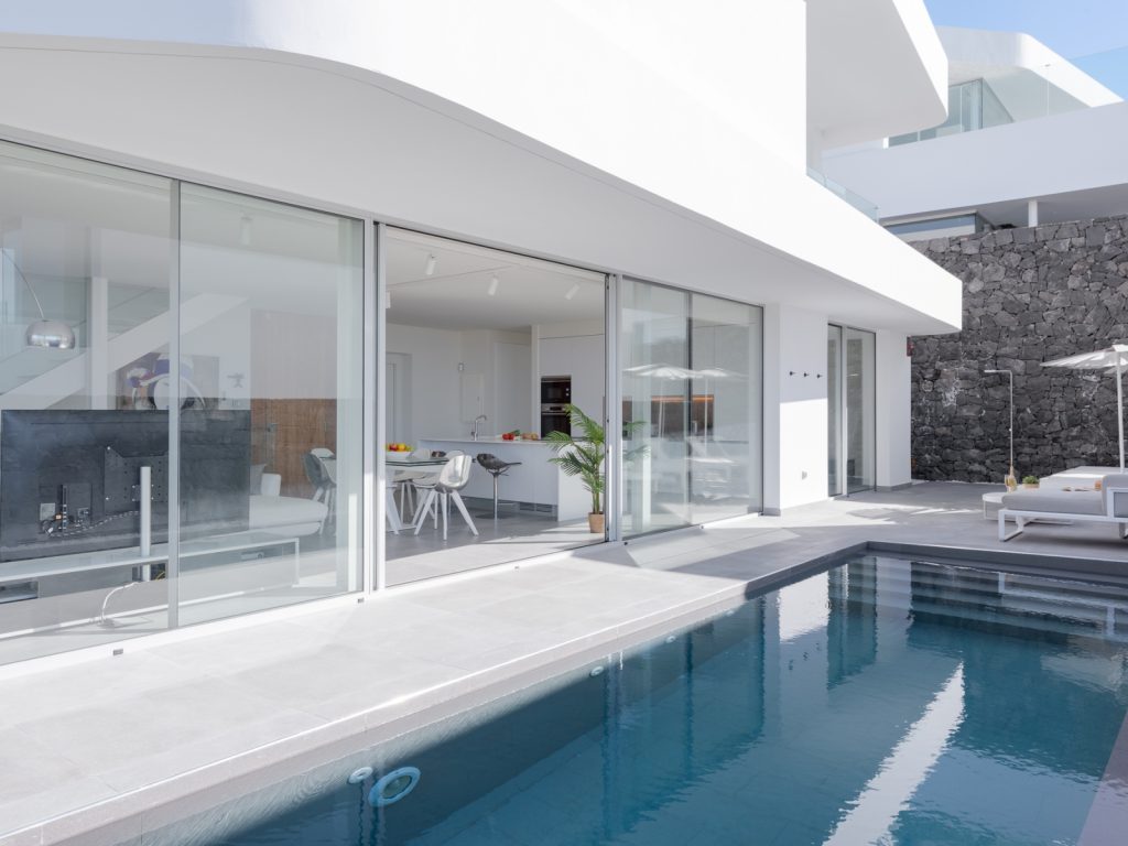 Ця сучасна вілла розташована на півдні Тенерифе, у районі Коста-Адехе, неподалік узбережжя. Просторий будинок із мінімалістичною архітектурою створений для спокійного відпочинку, де поєднуються сучасний дизайн, природні матеріали та продуманий комфорт.