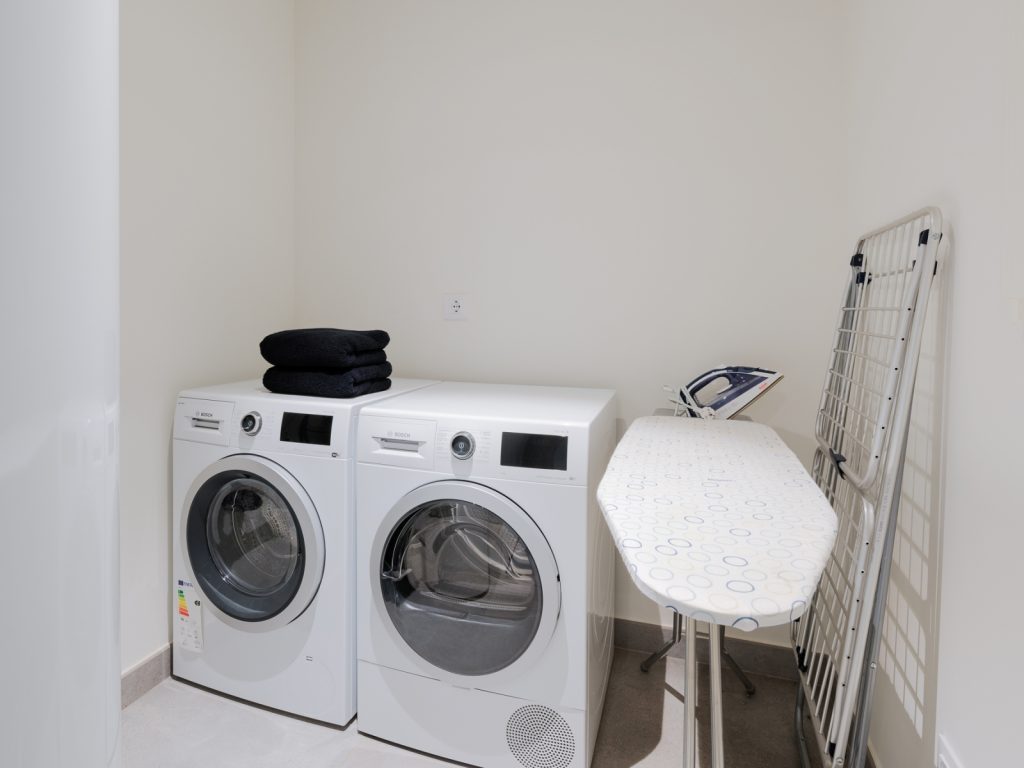 Для комфорту гостей передбачено безкоштовний Wi-Fi, кондиціонування у кожному приміщенні, Smart TV 65”, пральну та сушильну машину, фен, праску з дошкою, а також повністю обладнану кухню з кавоваркою та чайною станцією. У будинку є ліфт, що забезпечує зручний доступ між усіма поверхами. Також доступний приватний паркінг.