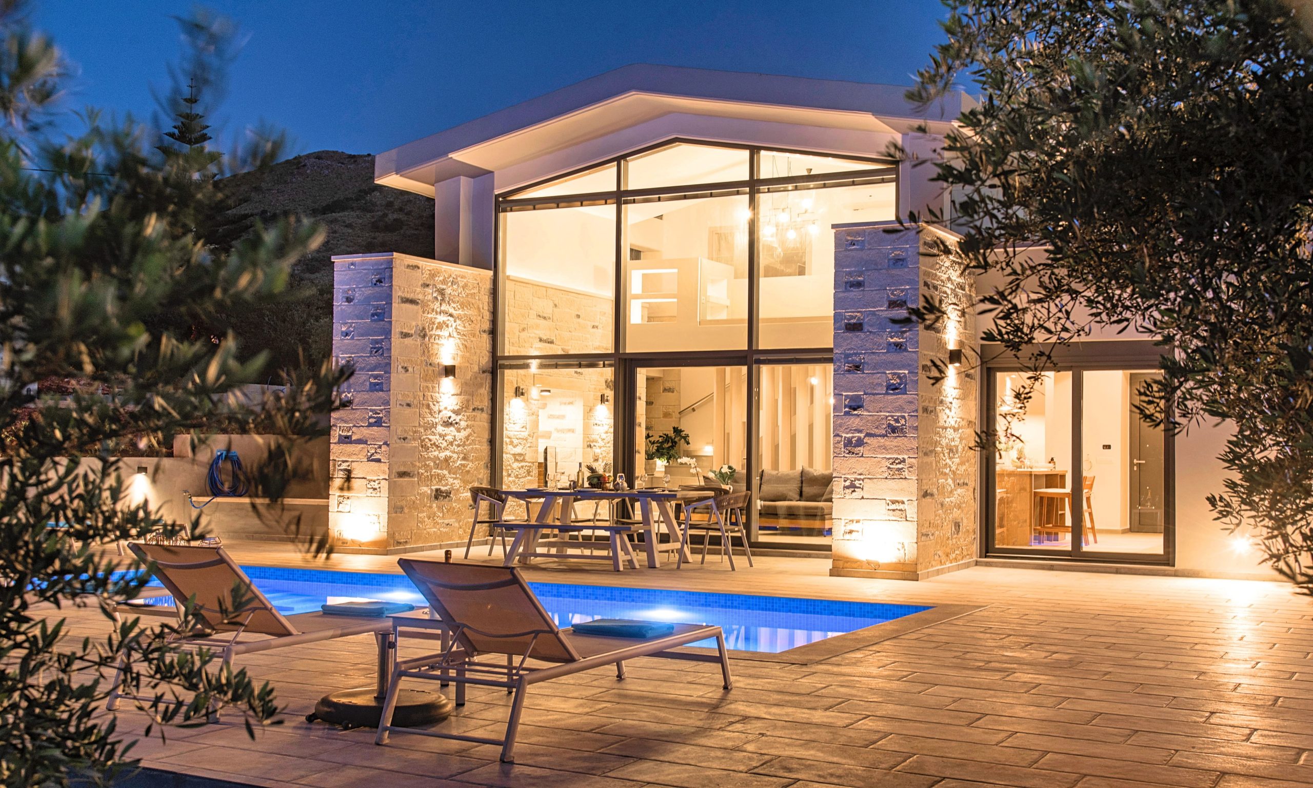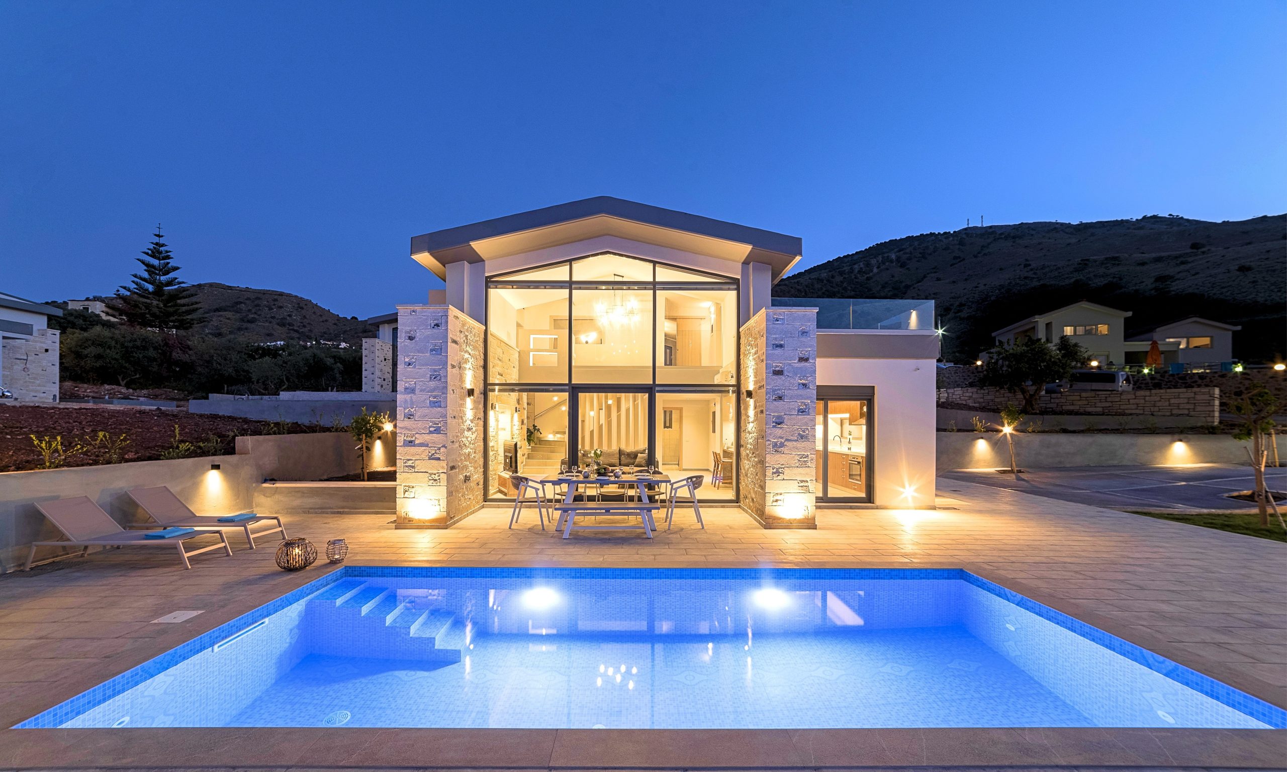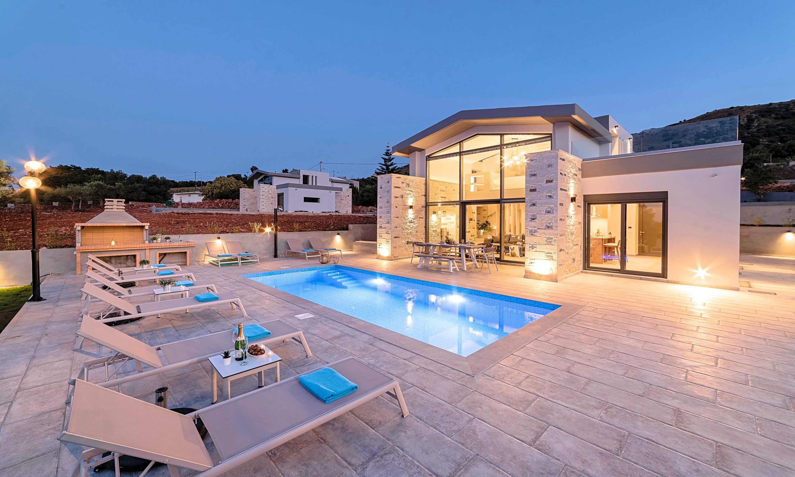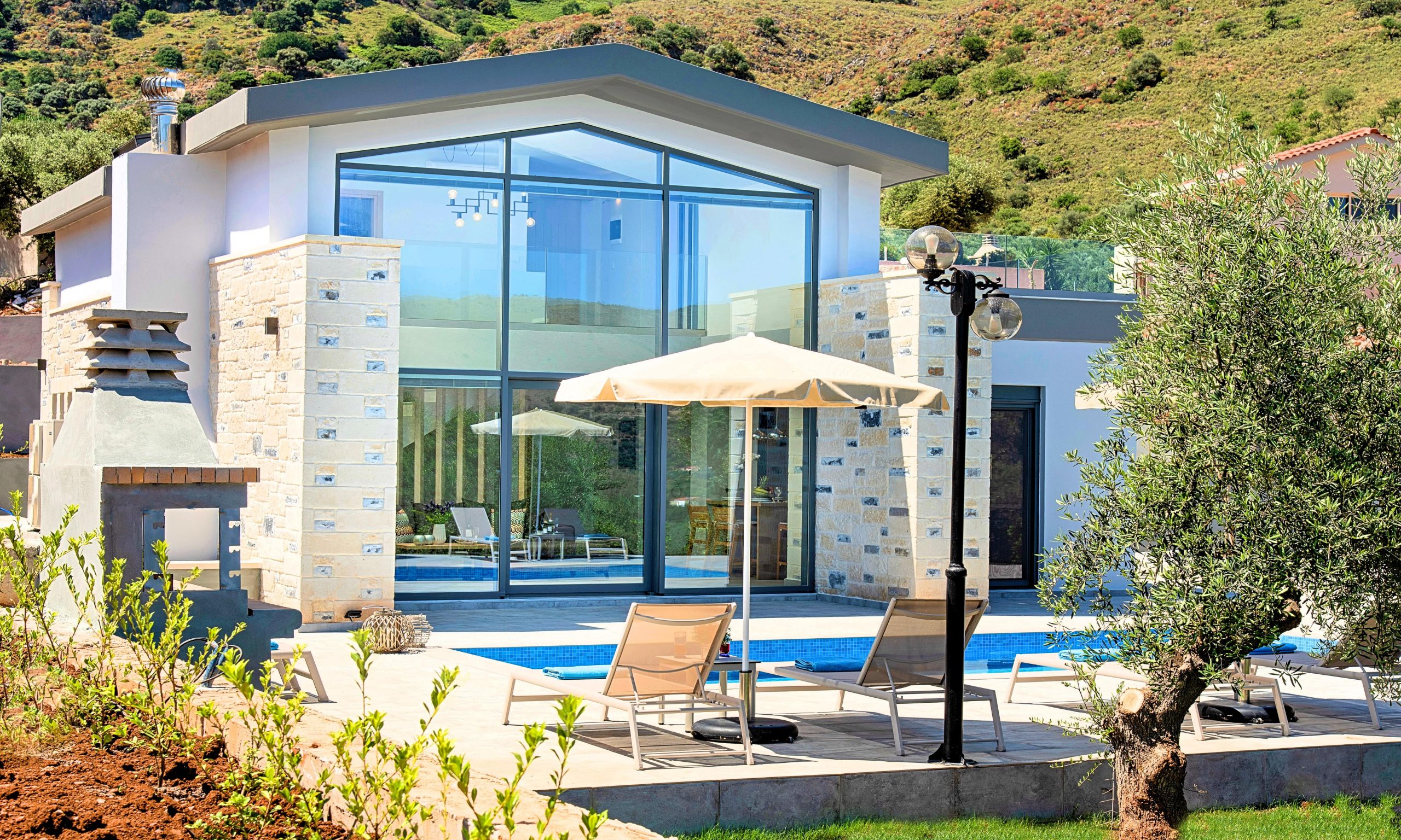 Розташована серед оливкового гаю над піщаним узбережжям, ця вілла дарує відчуття усамітнення, гармонії з природою та захоплюючі панорамні краєвиди на Критське море. Архітектура комплексу створена амфітеатрально, завдяки чому з кожної точки відкривається мальовничий вид, а простір наповнений світлом і середземноморською атмосферою.
