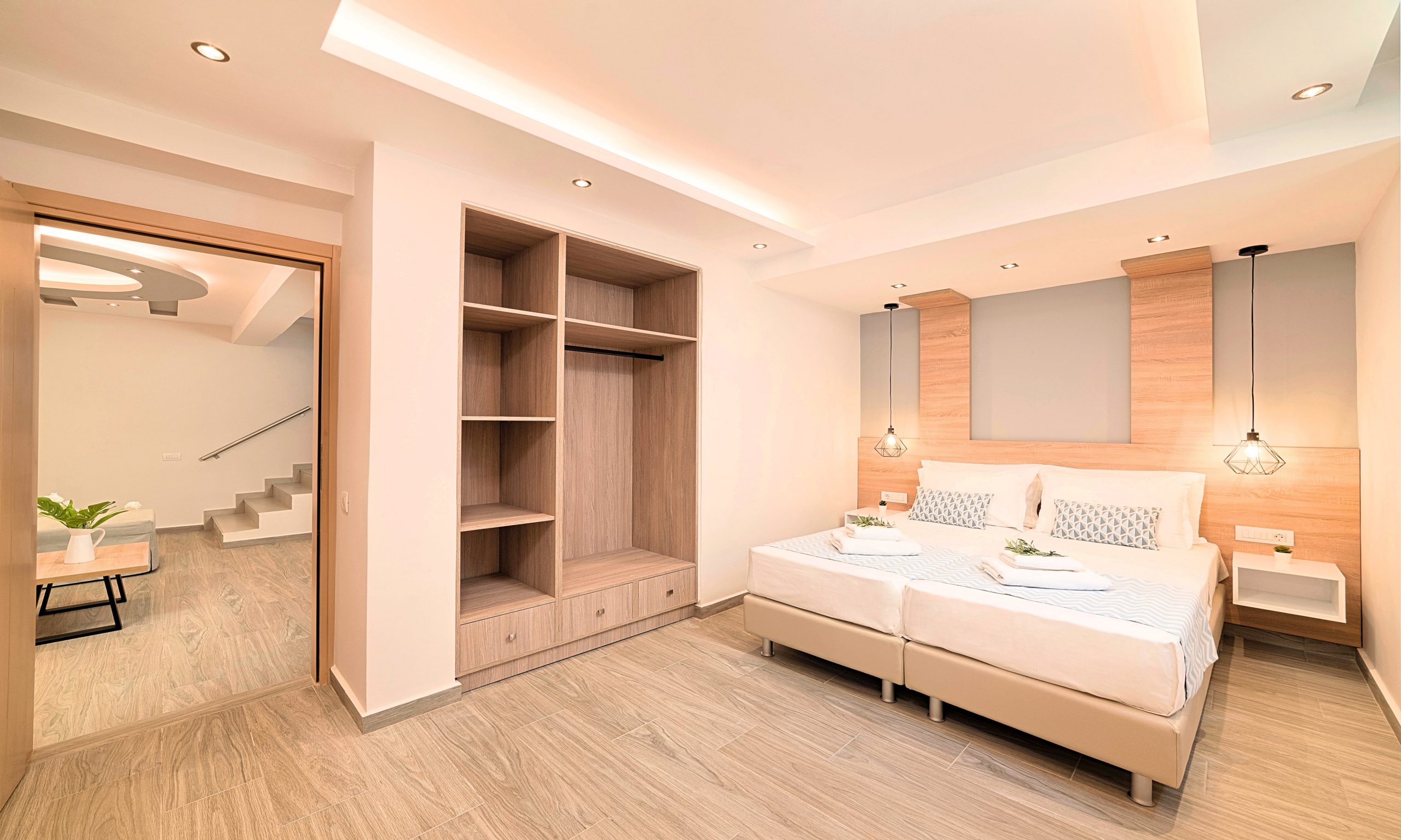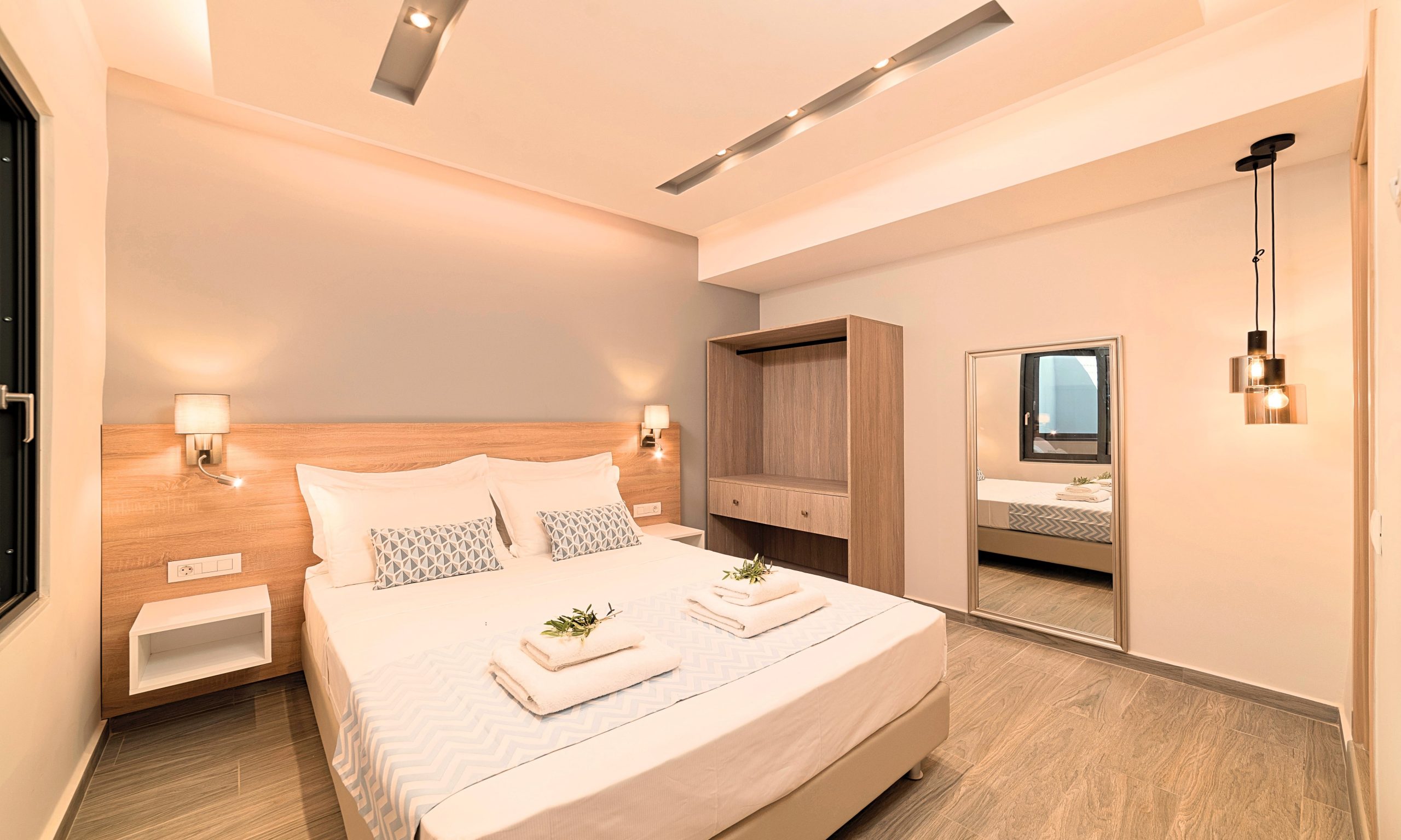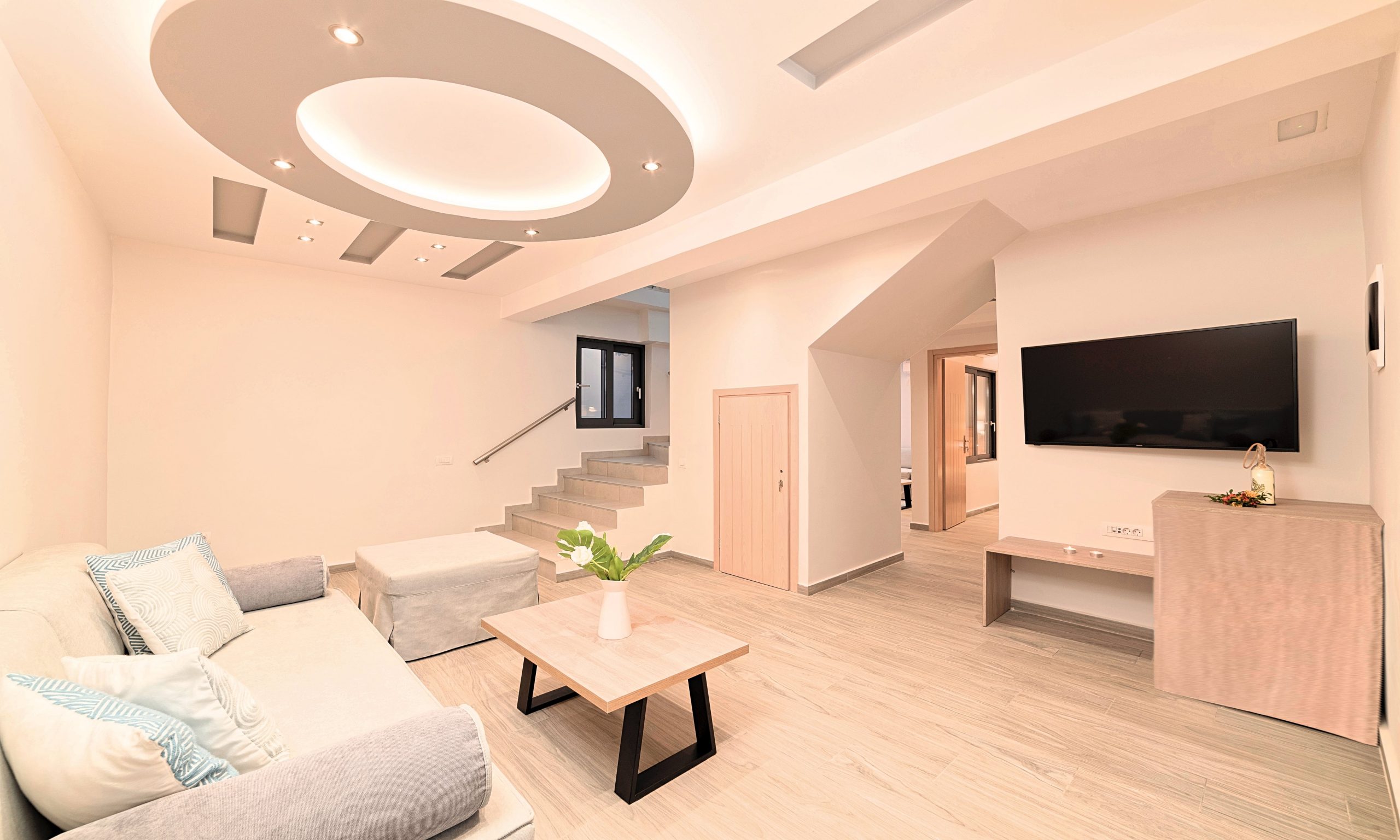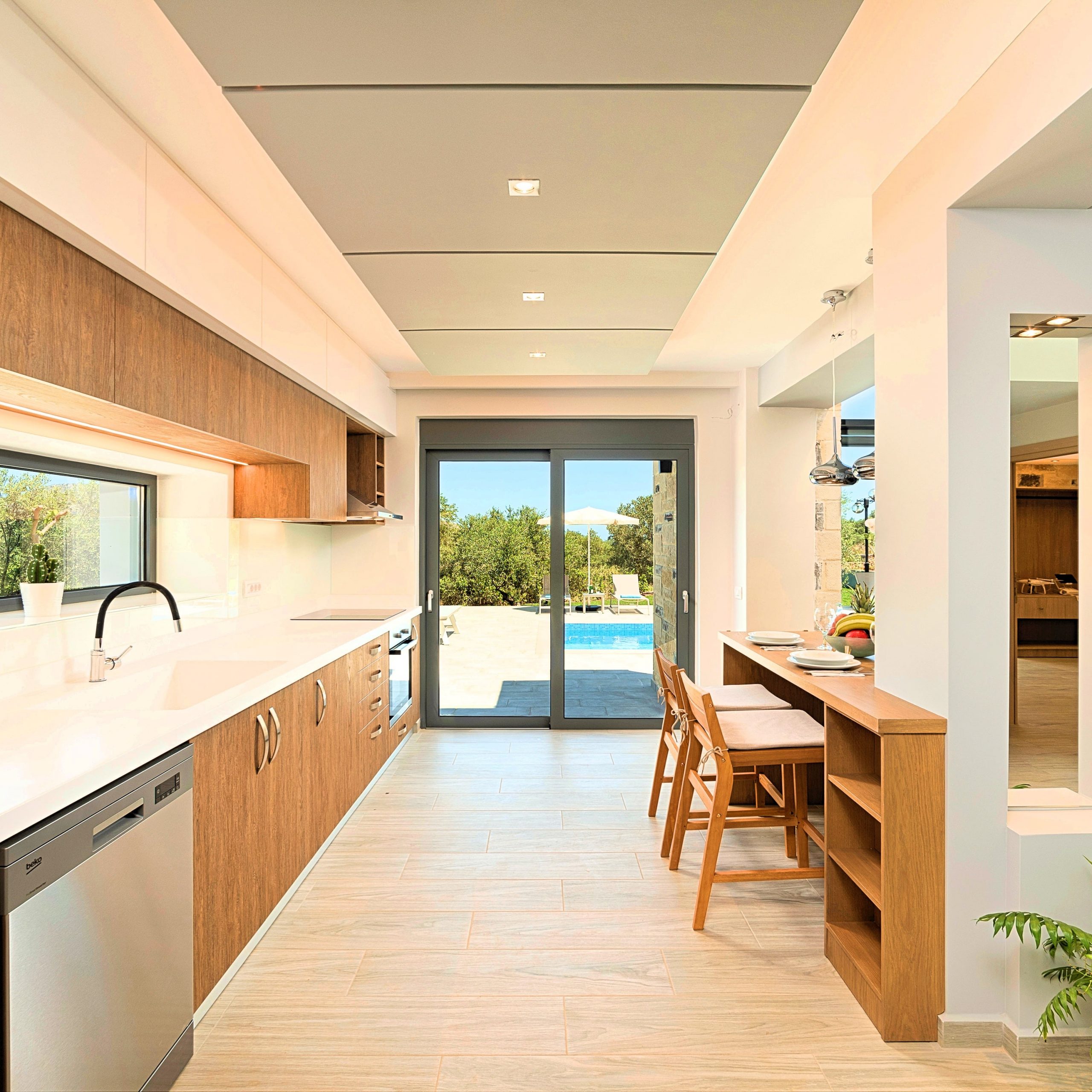 Розташована серед оливкового гаю над піщаним узбережжям, ця вілла дарує відчуття усамітнення, гармонії з природою та захоплюючі панорамні краєвиди на Критське море. Архітектура комплексу створена амфітеатрально, завдяки чому з кожної точки відкривається мальовничий вид, а простір наповнений світлом і середземноморською атмосферою.