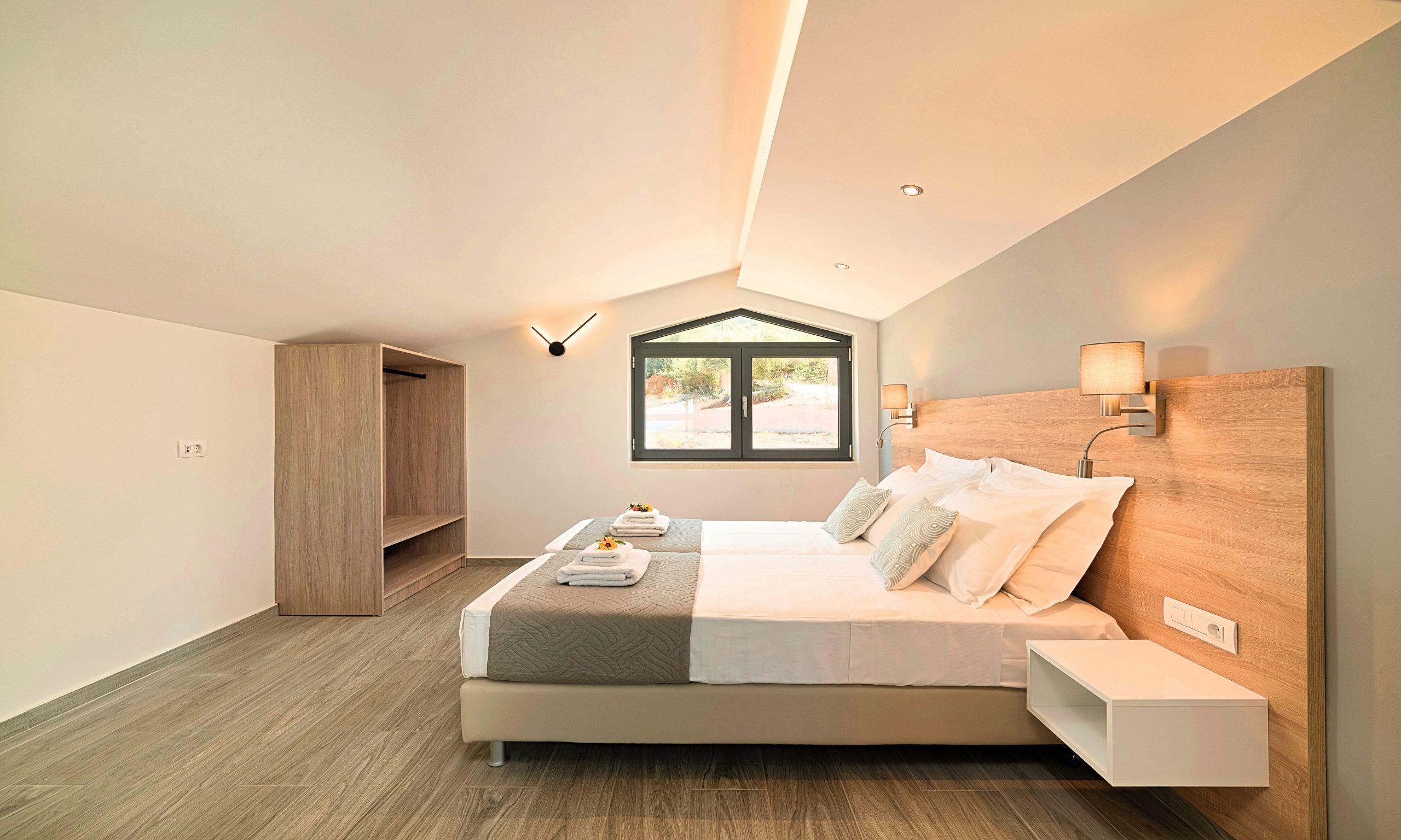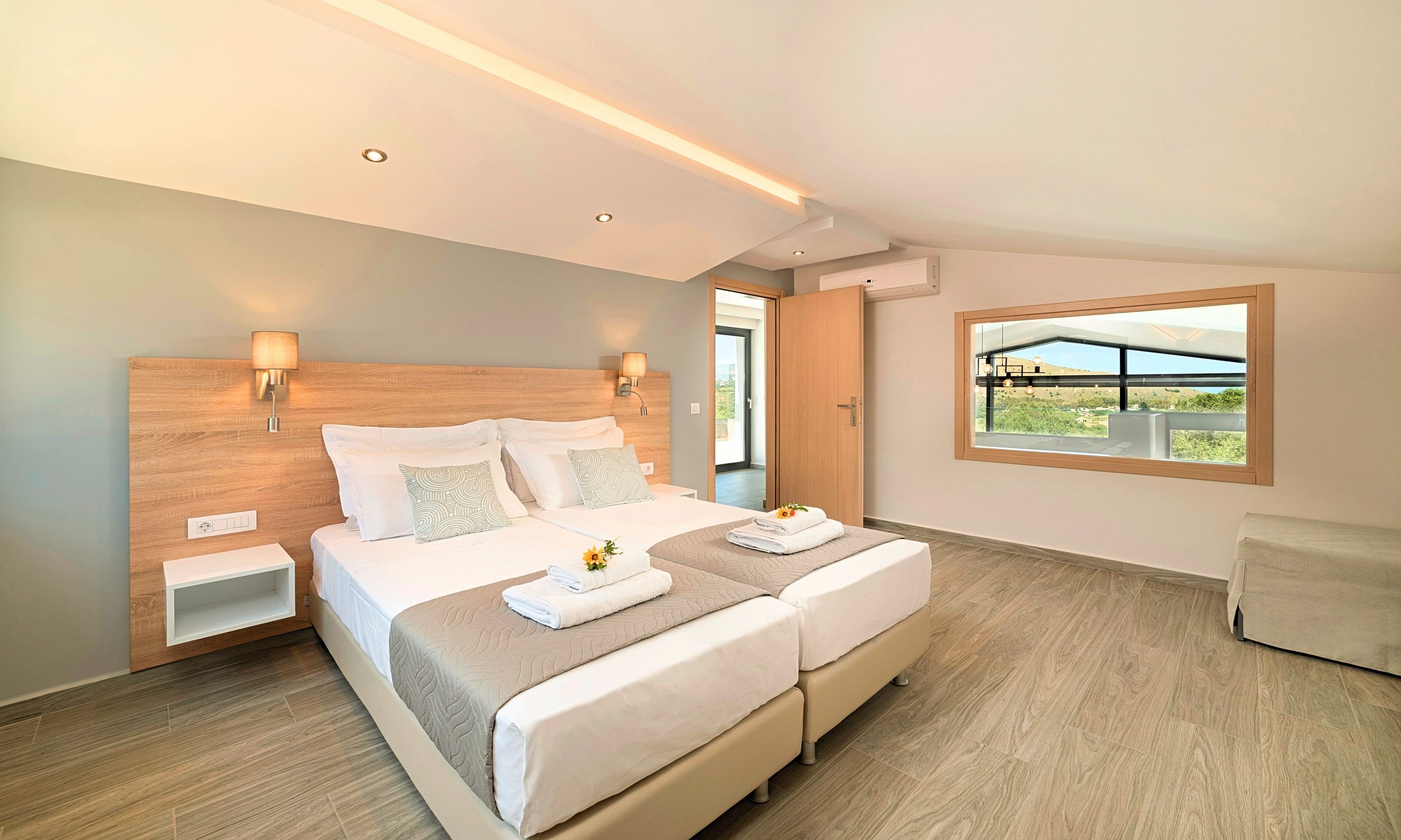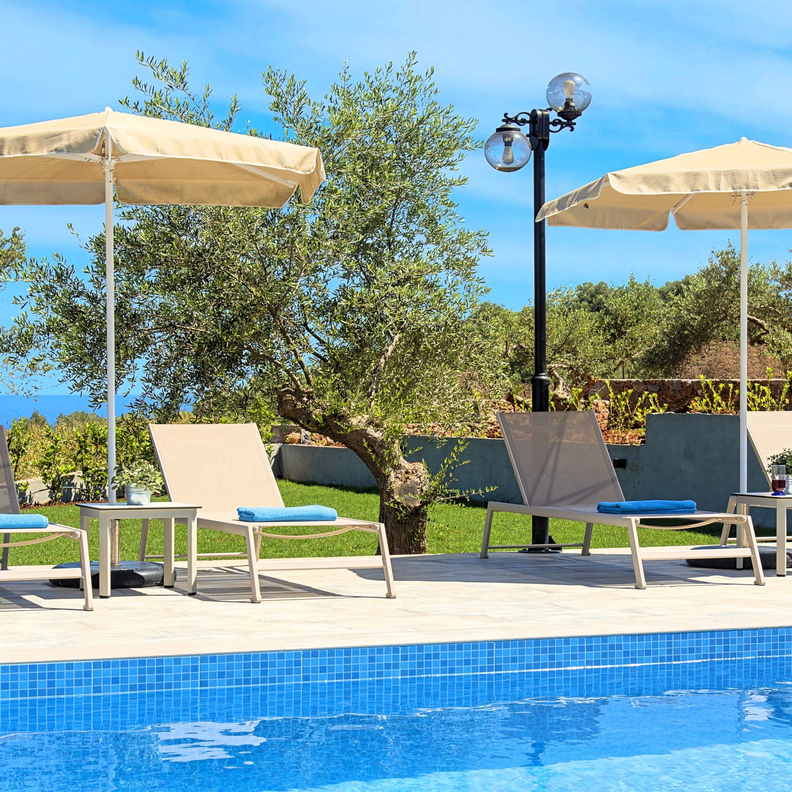 Відкриті тераси та басейн з підігрівом відкривають краєвиди на море, створюючи ідеальне місце для відпочинку під сонцем або вечірніх зустрічей. Серед зелені оливкового гаю легко відчути повну тишу та гармонію.