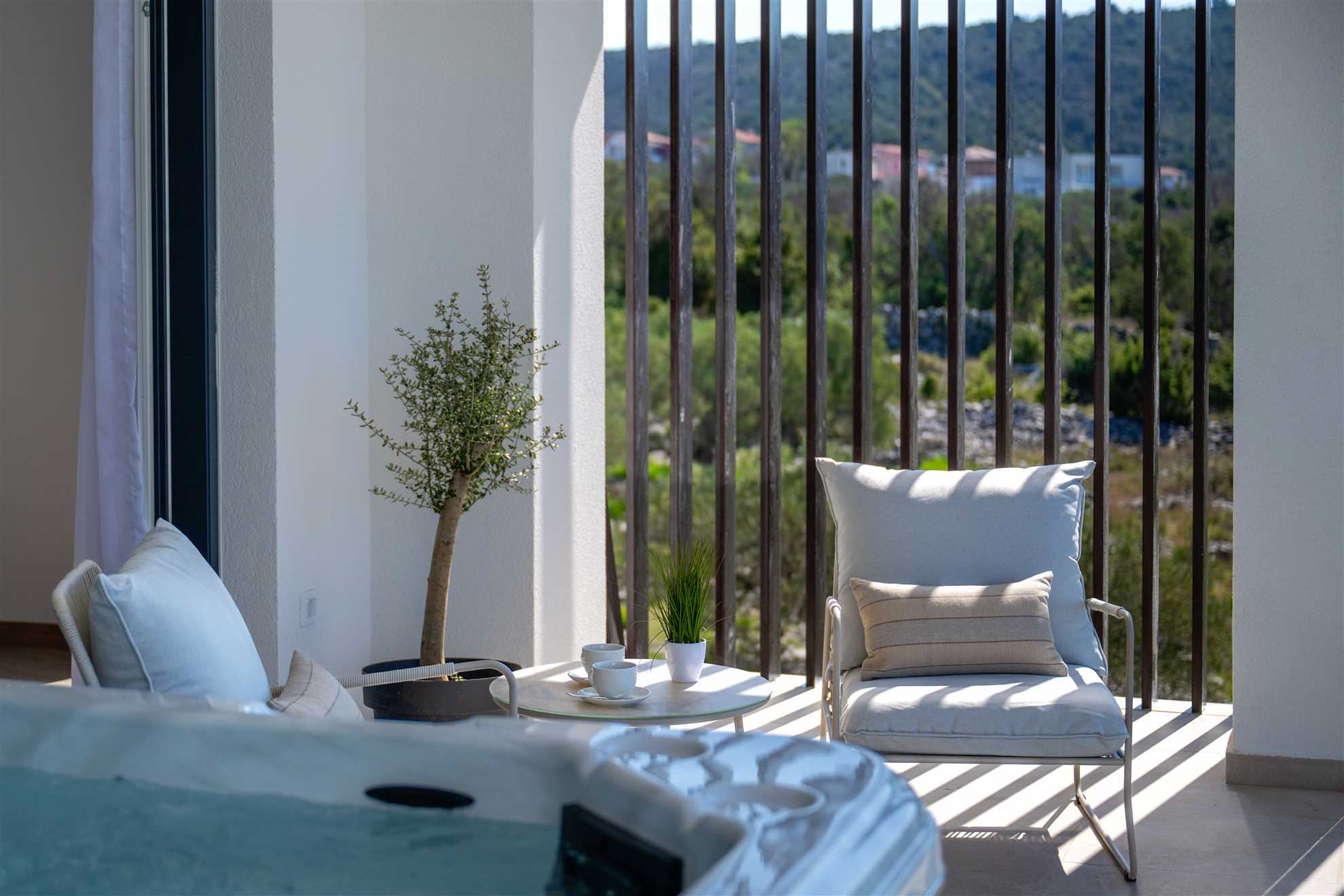 • Спальня 3: двоспальне ліжко, ванна кімната en-suite, балкон, вид на море