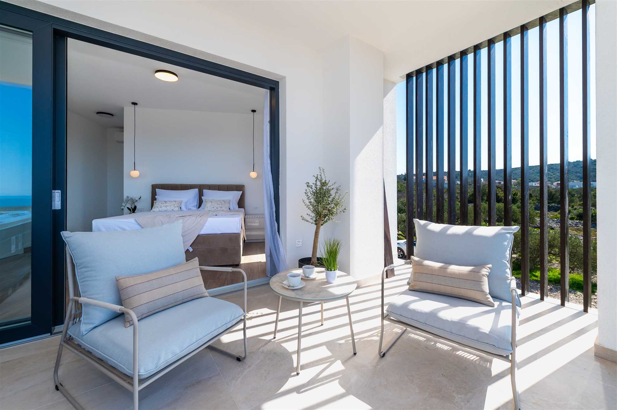 • Спальня 4: king-size ліжко, ванна кімната en-suite, балкон, вид на море