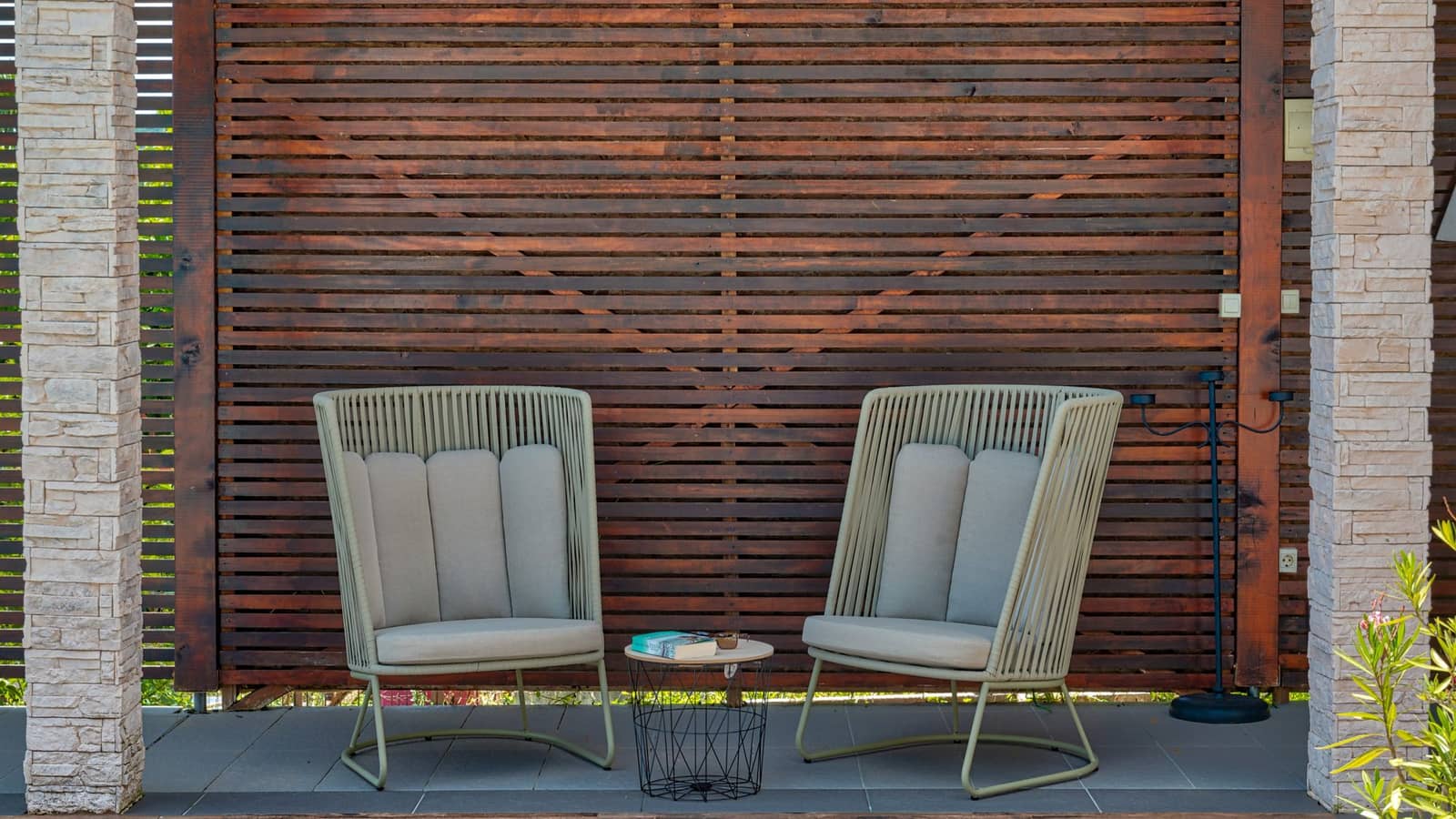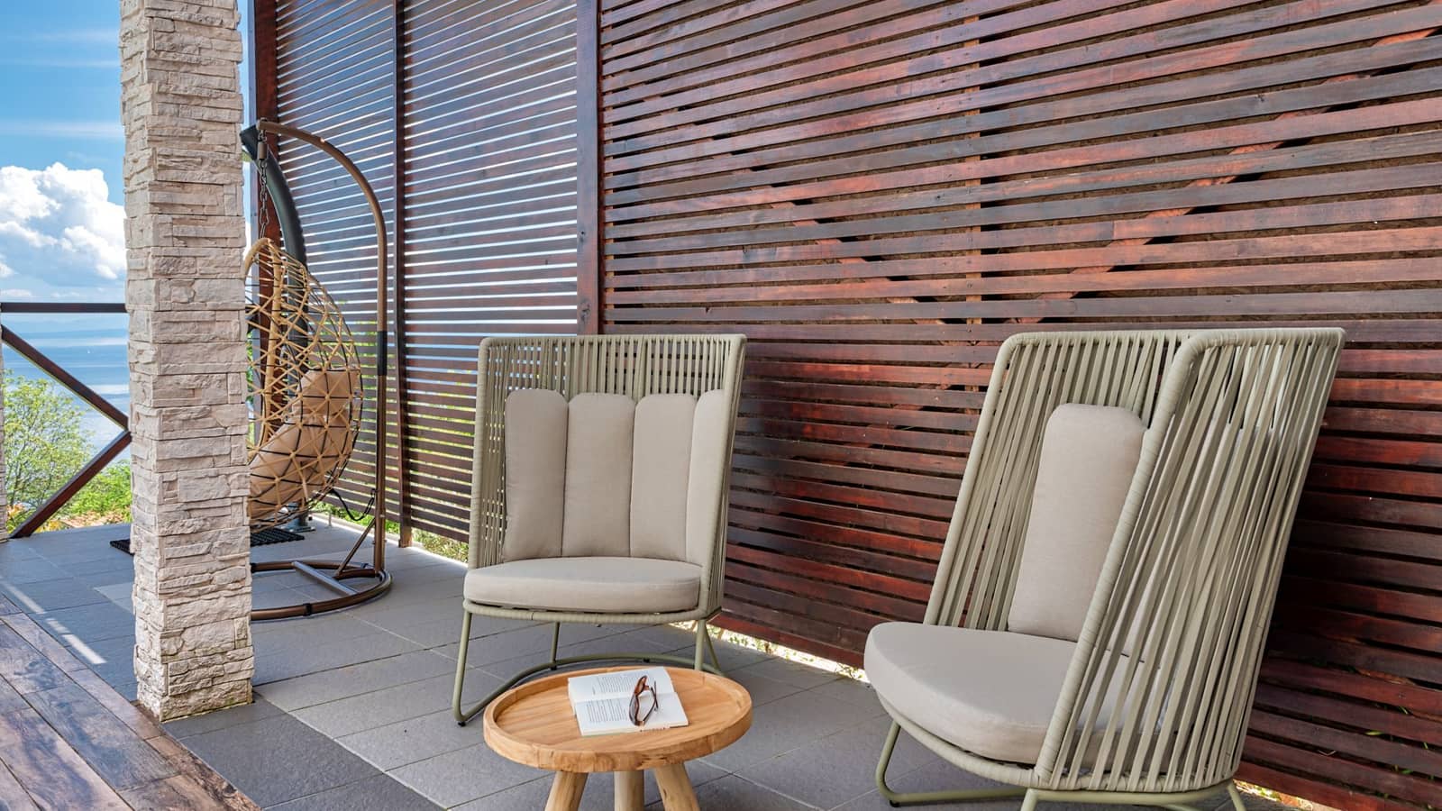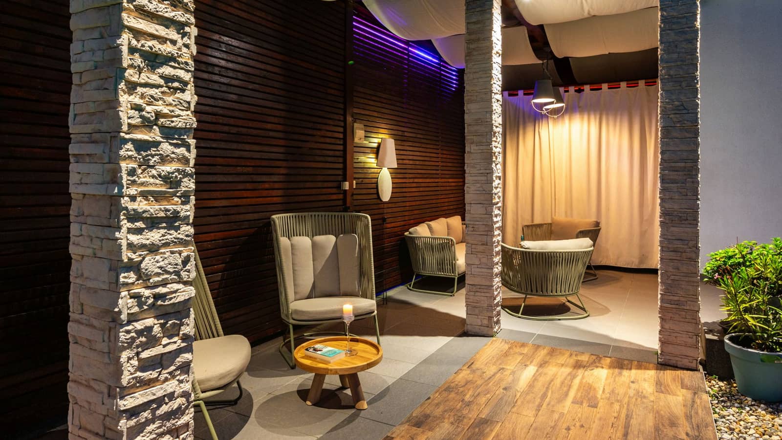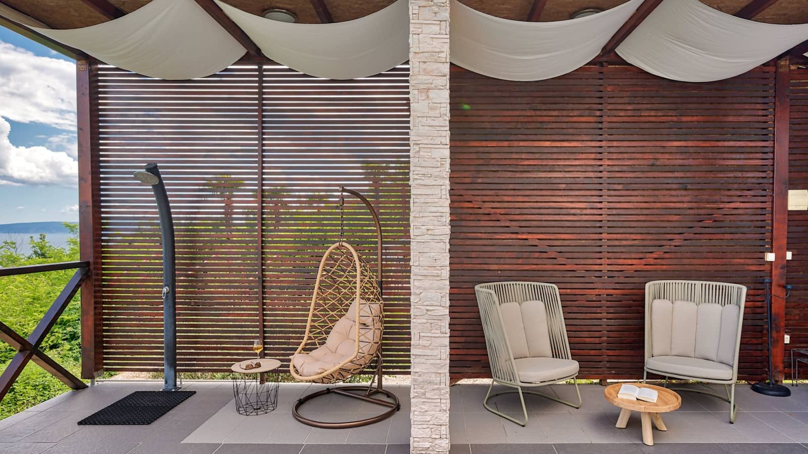 Зовнішня зона створена для насолоди середземноморським кліматом: інфініті-басейн із видом на море, тераса з обідньою зоною, лаунж-простір та лежаки для відпочинку протягом усього дня. Приватний сад додає відчуття затишку та усамітнення.
