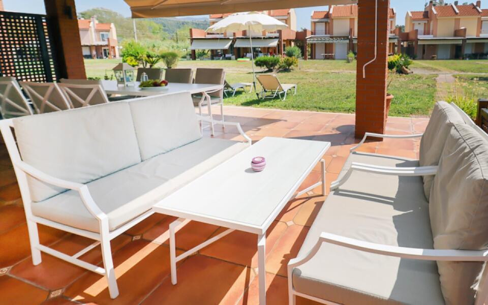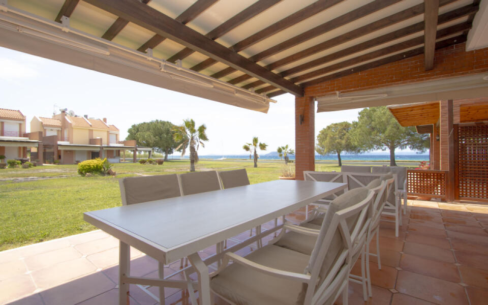 Житловий простір організований на трьох рівнях, що дозволяє зручно розділити зони відпочинку. На першому рівні — світла вітальня та повністю обладнана кухня з виходом на терасу, де приємно проводити ранки з кавою під шум хвиль. Зелене подвір’я з лаунж-зоною стає природним продовженням інтер’єру.