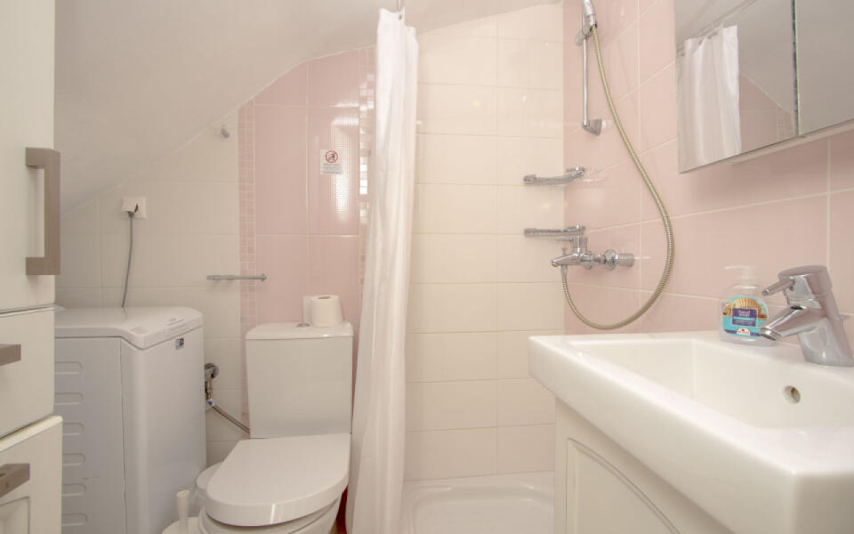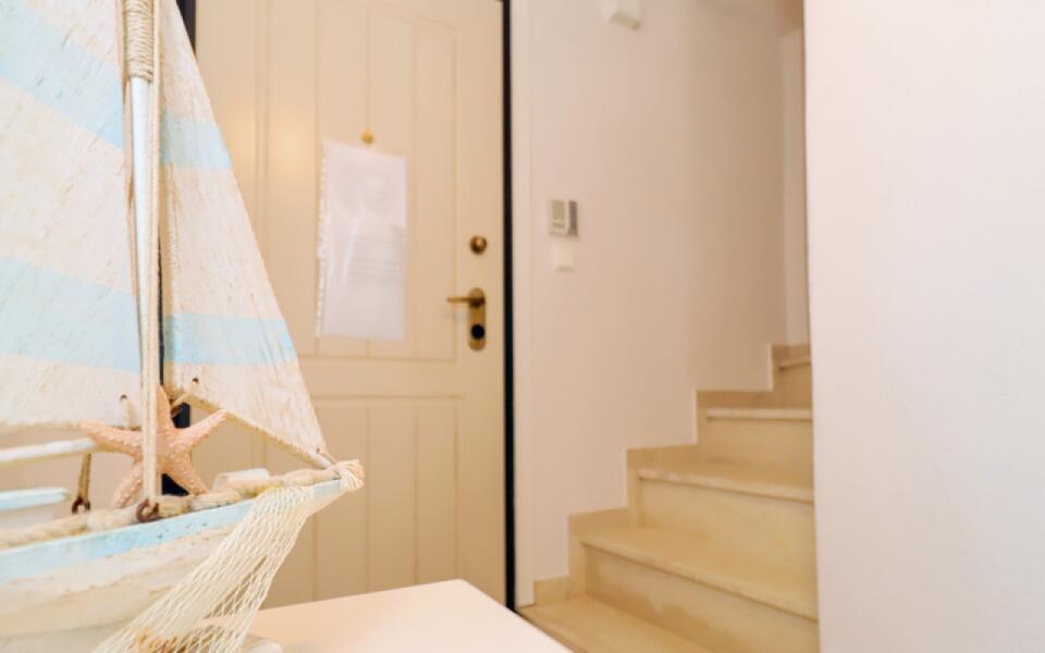 Верхні поверхи відведені під спальні з приємними видами, зокрема одна з кімнат має балкон із видом на море. Мансардний рівень додає простору приватності та затишку, ідеально підходить для відпочинку в тиші.